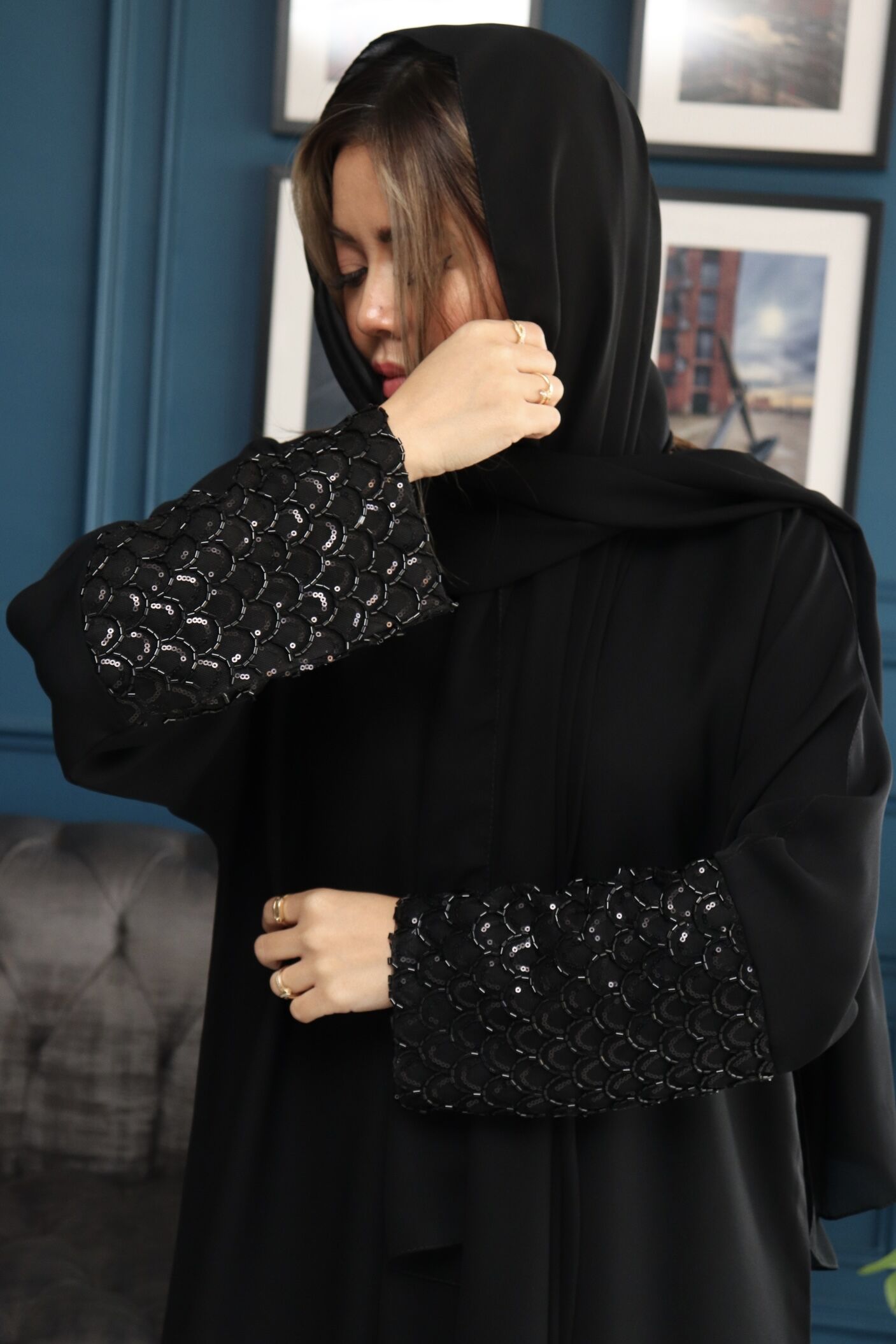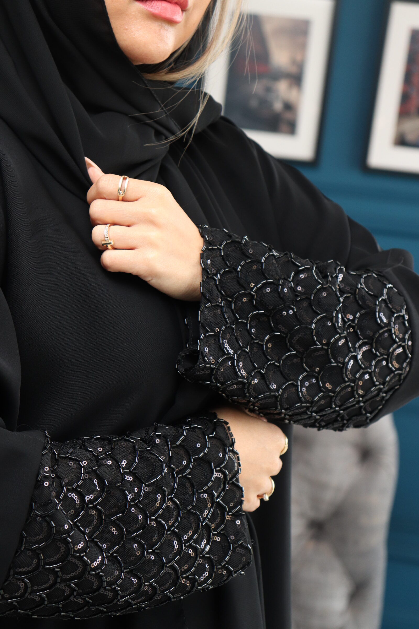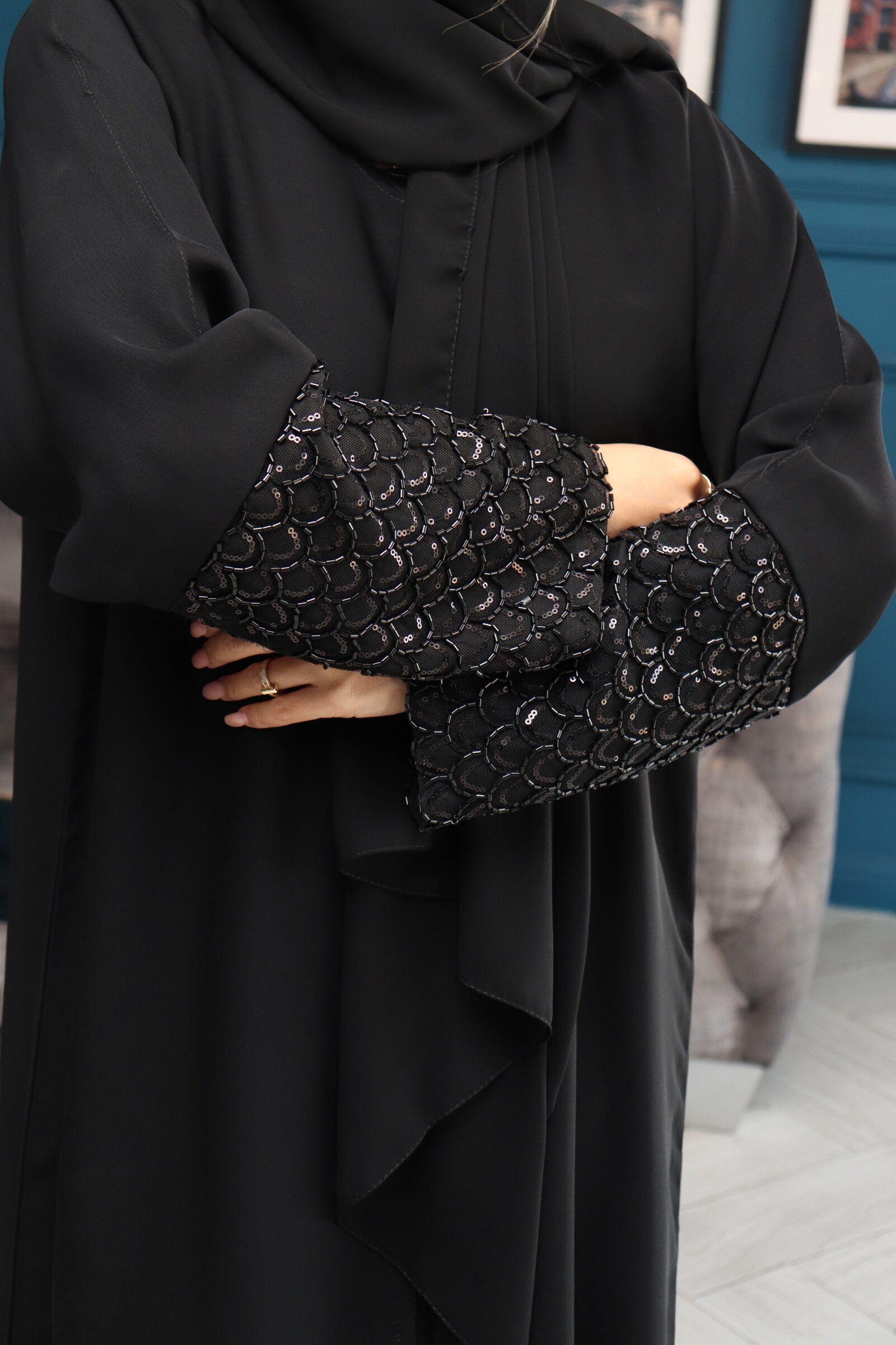 عباية شك ازدهار من اكمام وخرز لامع