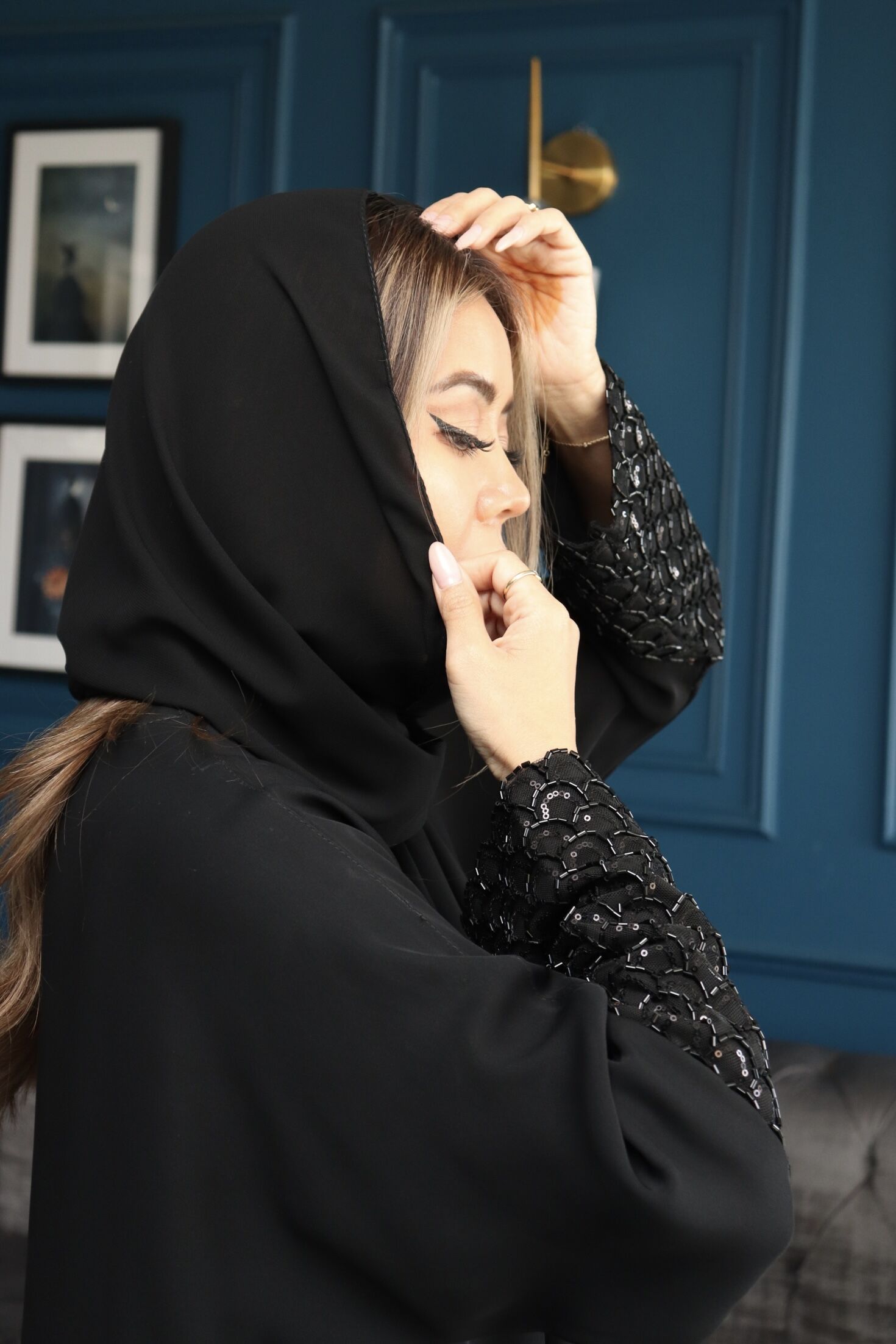عباية شك من اكمام سندس وخرز لامع