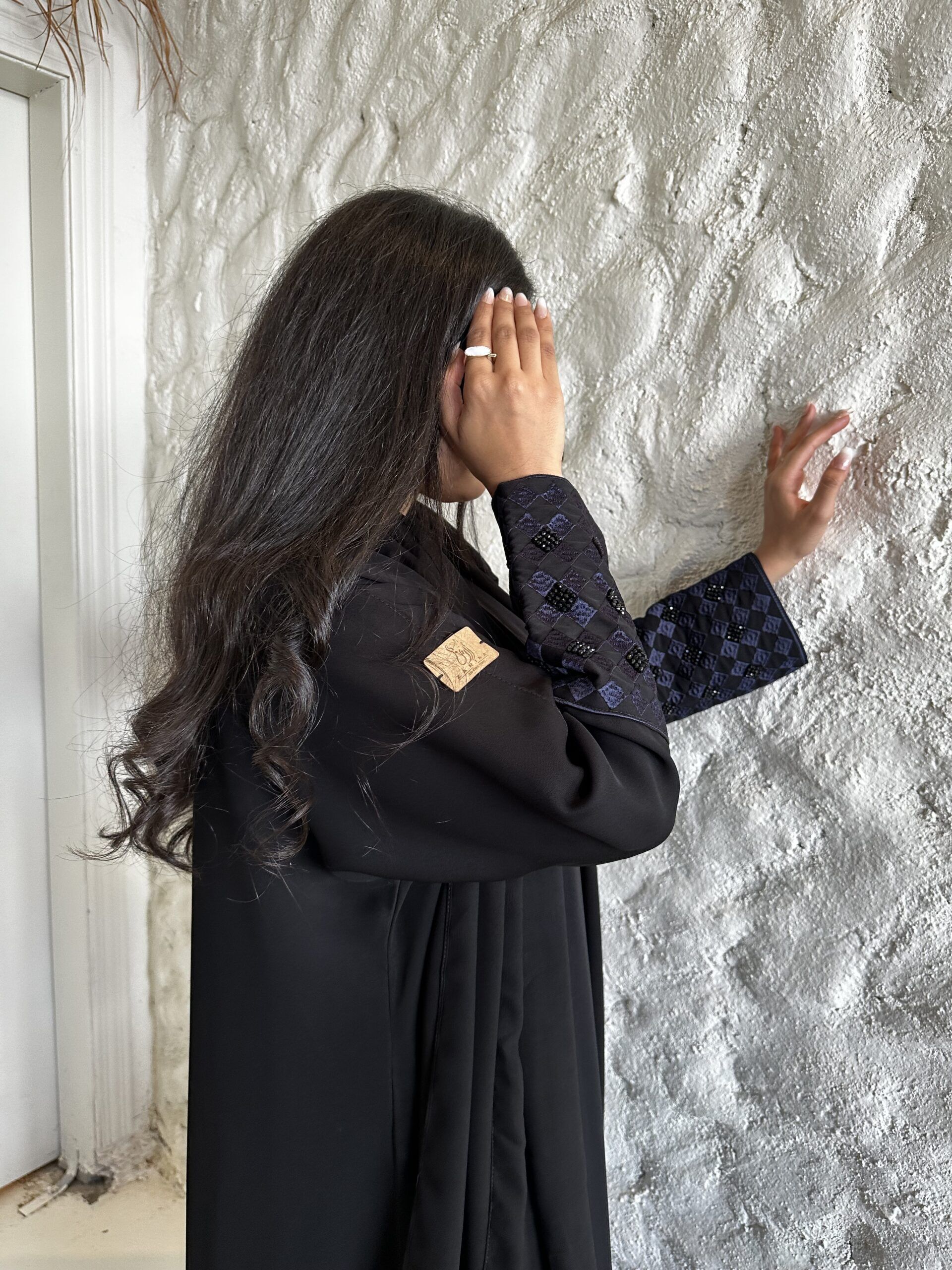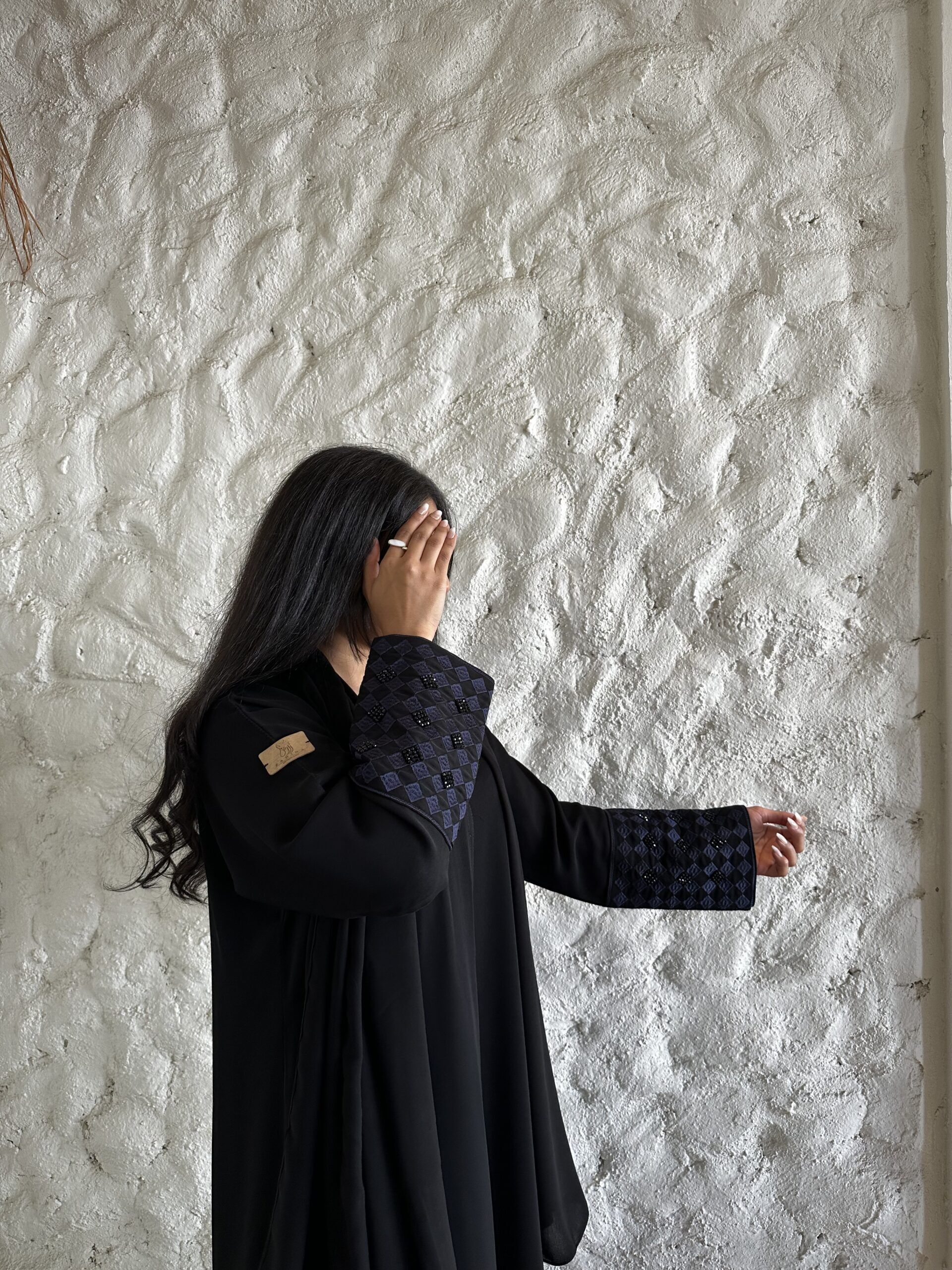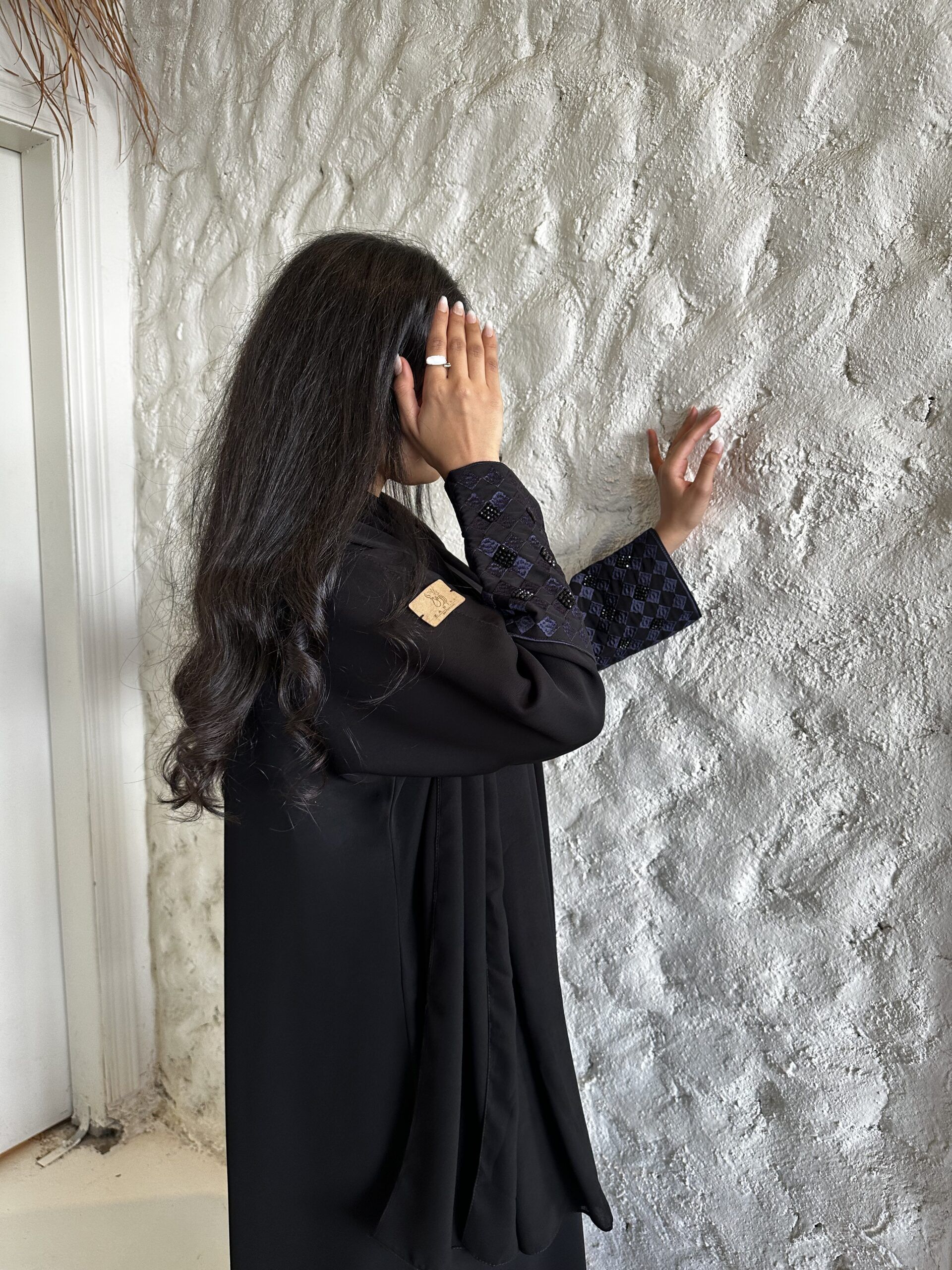 عباية ملكي بتطريز أسود يدوي على الأكمام بلون أسود