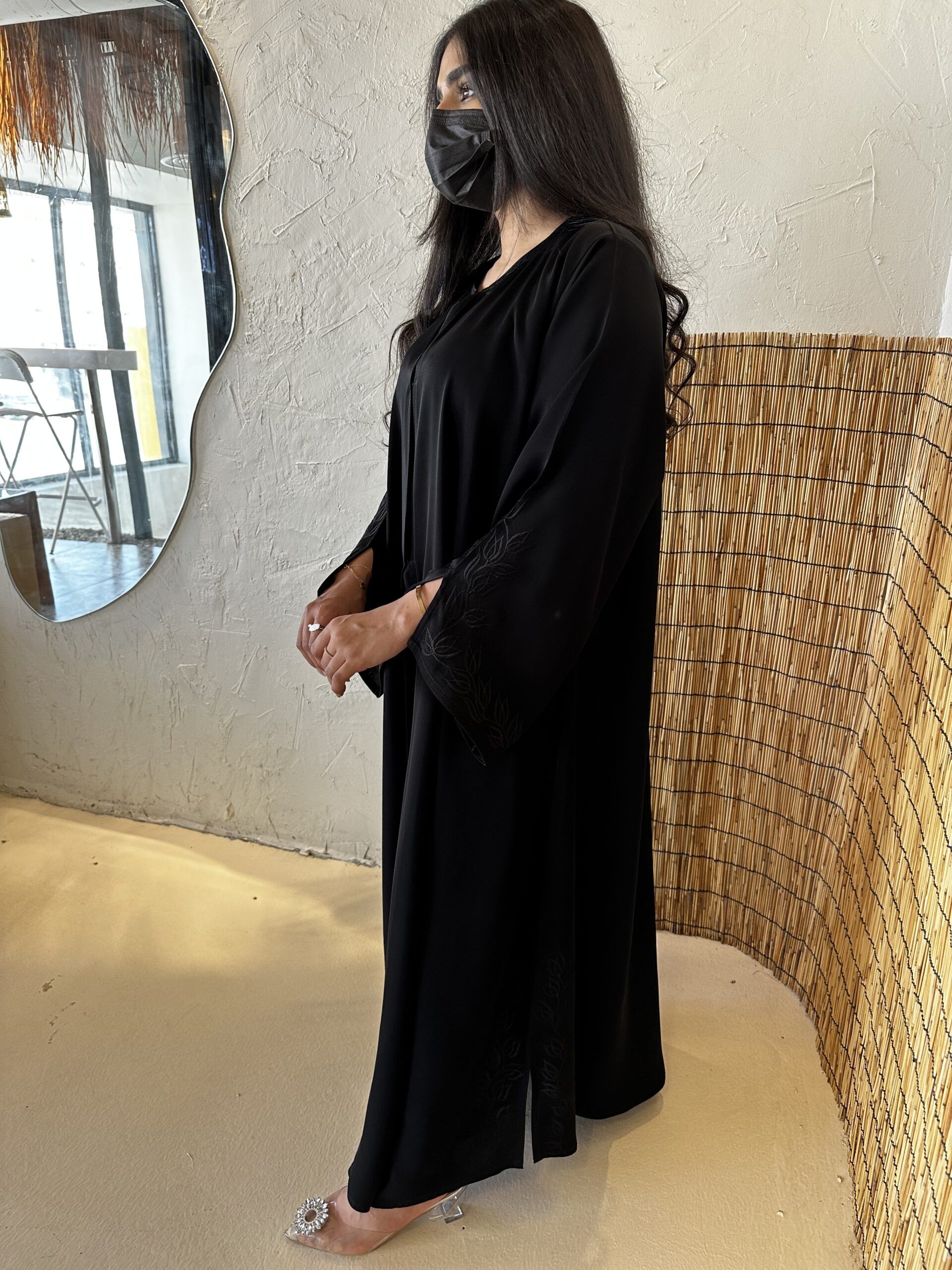 عبايه مزينه بشك مخفي من اكمام واسفل العبايه