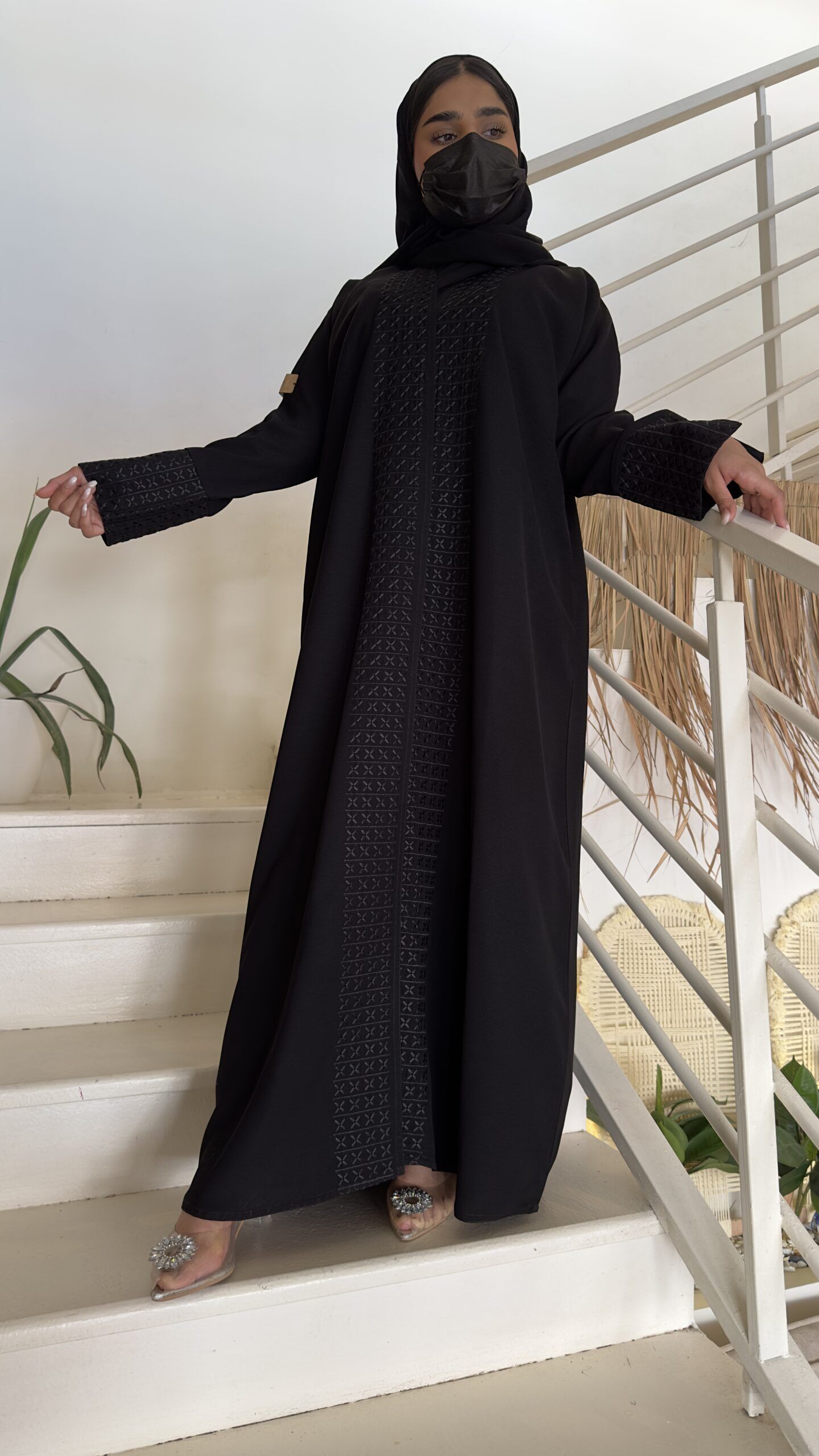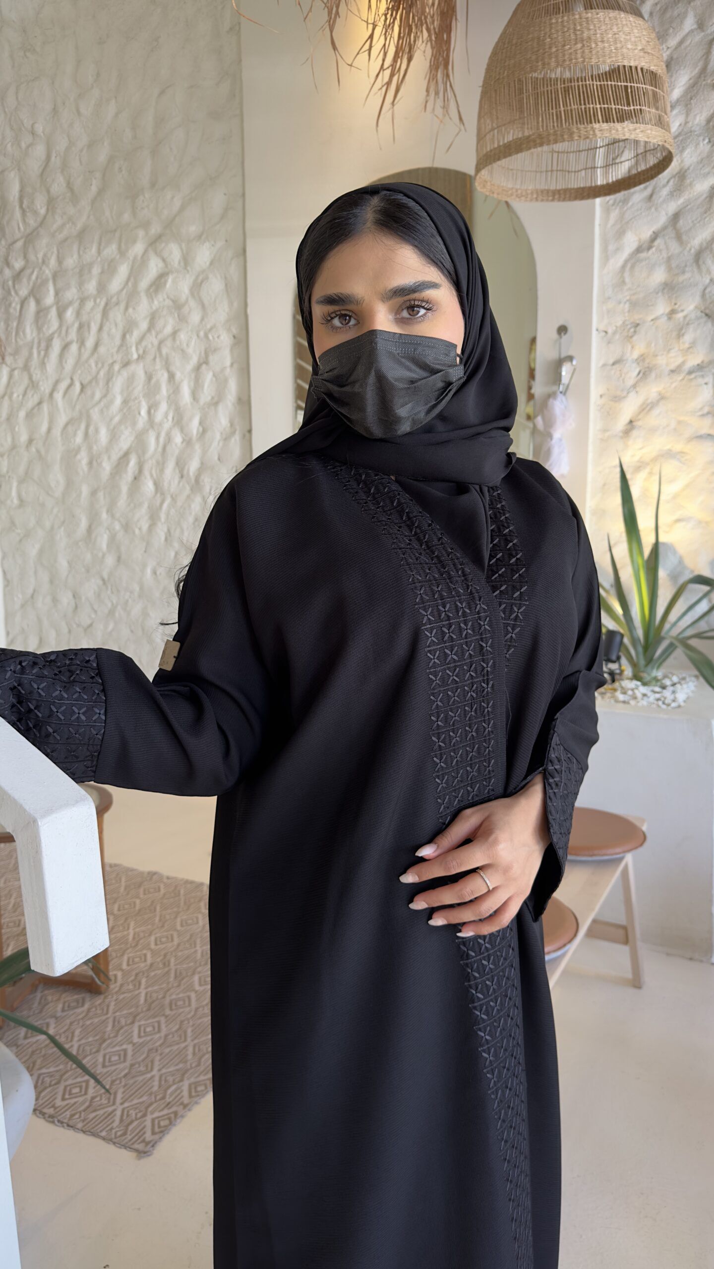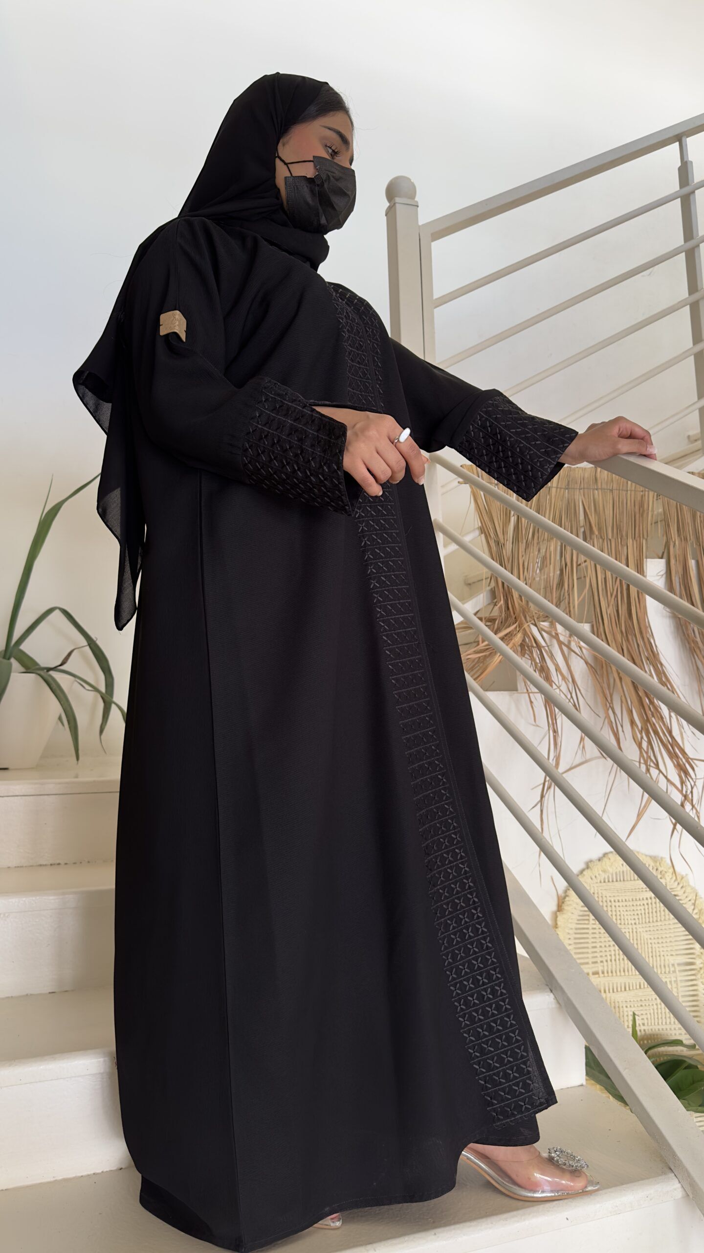 عباية سوداء أنيقة بقصة عباية مستقيمة أهم مايميز العباية مزينة بتطريز شك من امام و الأكمام