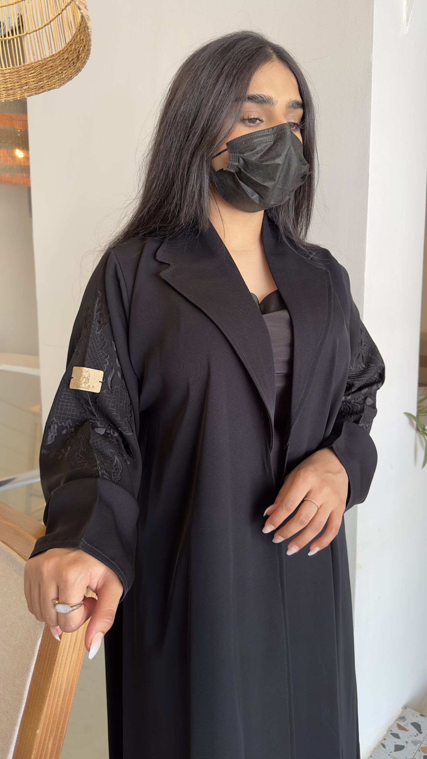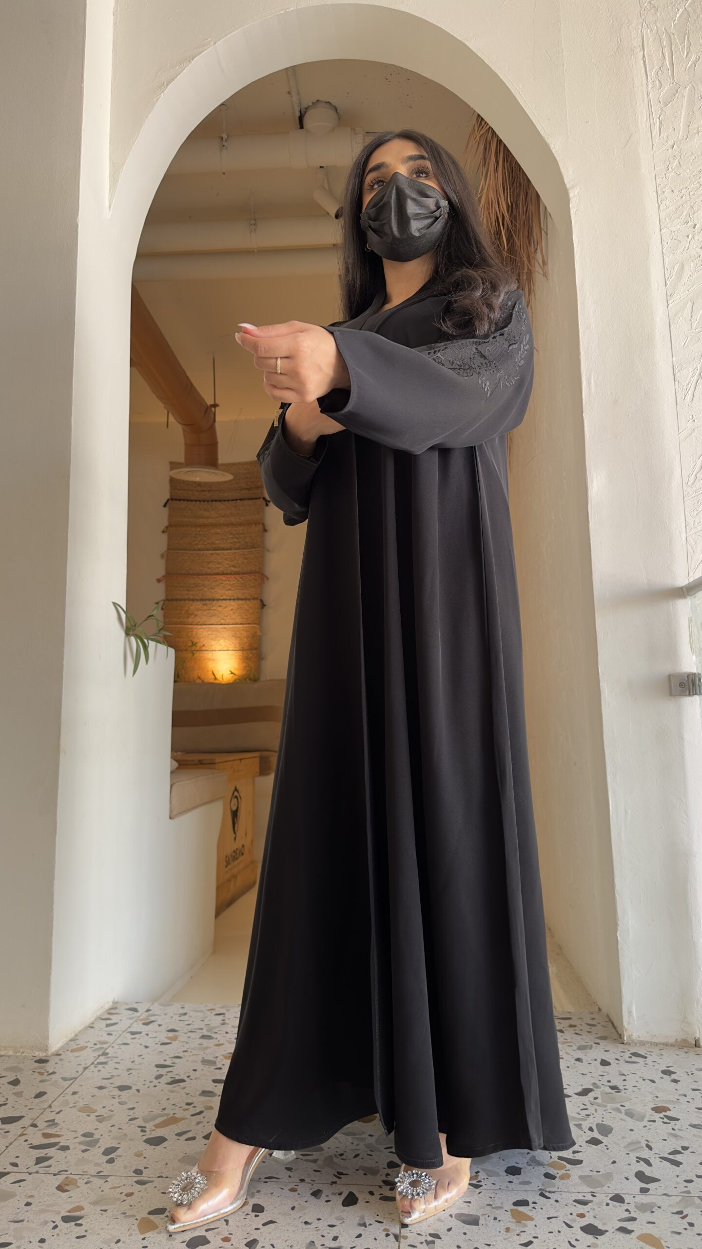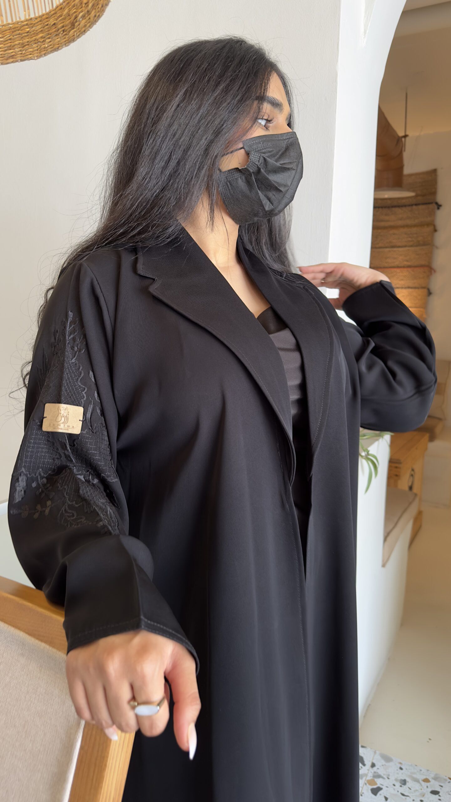 عبايه بليزر كلوش بتطريز شك اسود على اكتاف