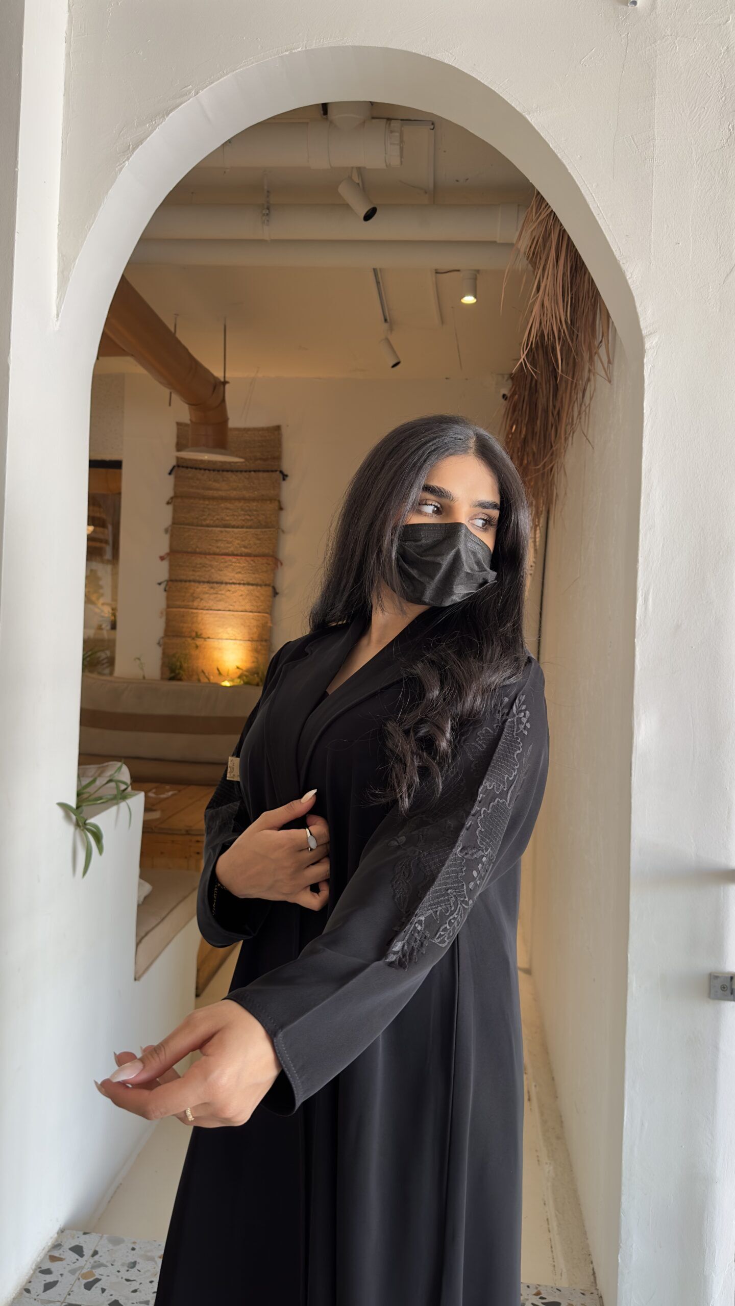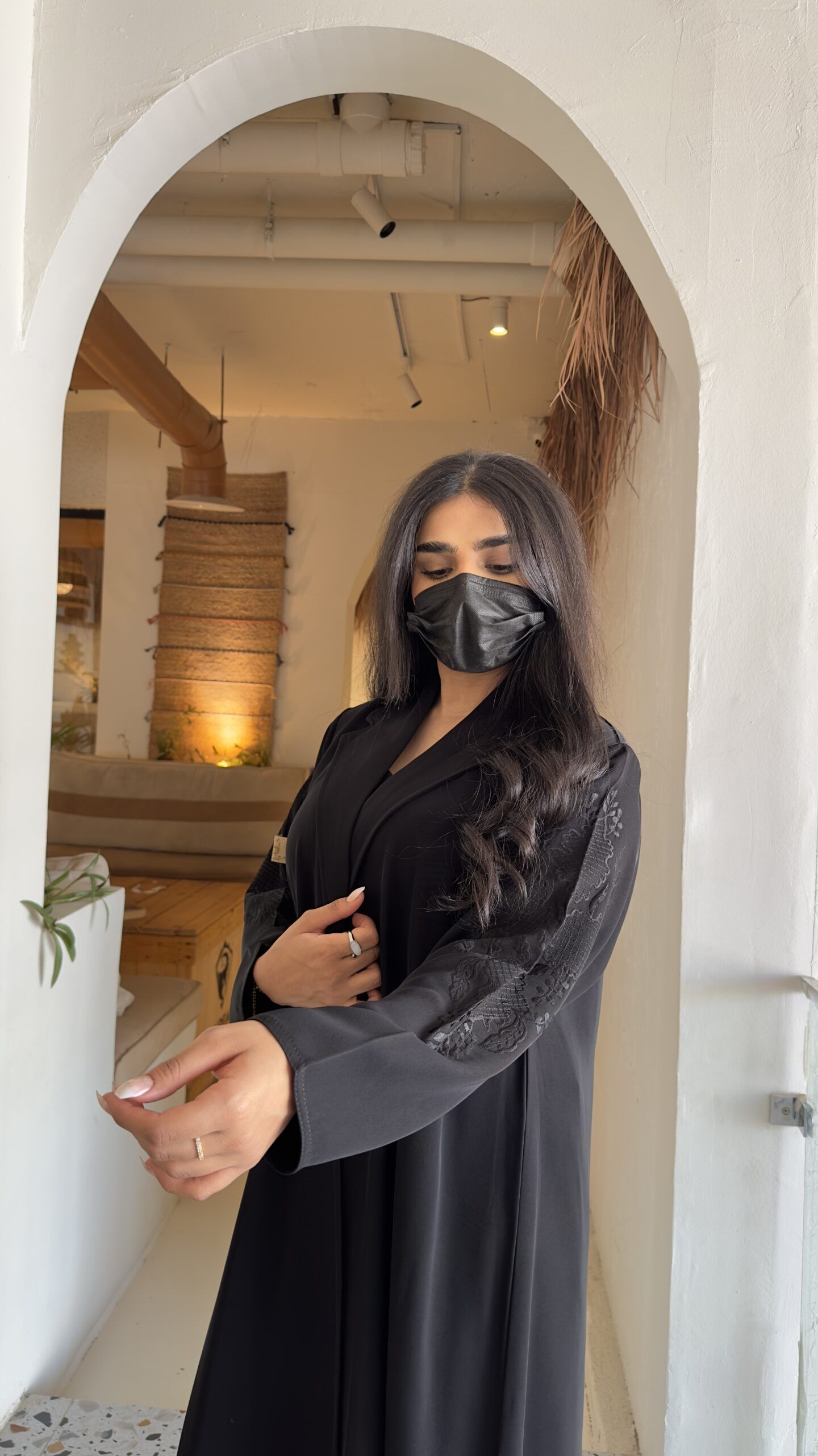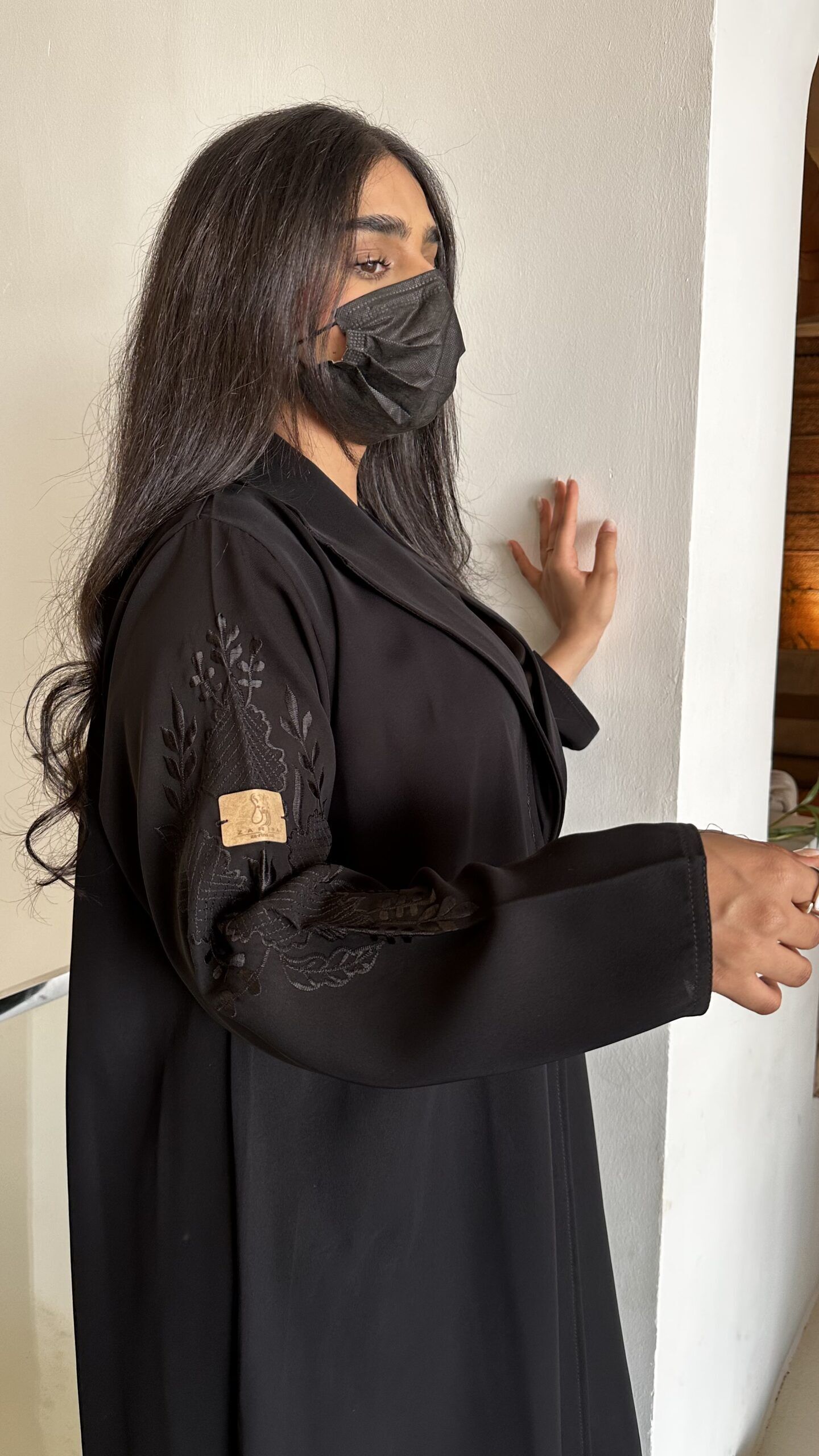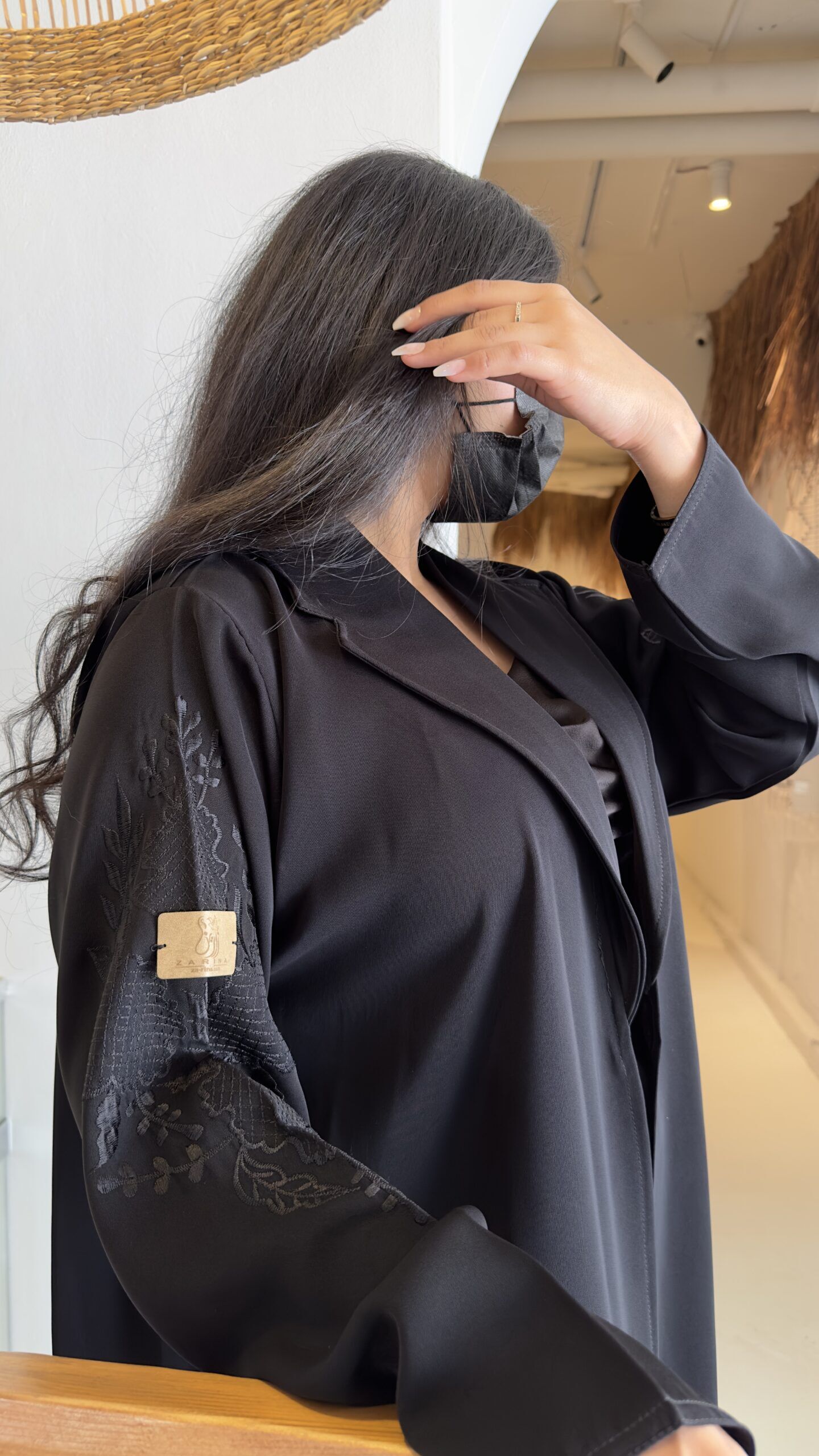 عبايه بليزر كلوش بتطريز شك اسود على اكتاف