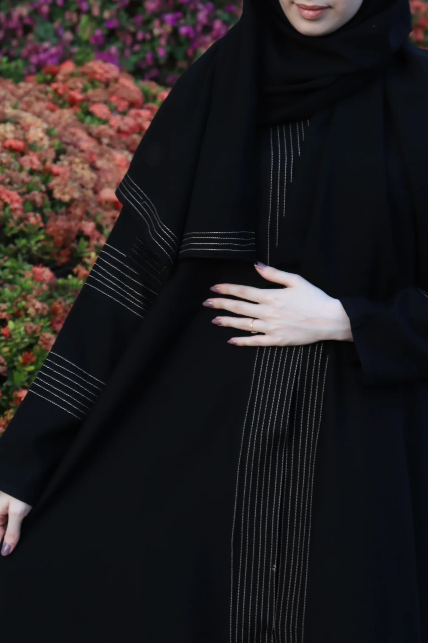 تحتوي عباية اماراتي على تفاصيل دقيقة تظهر العناية الفائقة بالجودة. كذلك تبرز الخيوط المبتكرة الحرفية في التصميم، وتعطي العباية شخصية مميزة تلفت الأنظار.