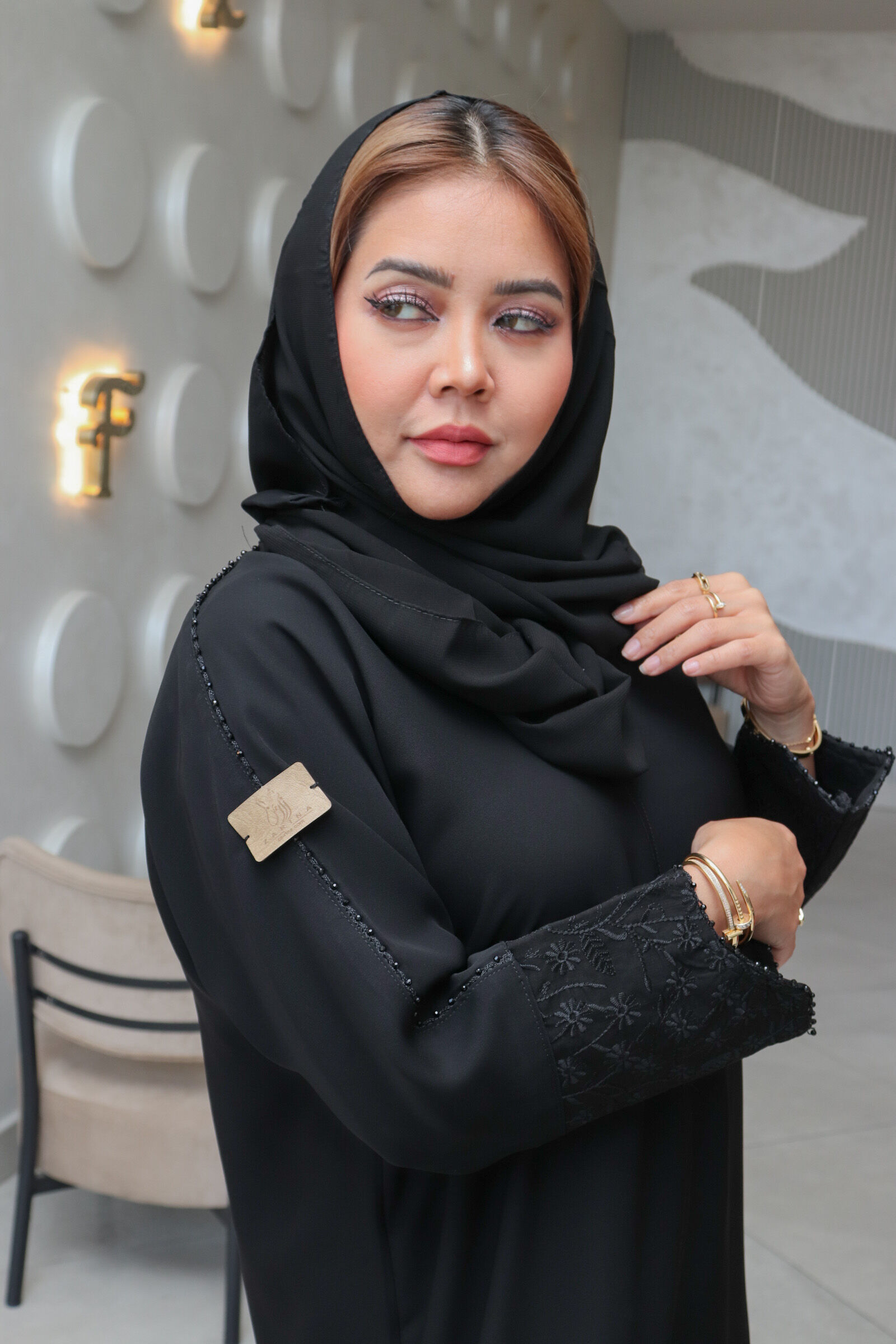 عبايه موديل كلاسيك مع تطريز بالحروف الأبجدية