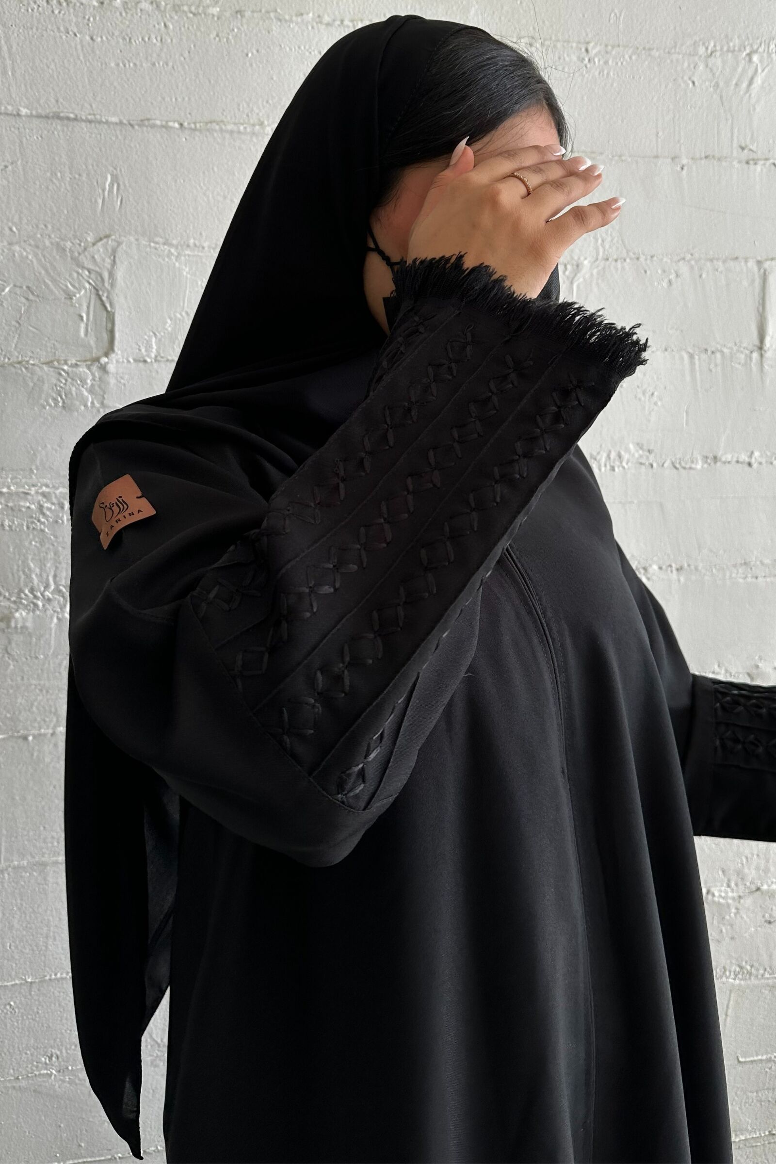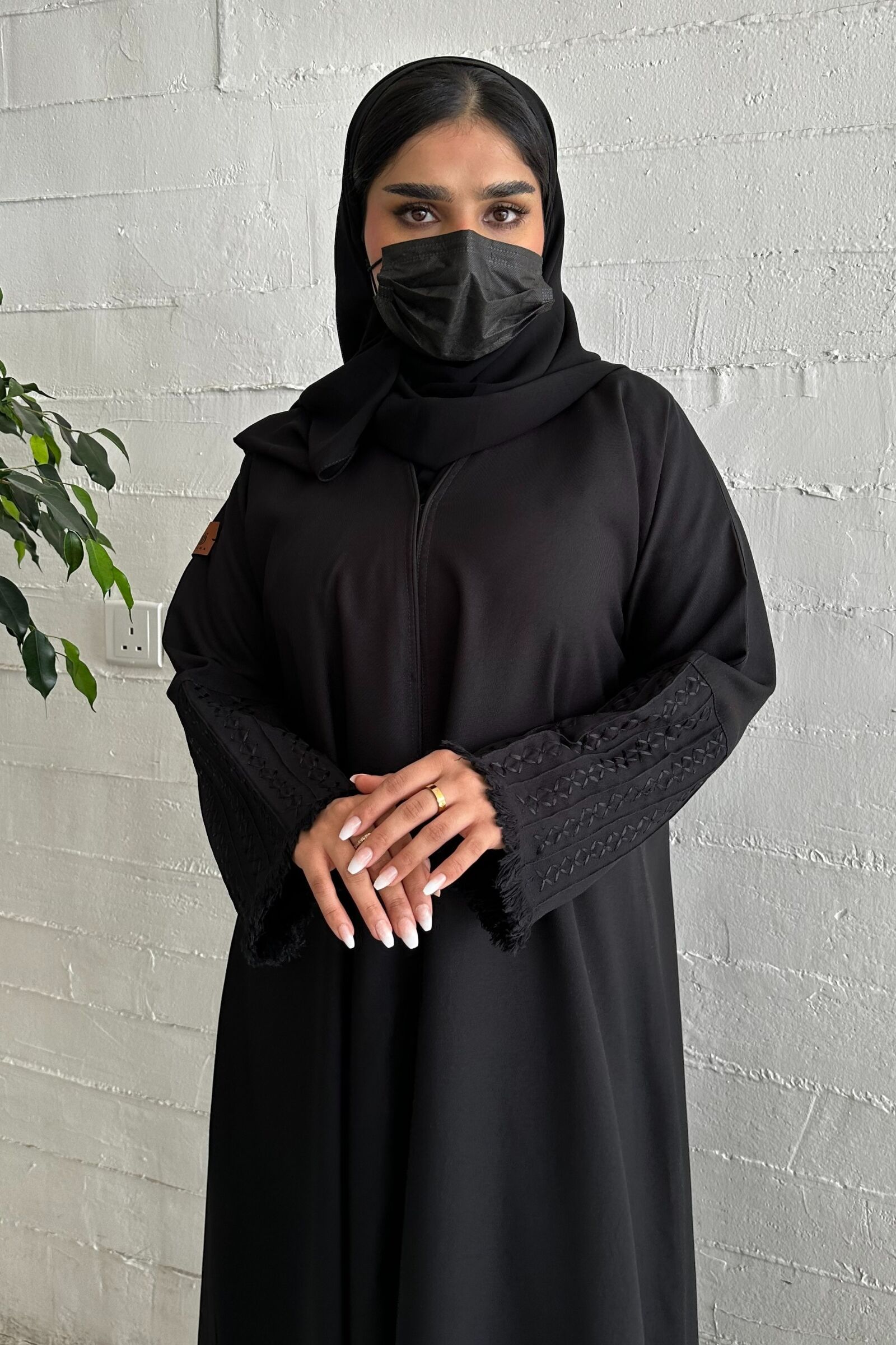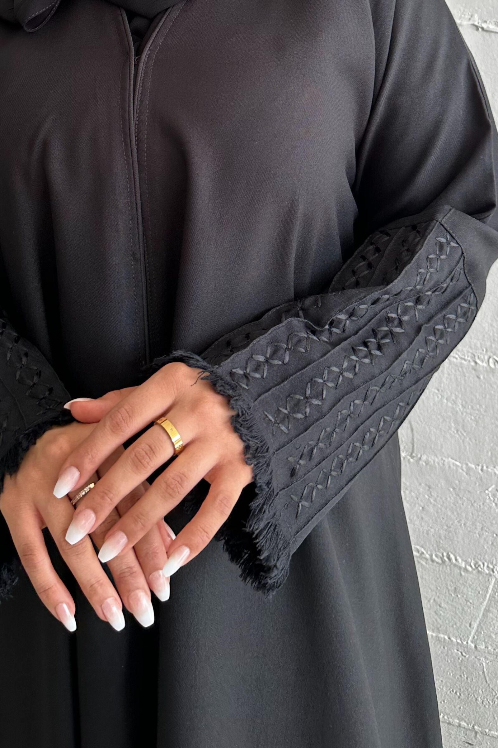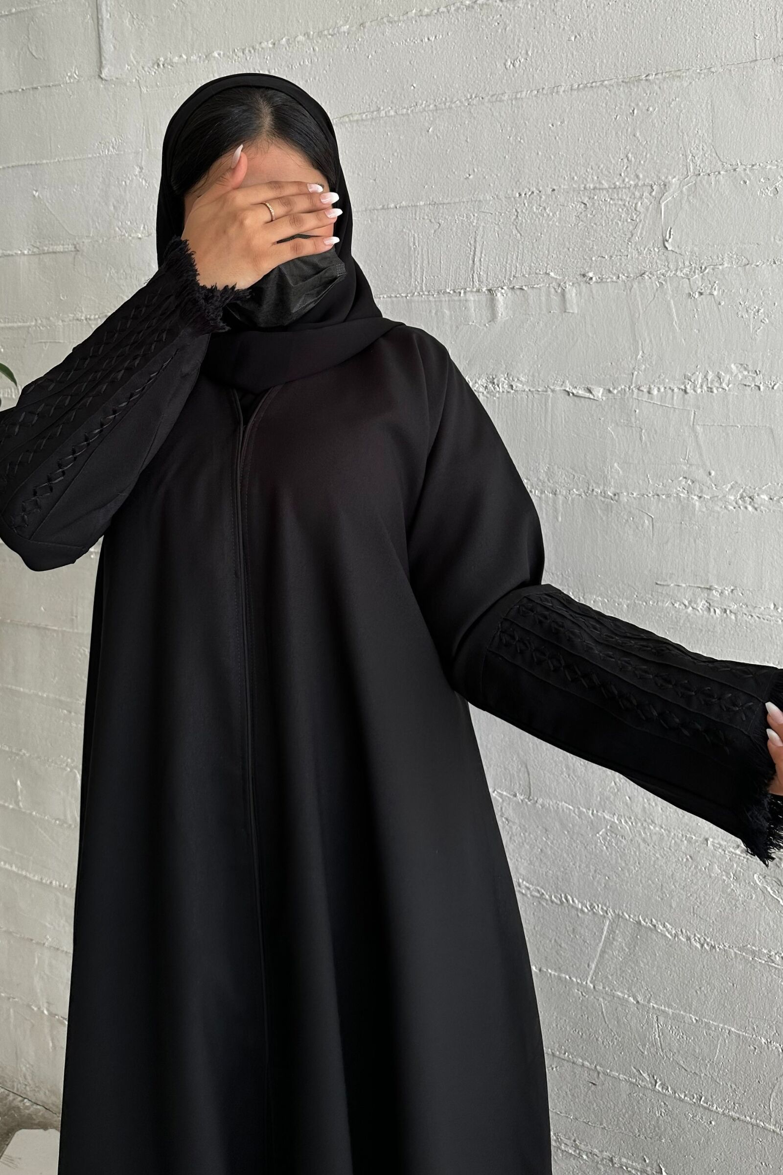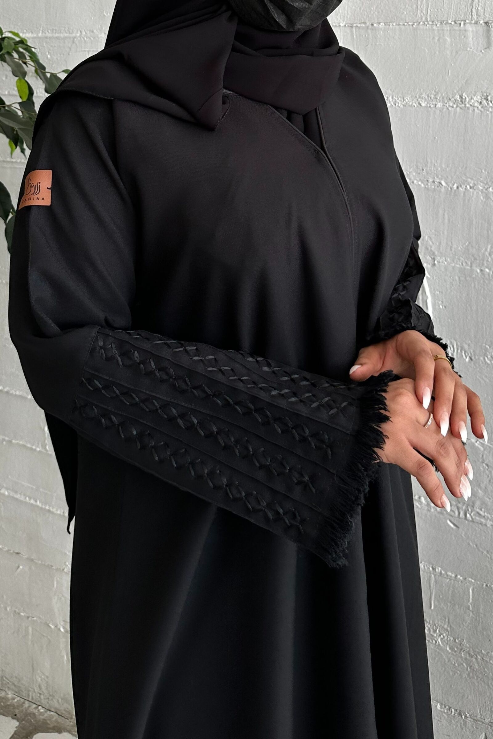 عبايه شك بخيوط مخفى اسود على اكمام