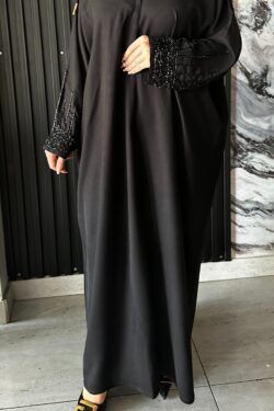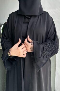 عبايه نص بشت شك اسود على الأكمام
