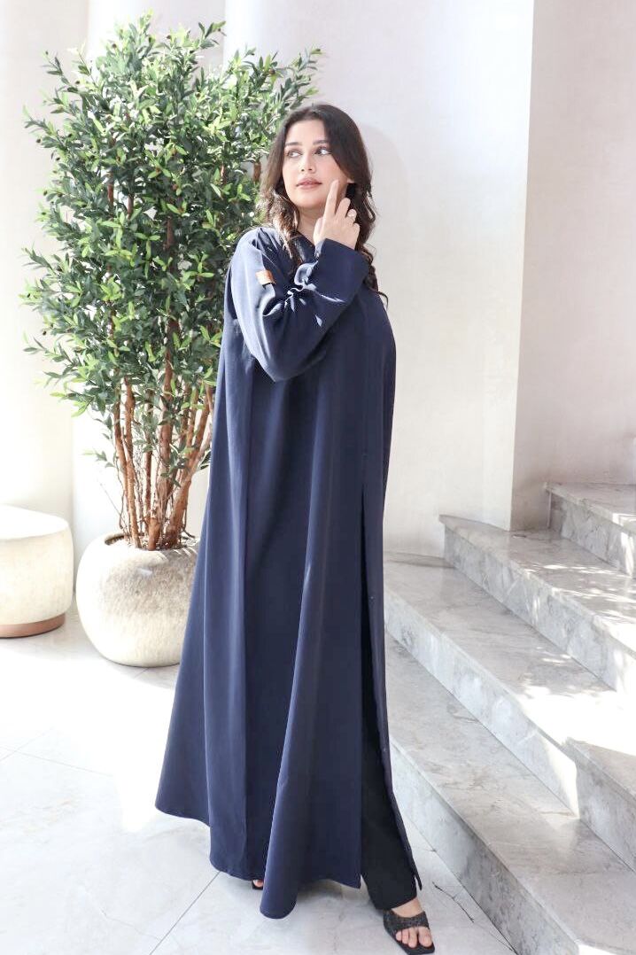 عباية كحلي كلاسيك لمعه بتصميم مميز