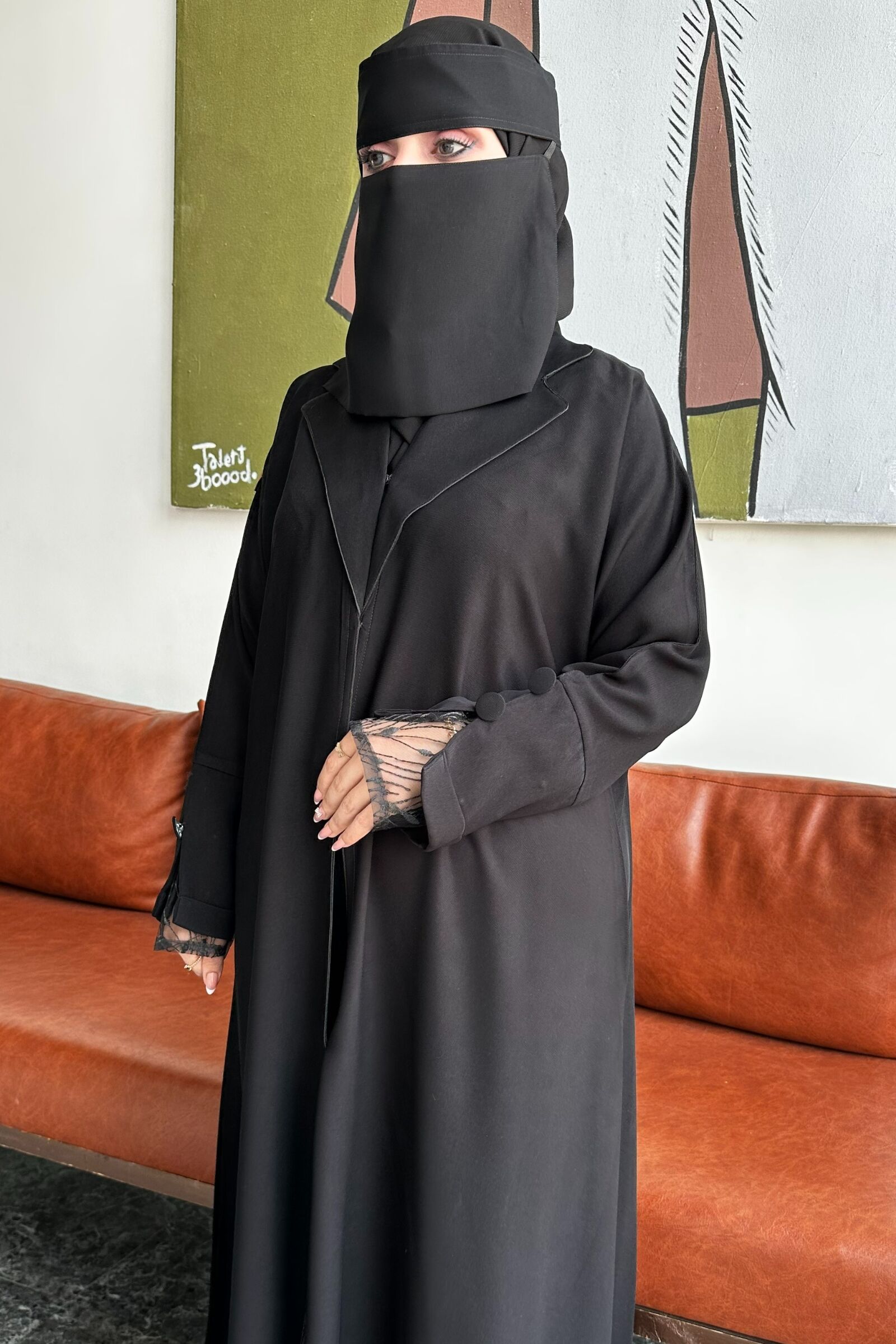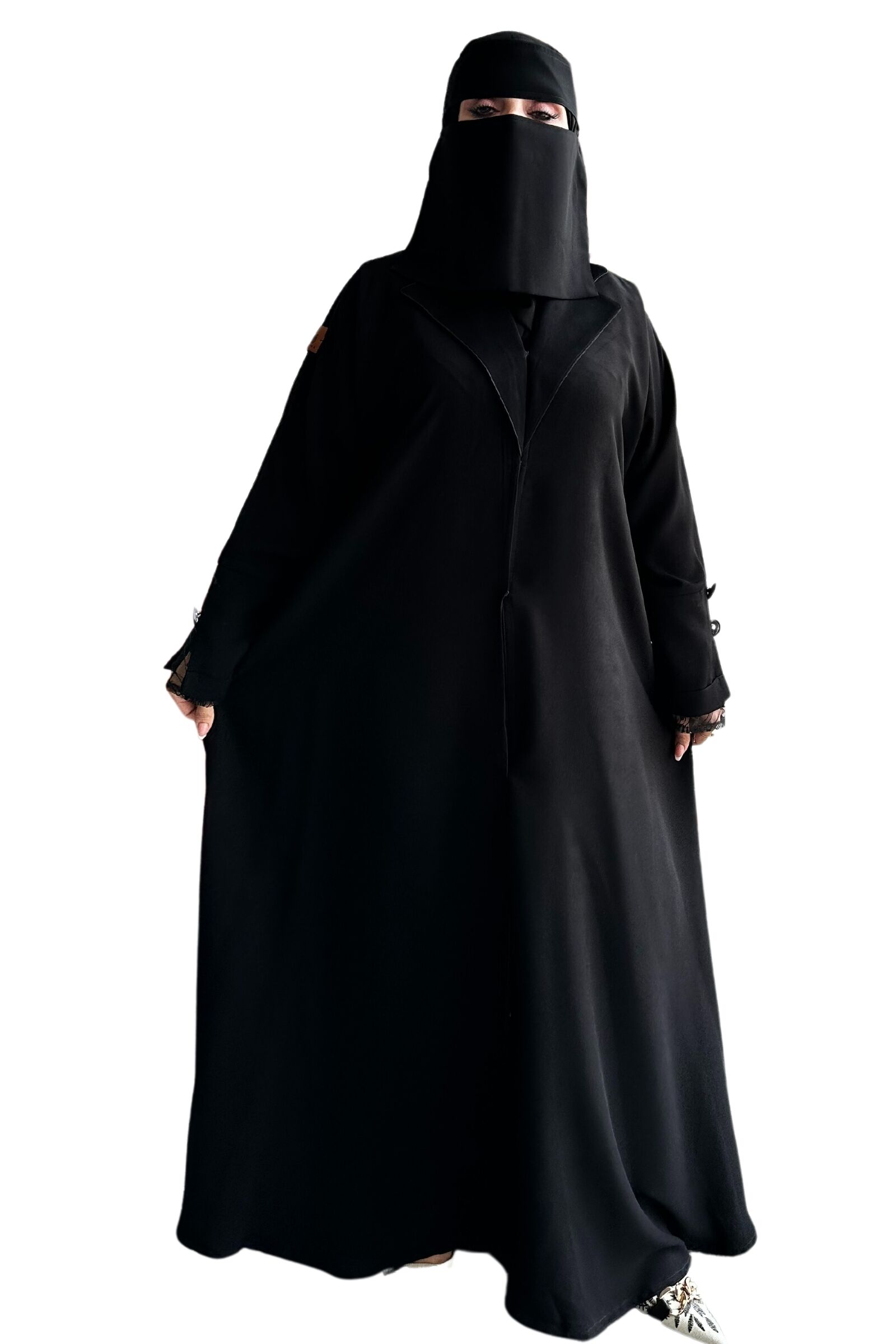 تألقي بإطلالة راقية وأنيقة مع عباية مميزة بدانتيل ناعم على الأكمام. تزداد الأنوثة والجمال على التصميم العام للعباية. يوفر القماش المستخدم في هذه العباية الراحة والنعومة للمرتدية، مما يجعلها خيارًا مثاليًا لارتدائها في المناسبات الخاصة والاجتماعية.
