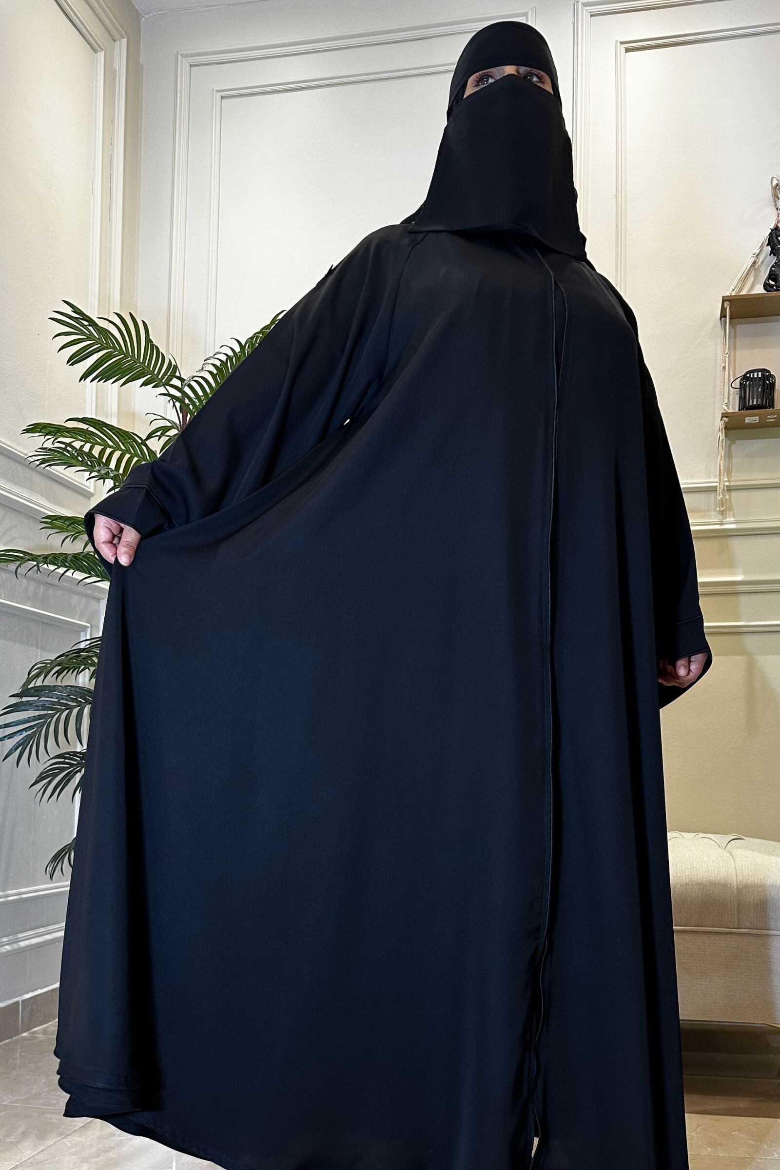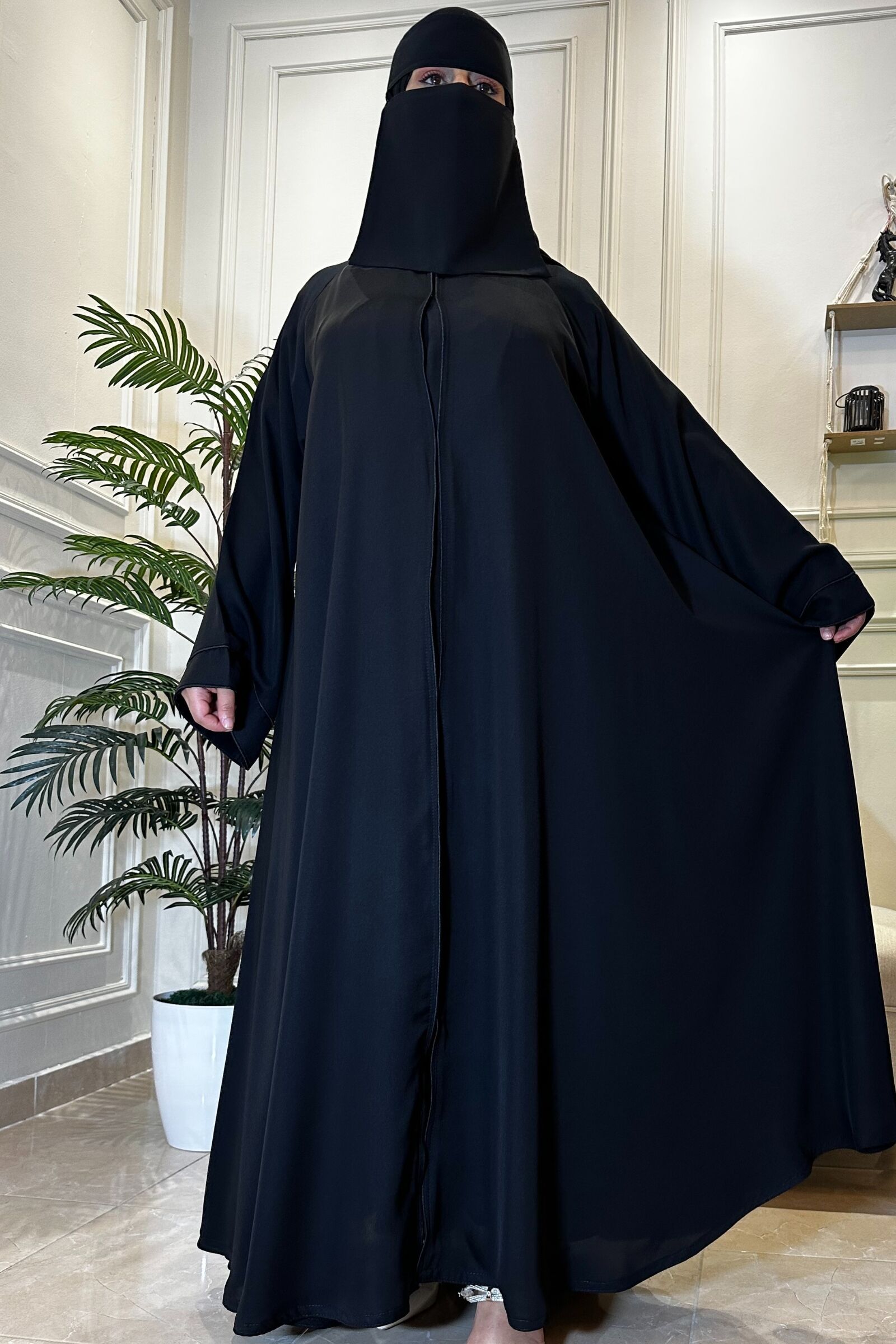 عباية كلوش نواعم ساده بكم مربع بحدده بفايفين