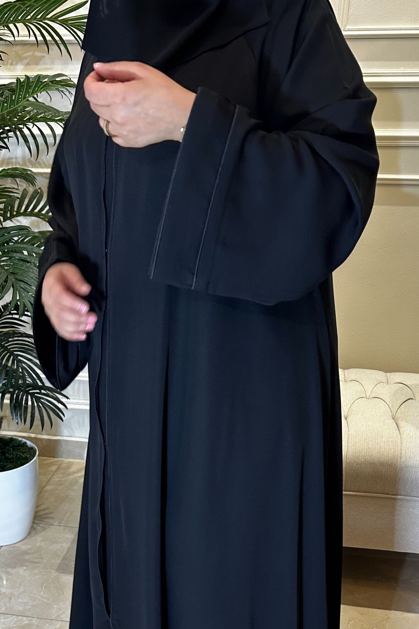 عباية سادة مغلقة بكم فصوص
