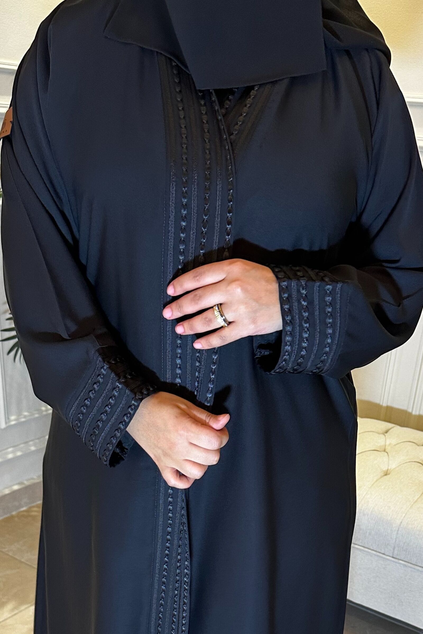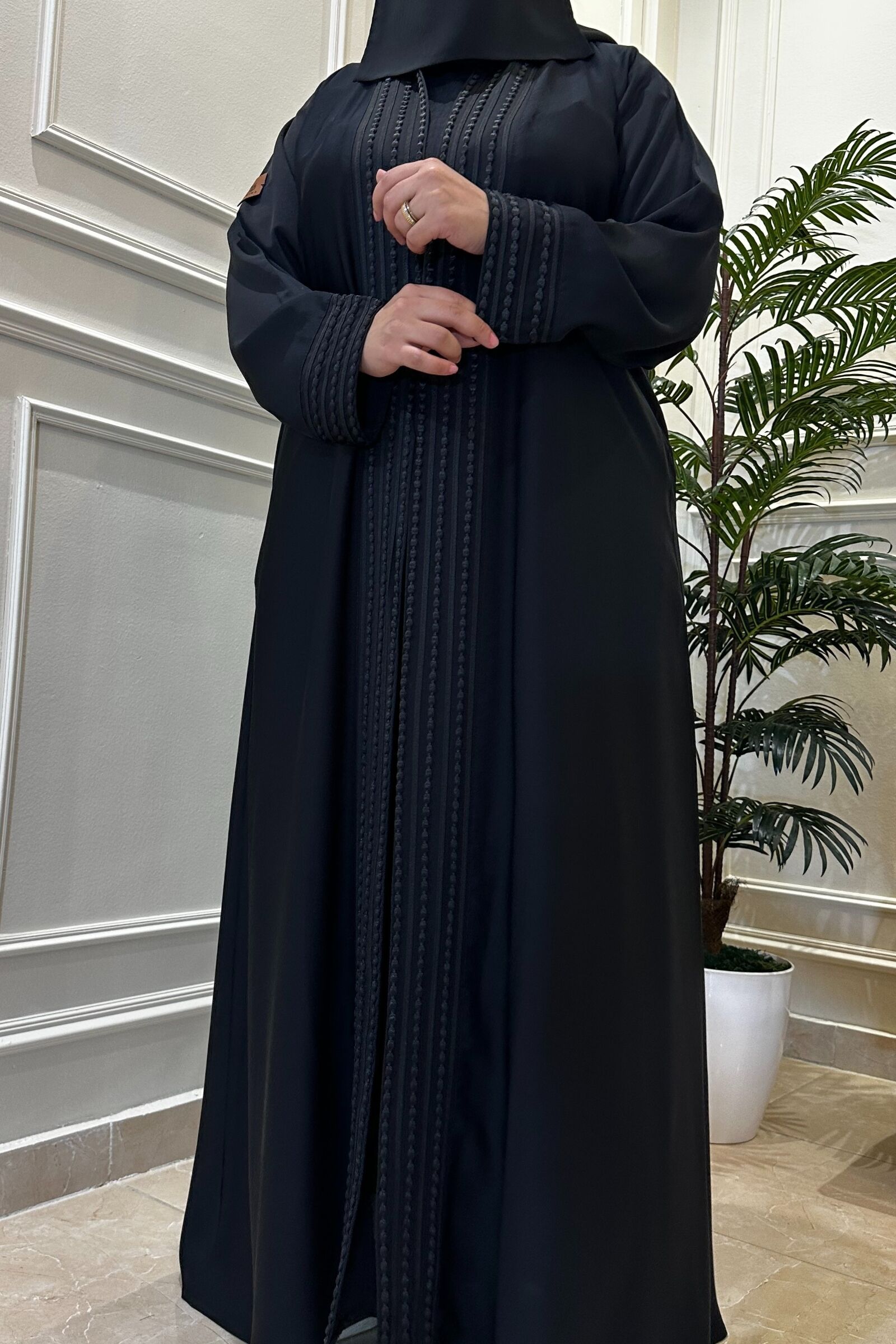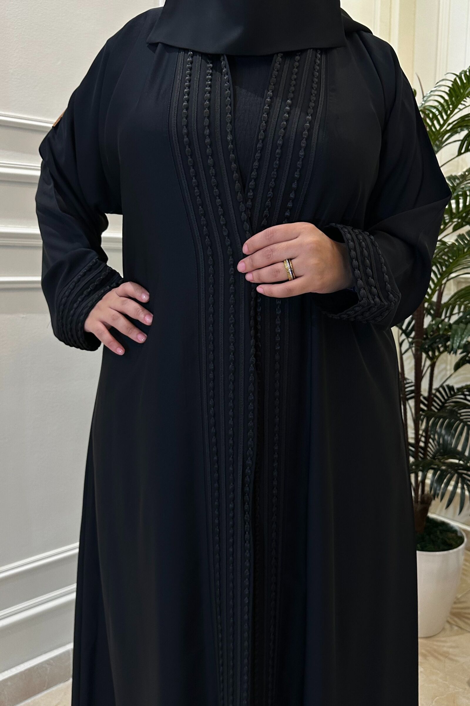 عبايه مريم بليزر مندمجة بقماش كسر من اجناب و تطريز اسود