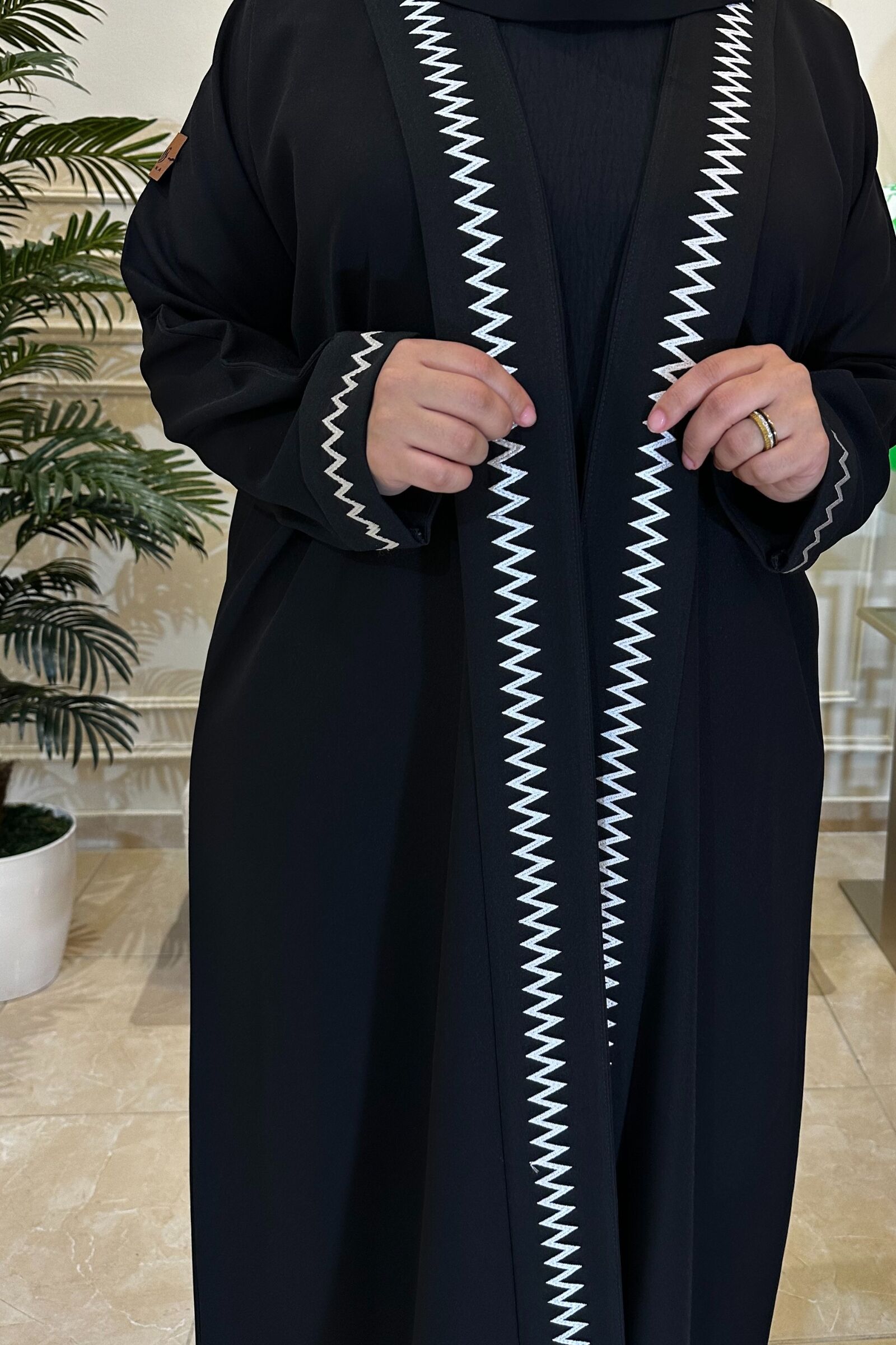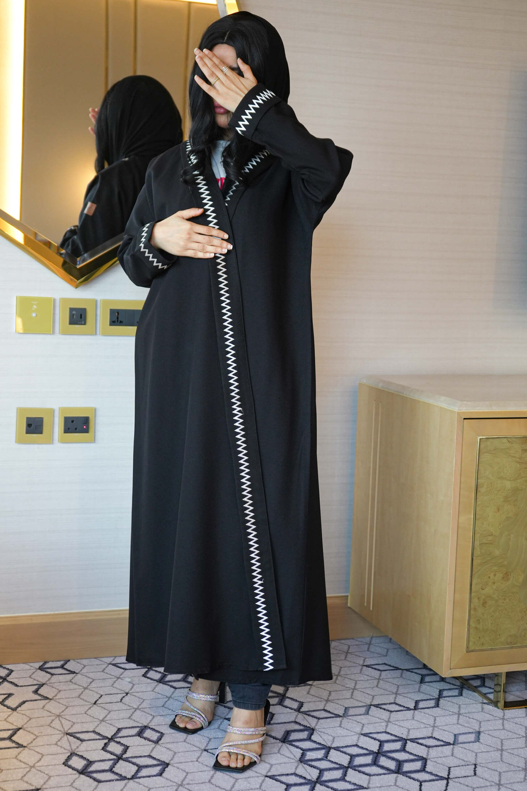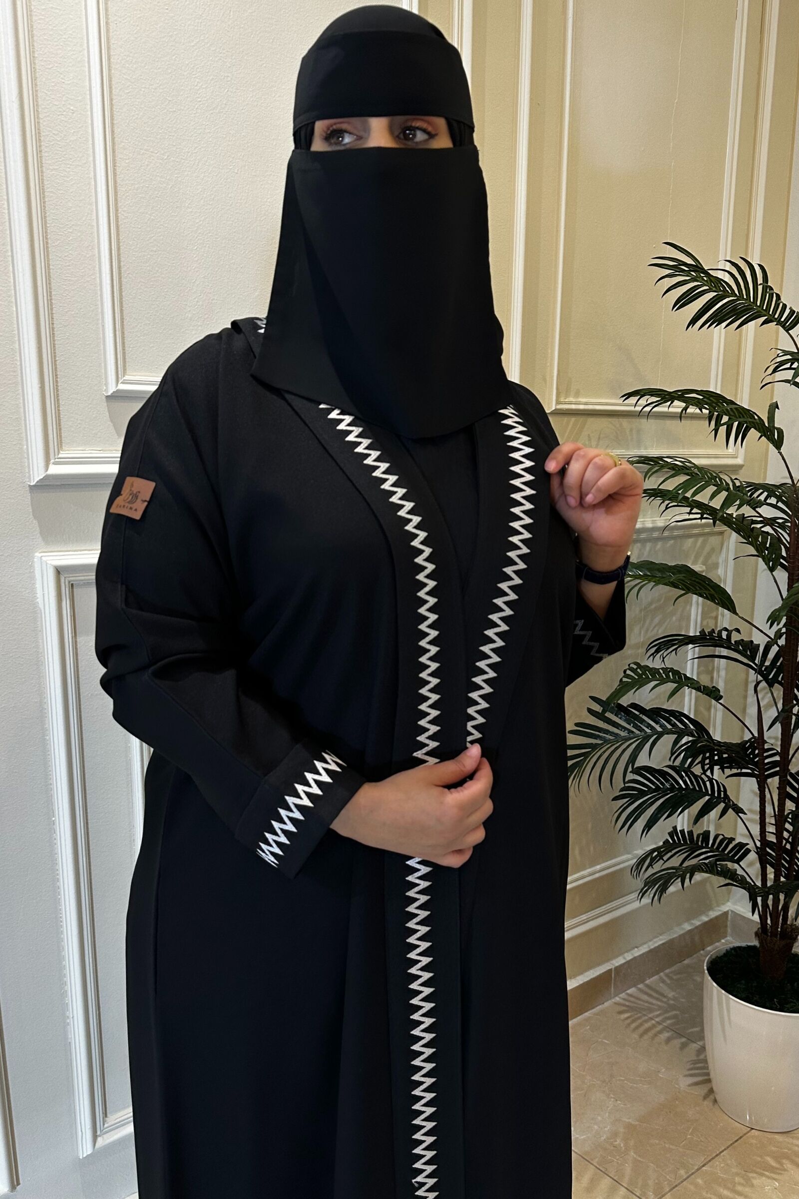 عبايه قطريه بتطريز شك اسود مخفى من امام