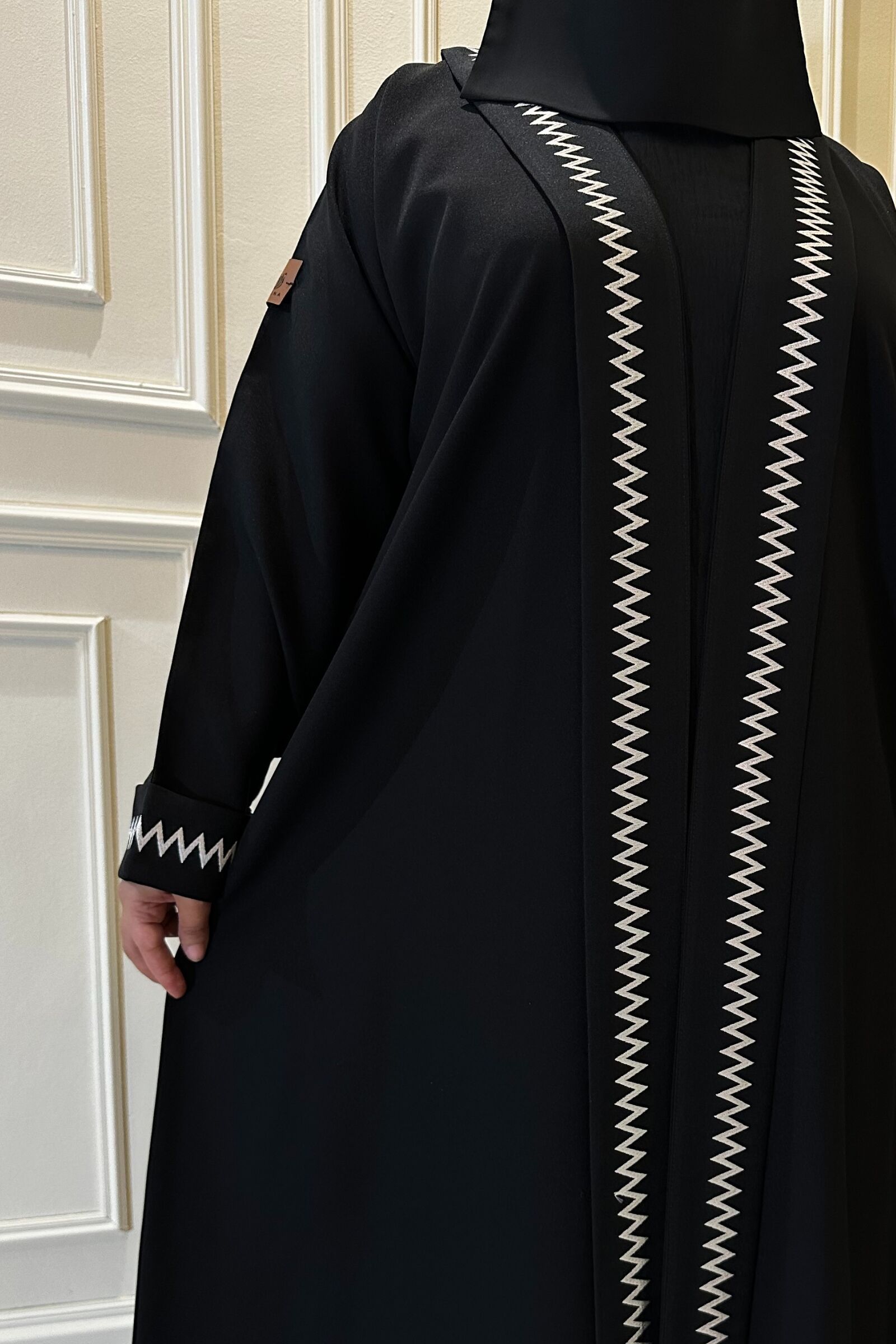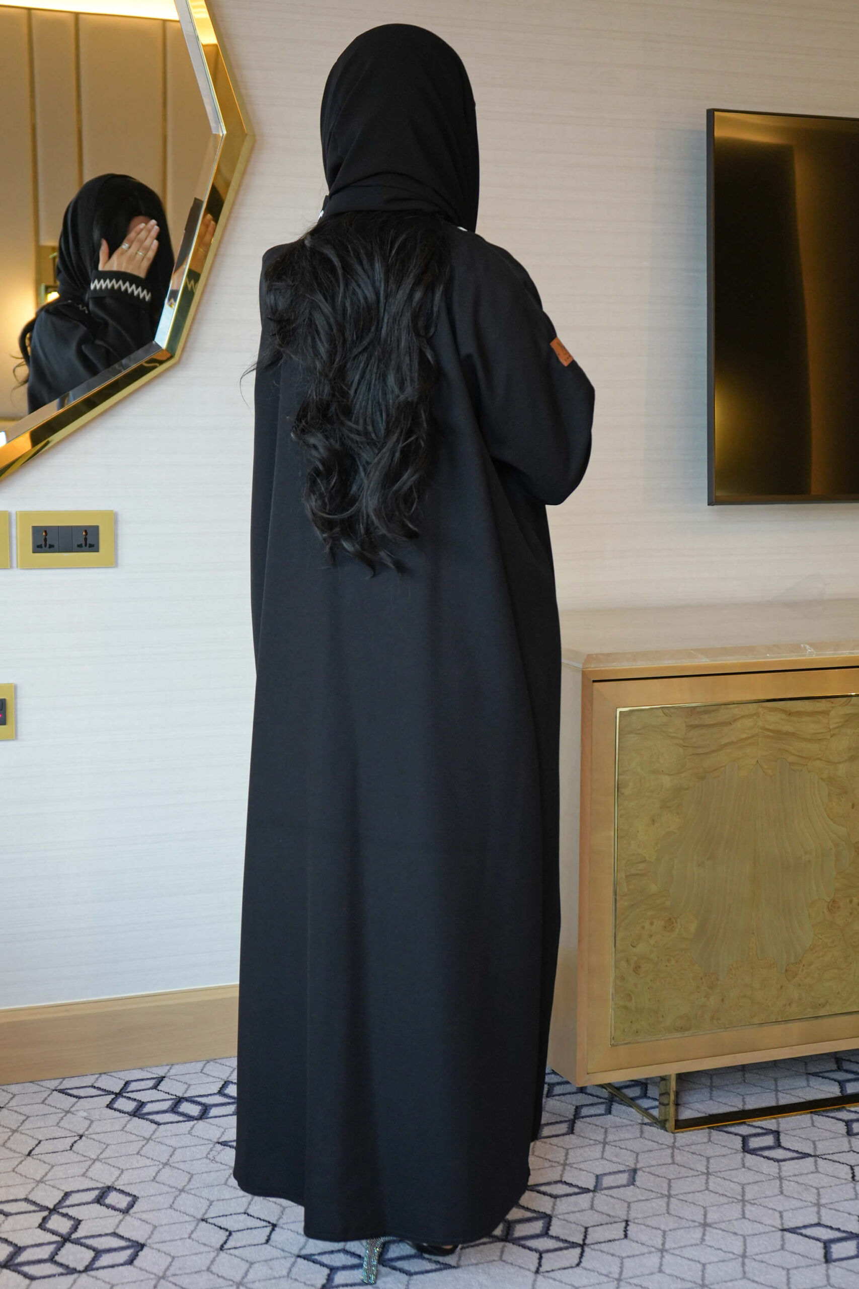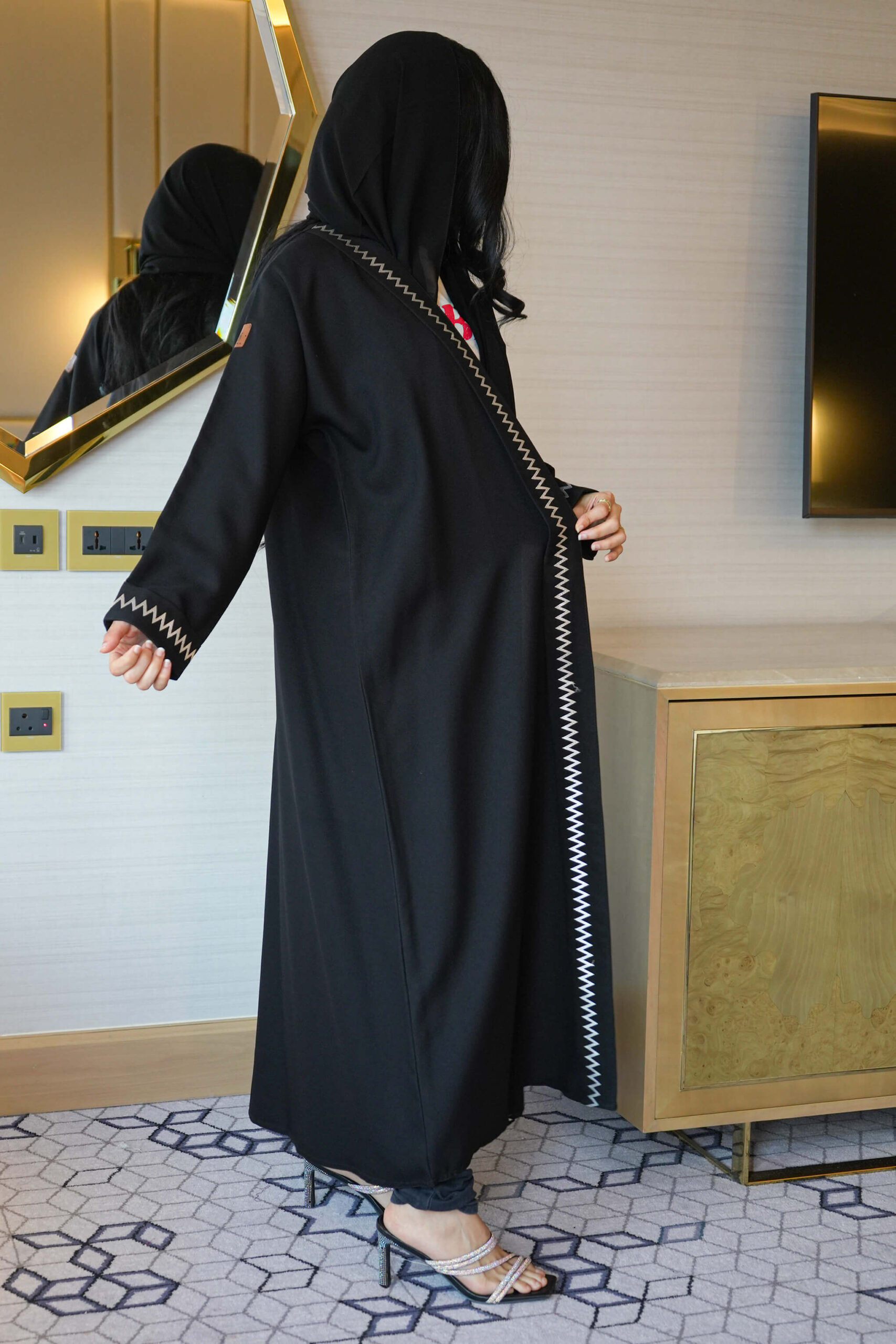 عبايه قطريه بتطريز شك اسود مخفى من امام