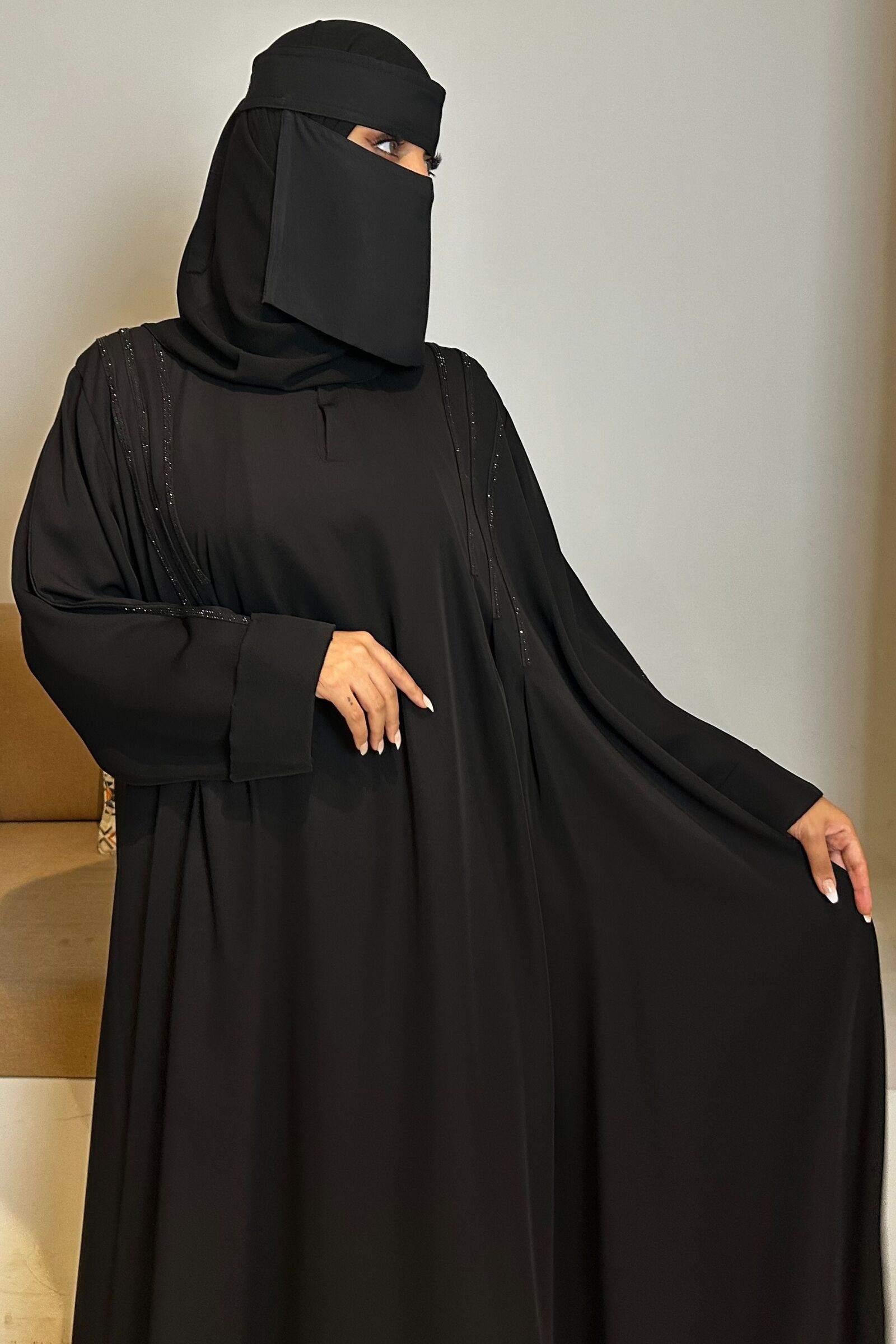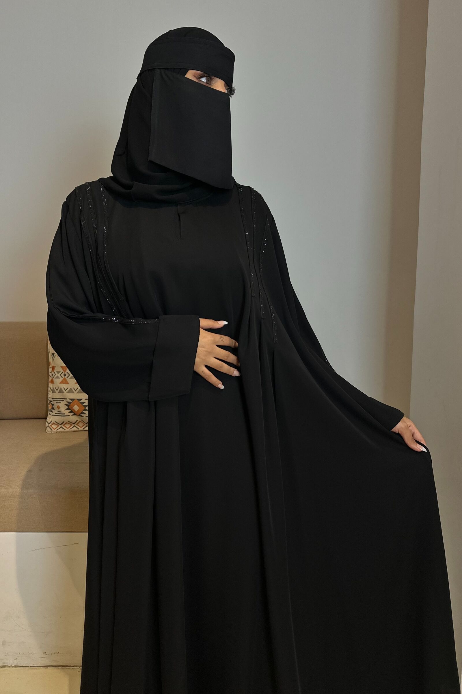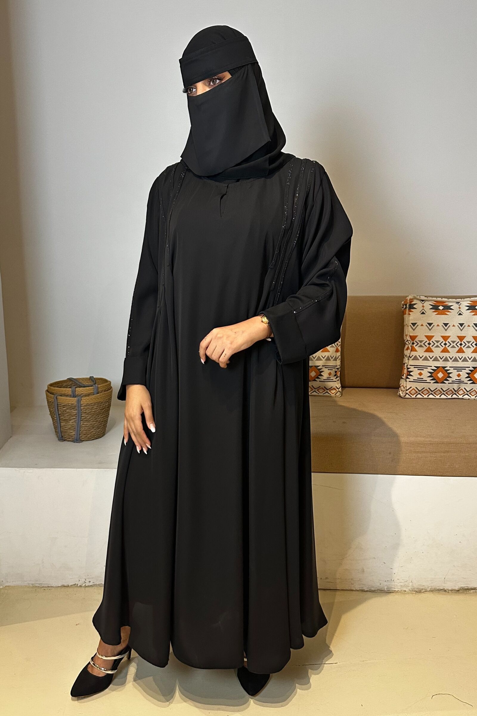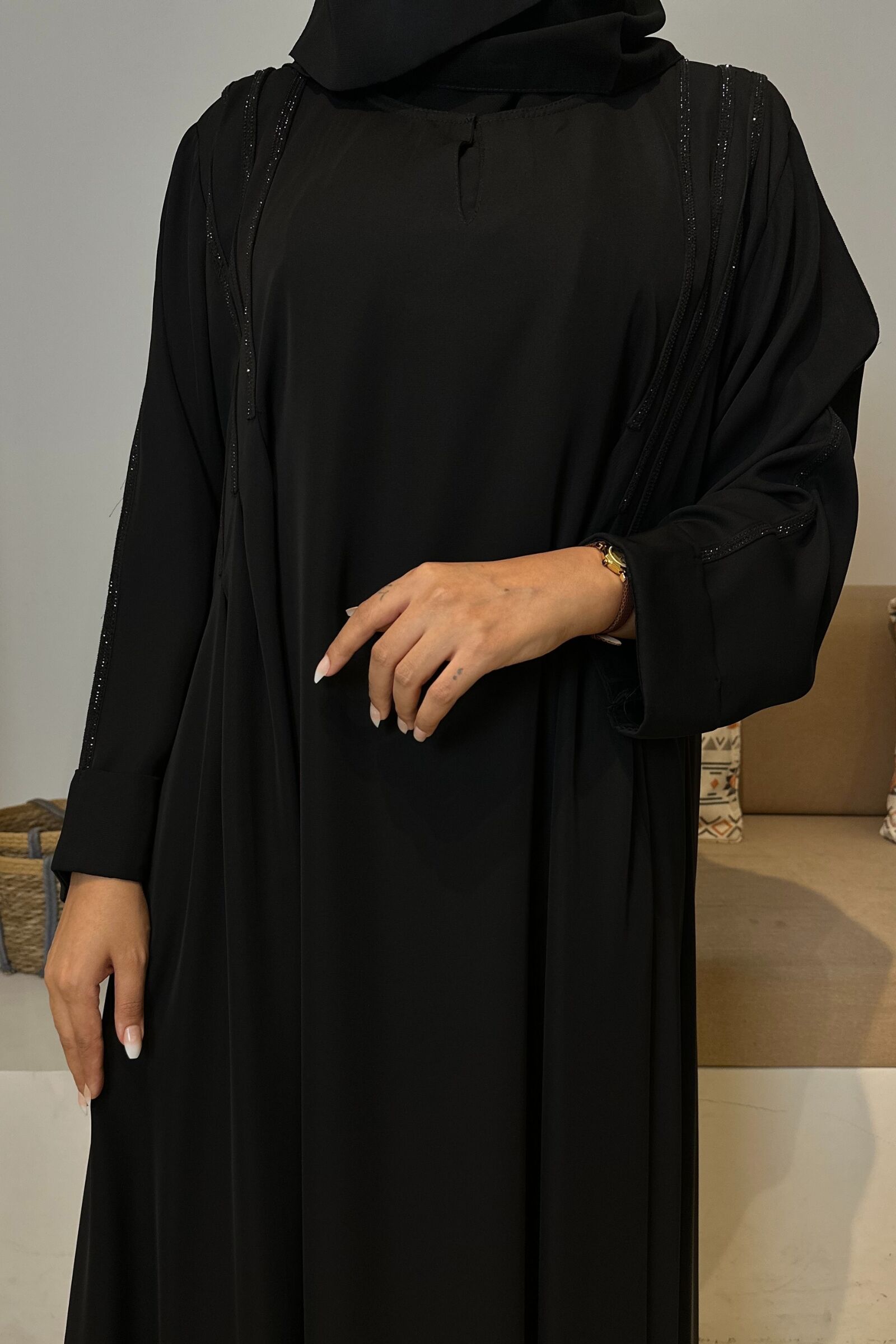- دقة الحياكة: تتميز العباية بدقة حياكتها وعناية تفصيلها، ممّا يجعلها قطعةً فاخرة تدوم معكِ لسنواتٍ طويلة.