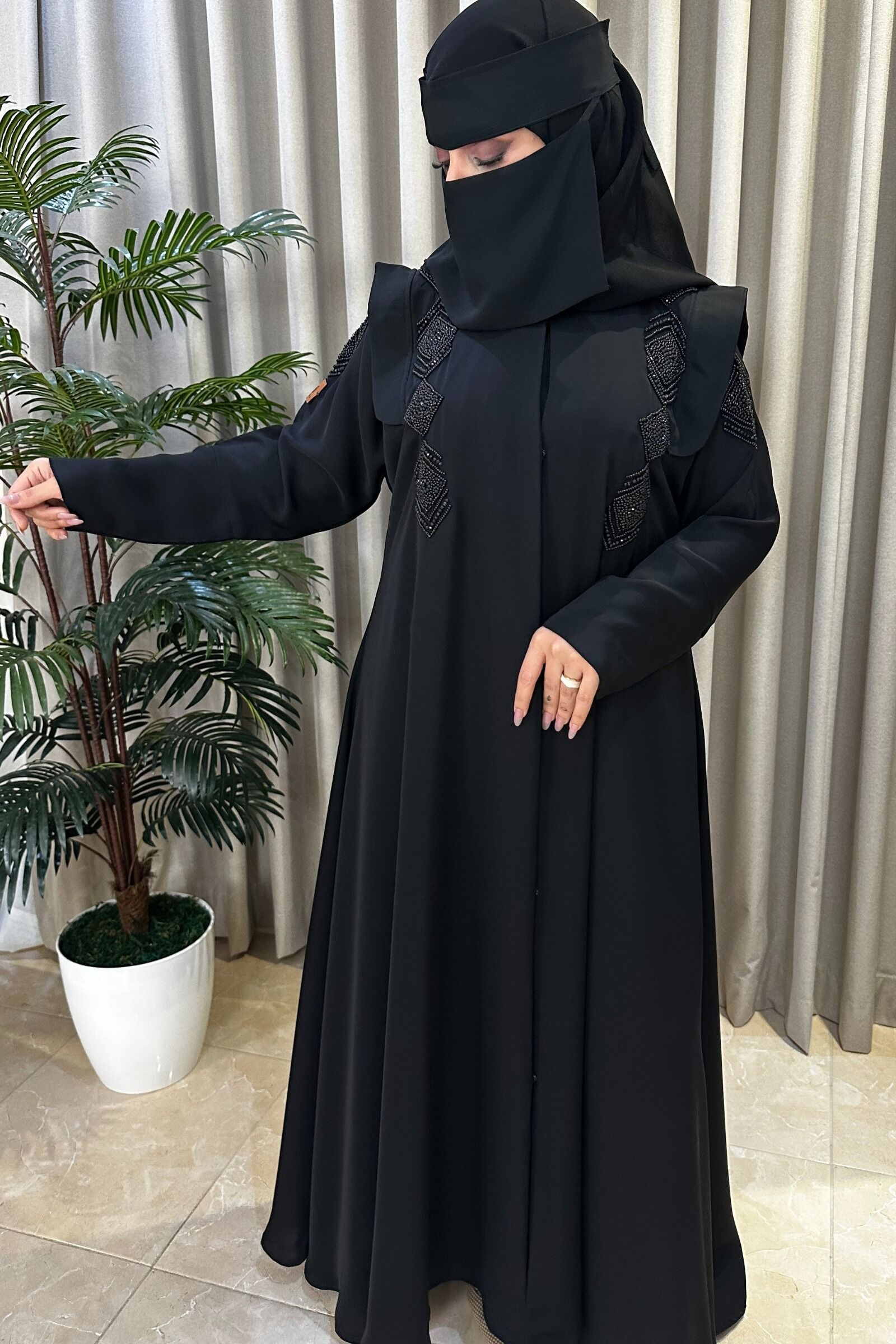 عباية كلوش منسوجة بـ خرز يدوي