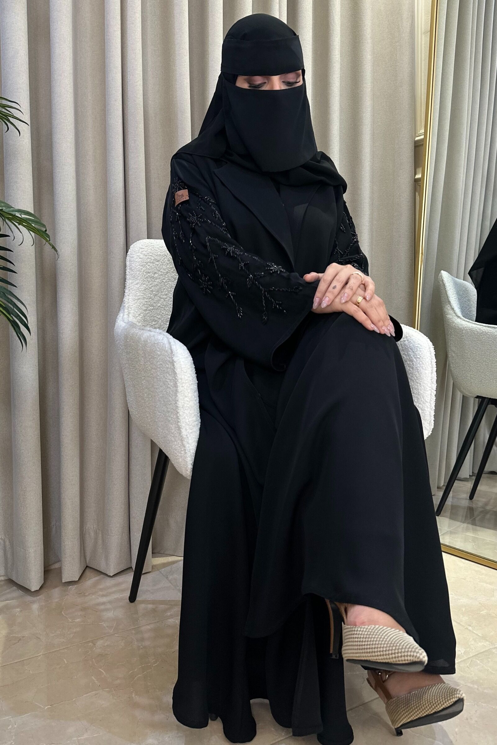تفتخر هذه العباية بتصميم مميز وفخم، مما يجعلها مناسبة لجميع الأحداث الخاصة والمناسبات والداومة.