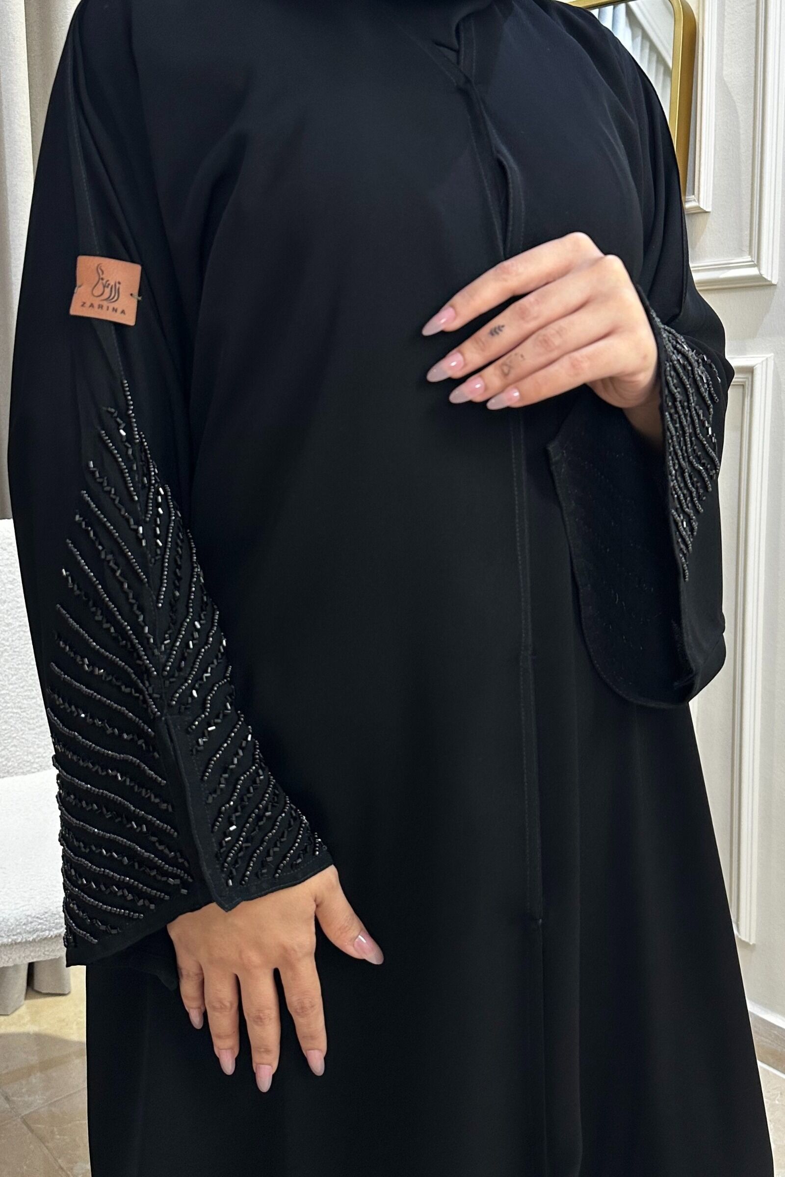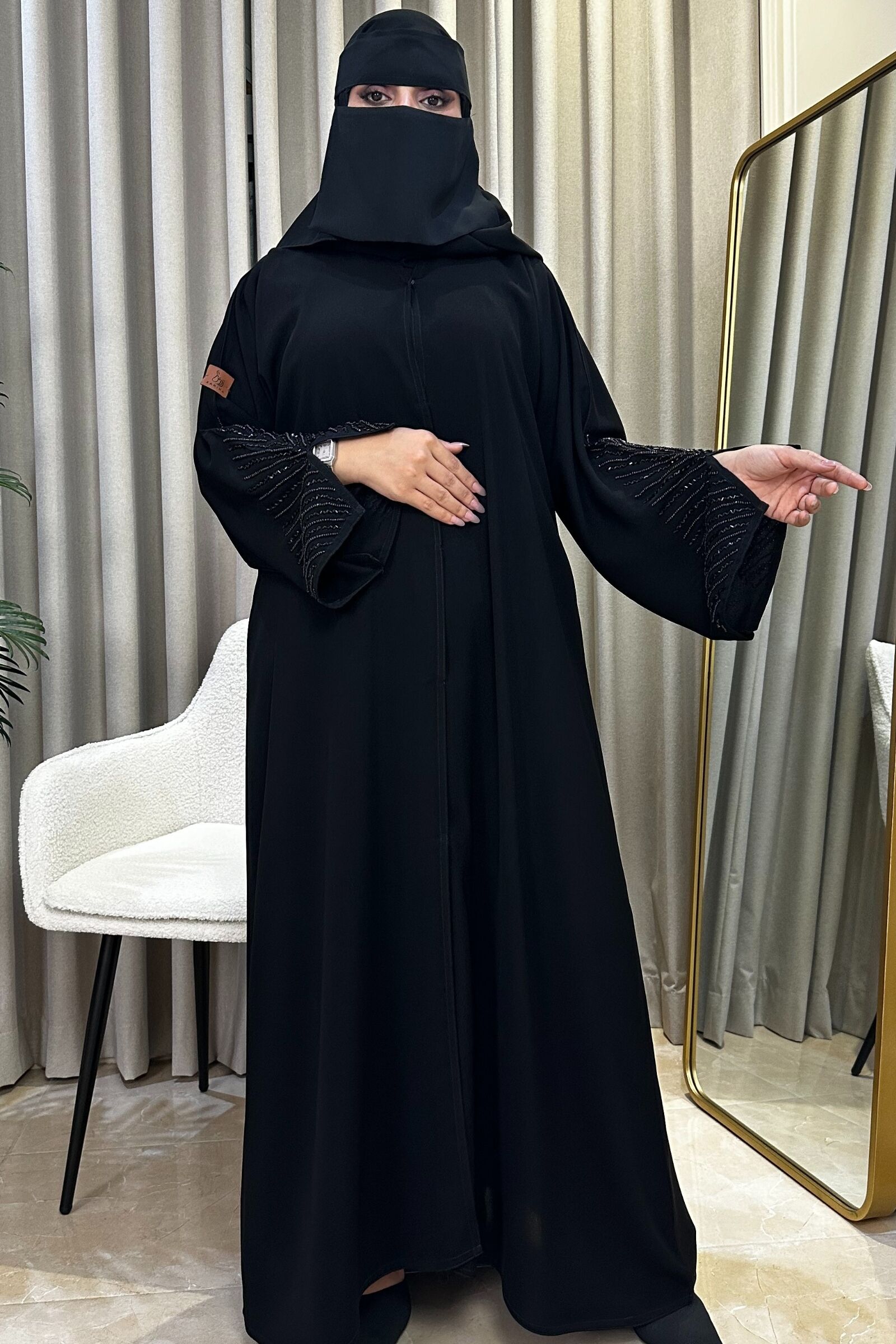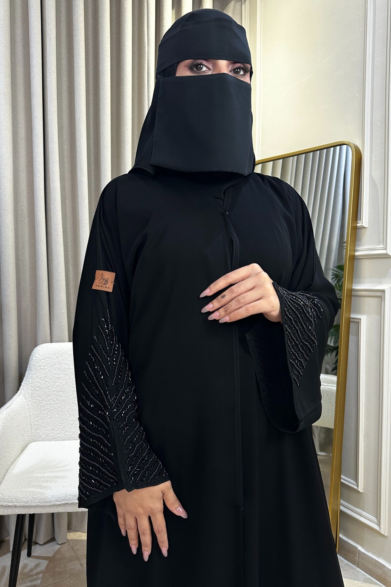 عباية سوداء شك خرز يدوي ( تطريز باسود )