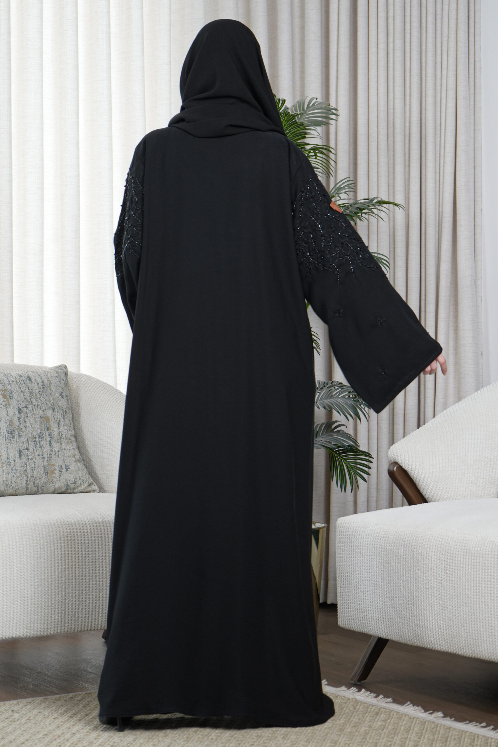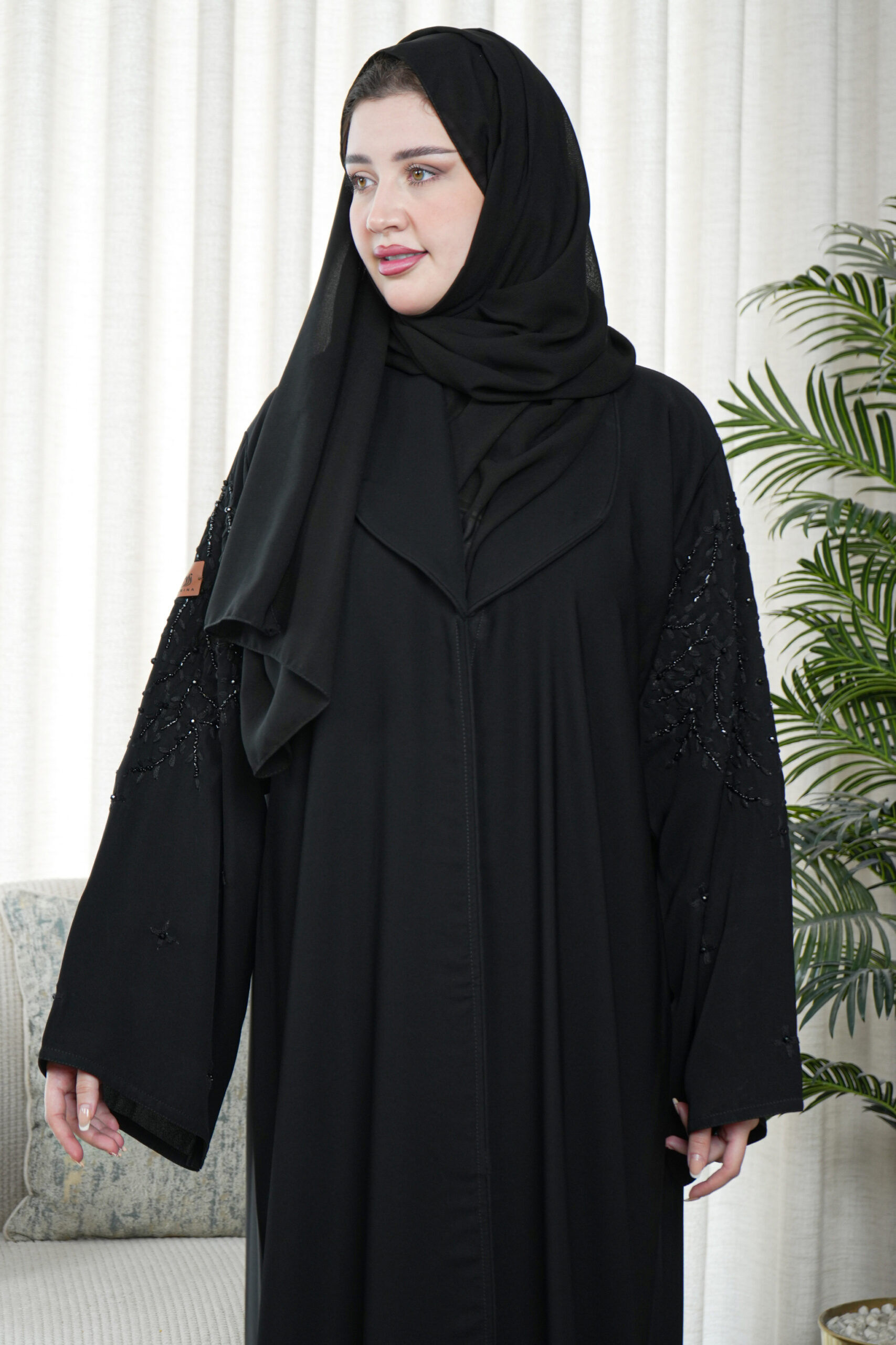 عباية بياقة دائري بشك يدوى على اكتاف بخيوط اسود