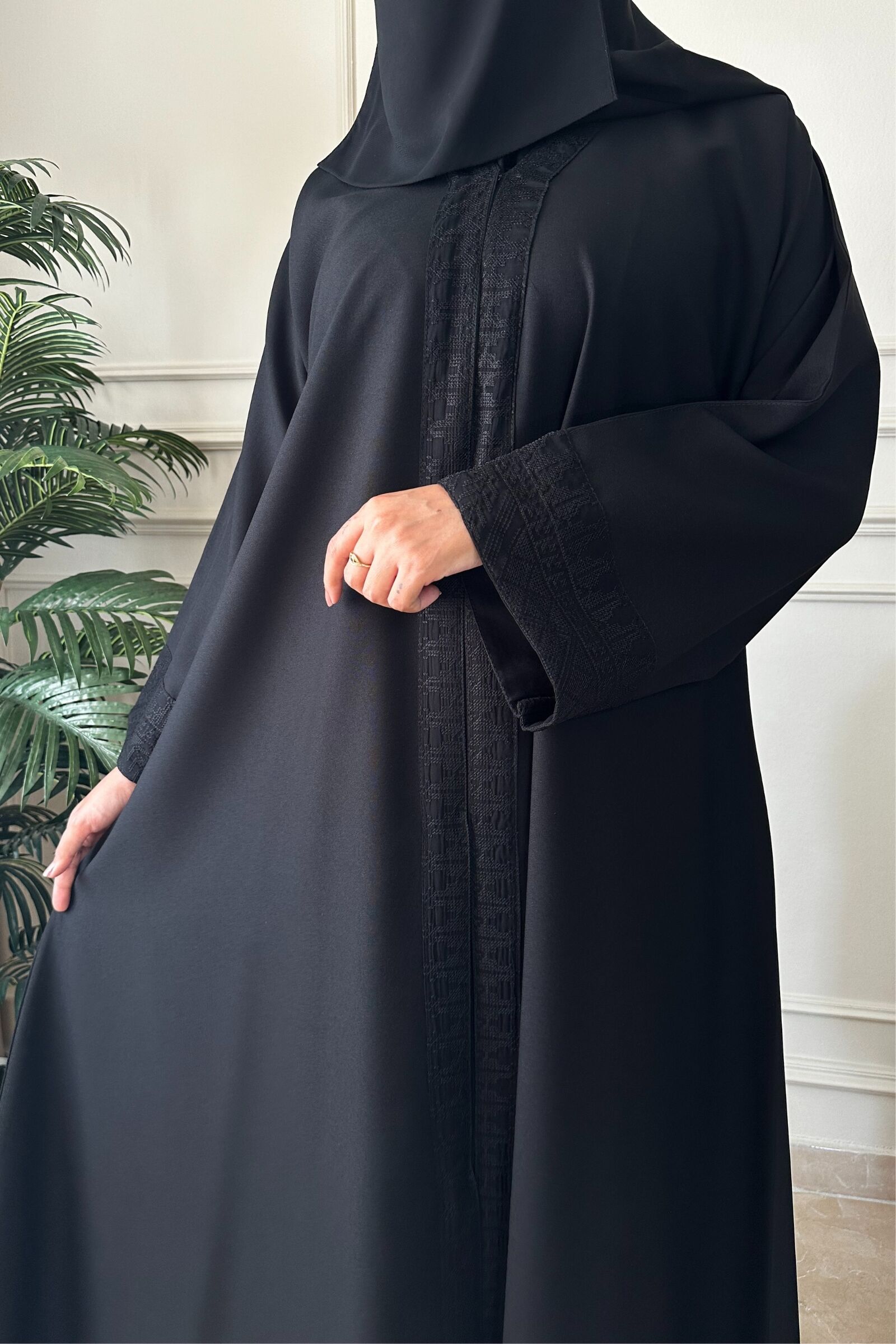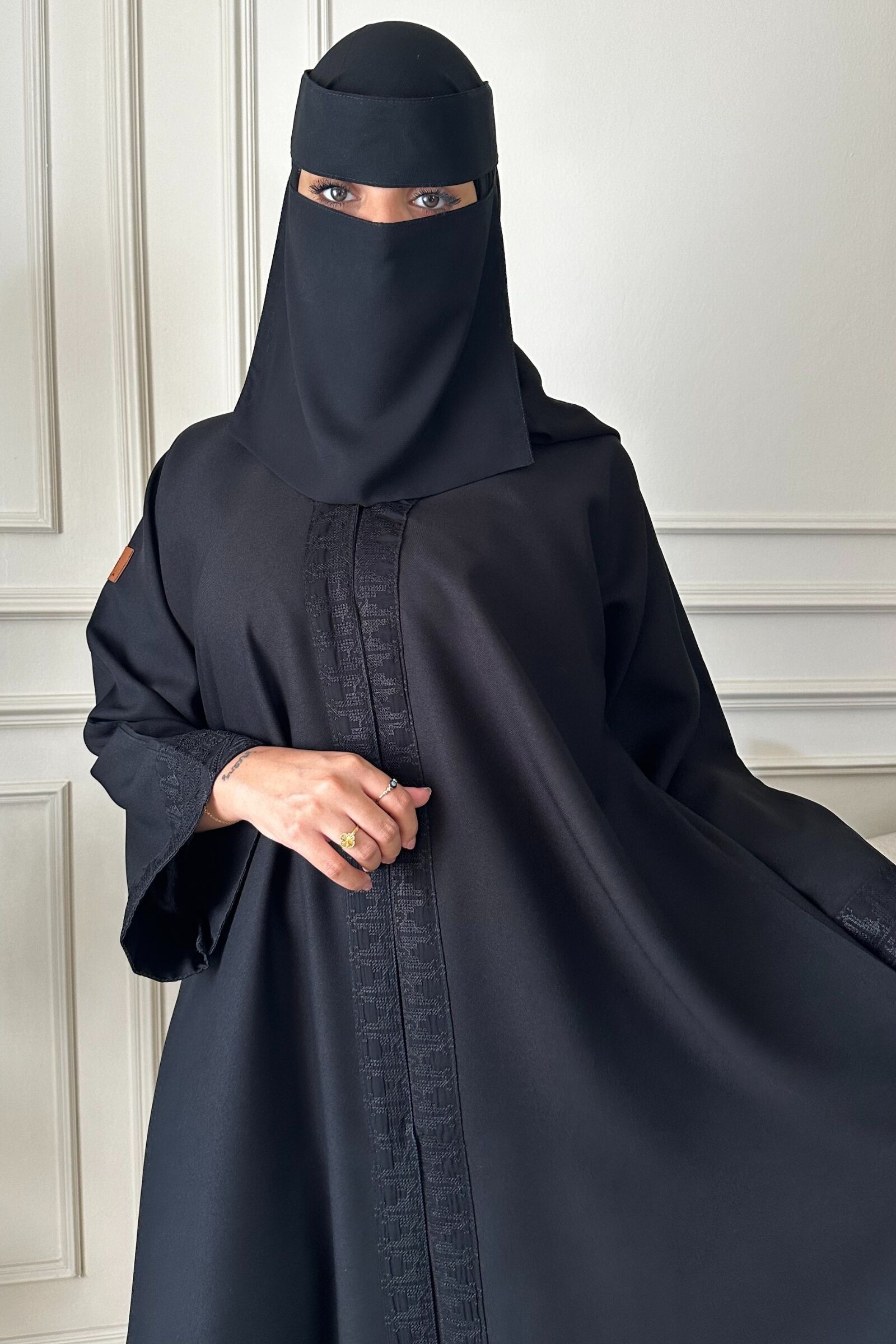 عبايه نص كلوش بتطريز شريط من كم و اسفل العبايه