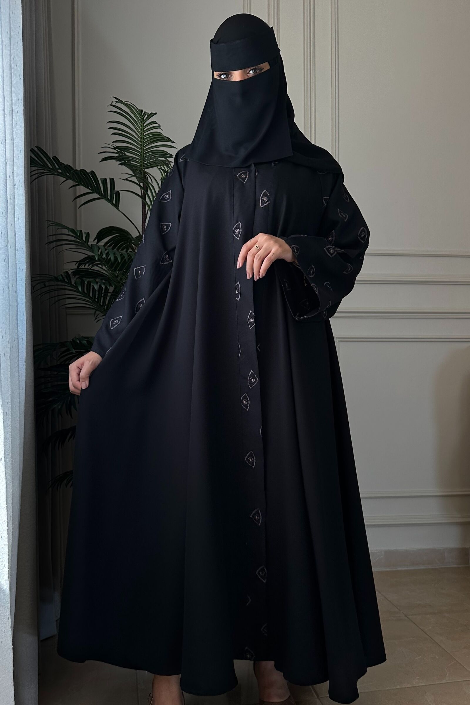 عبايه كلوش بتطريز مخفي من امام و كم بلون مخفي