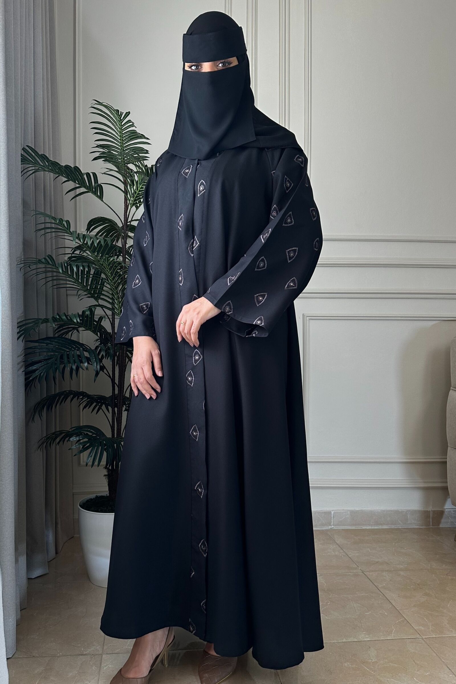 فخامة اللون الأسود لا يضاهيها شيء ، فما بالك بعبايه كلاسيك فخمه بتطريز من امام و كم كامل ، مصممه بإبداع من قماش مني مات عالي الجودة ، و نقاط مبتكر و مميزة بلون نحاسي ليعطي شكل مميز ، ستكون اكثر عباية سوداء ، تناسب مختلف المناسبات و الأوقات و دوام .