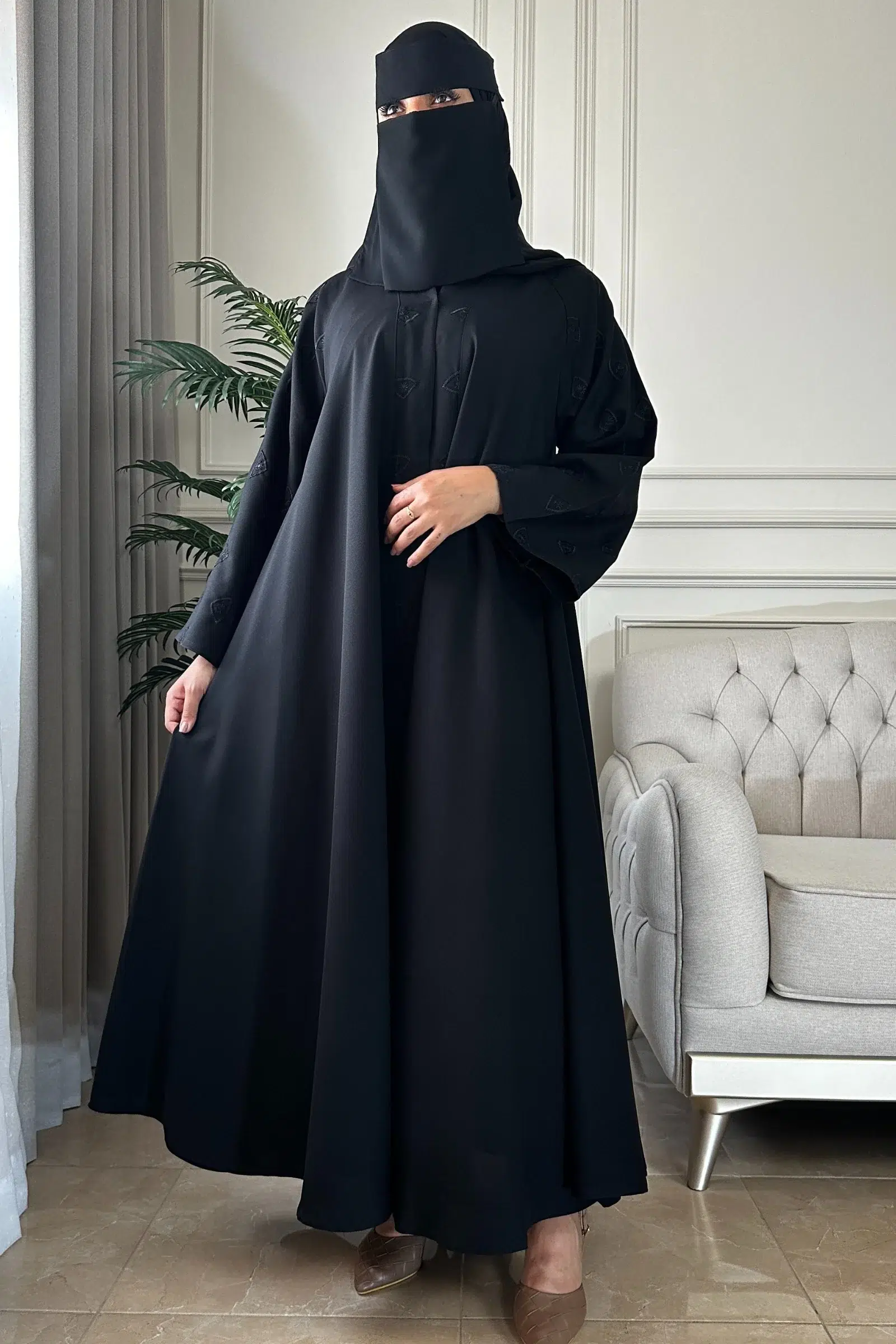 عباية كلوش بتطريز مخفي من امام و كم بلون اسود