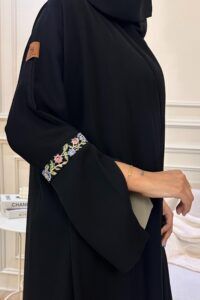 - الأكمام: مطرزة بورود ملونة من الكم وأسفل العباية.