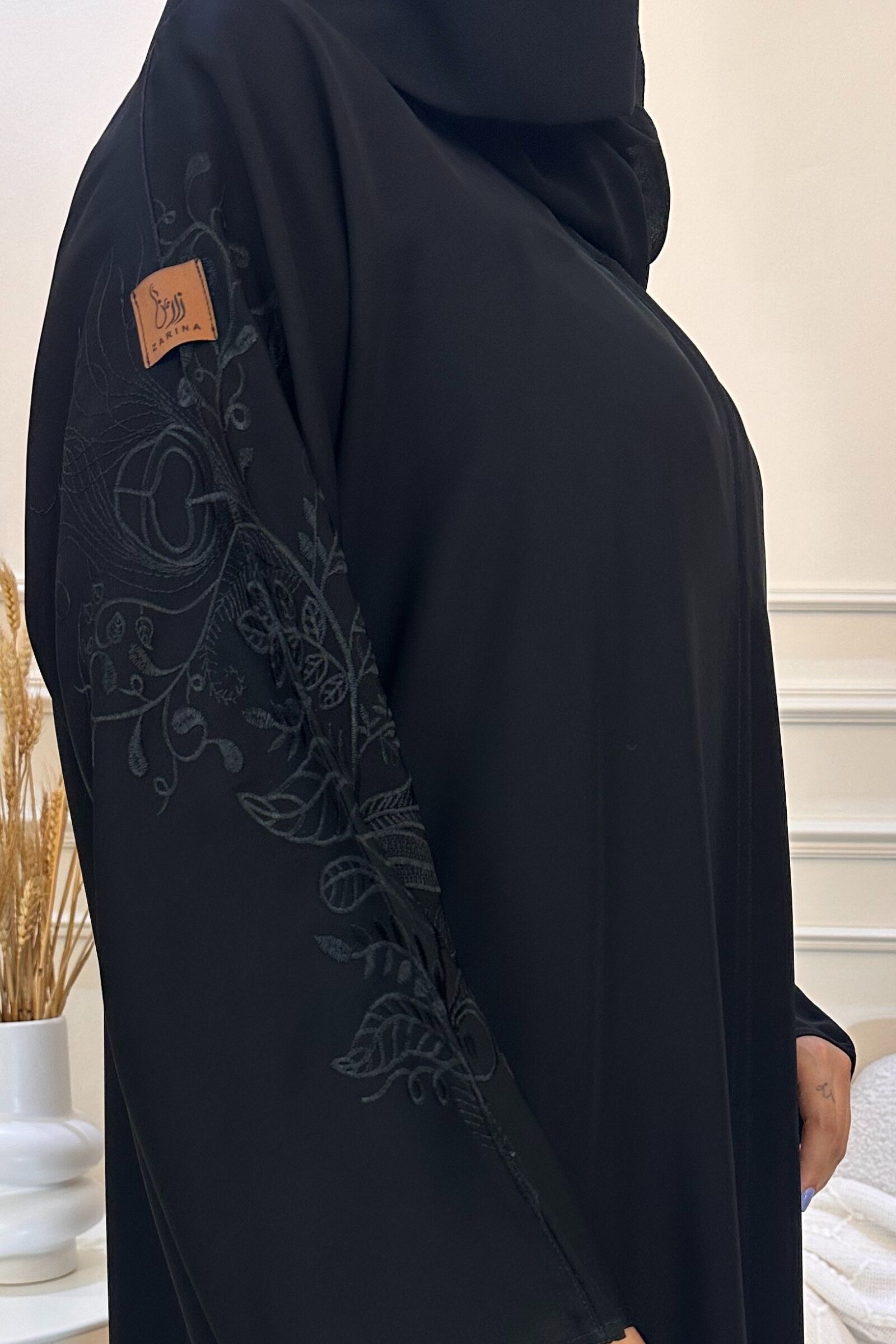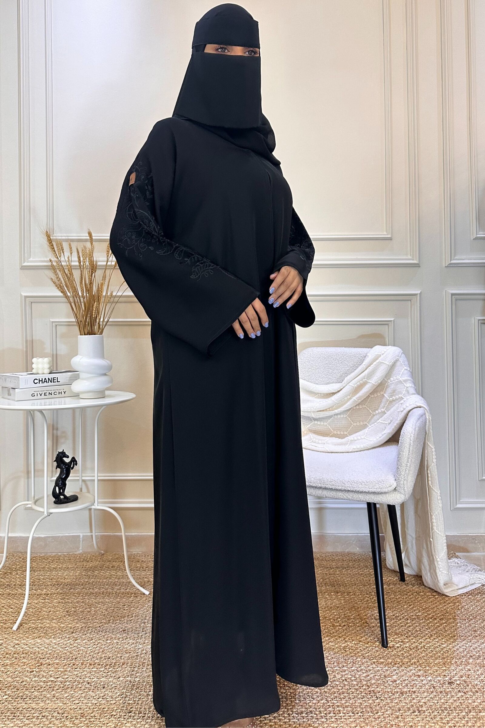 عباية بأكمام مطرزة اسود اكتاف فخامة