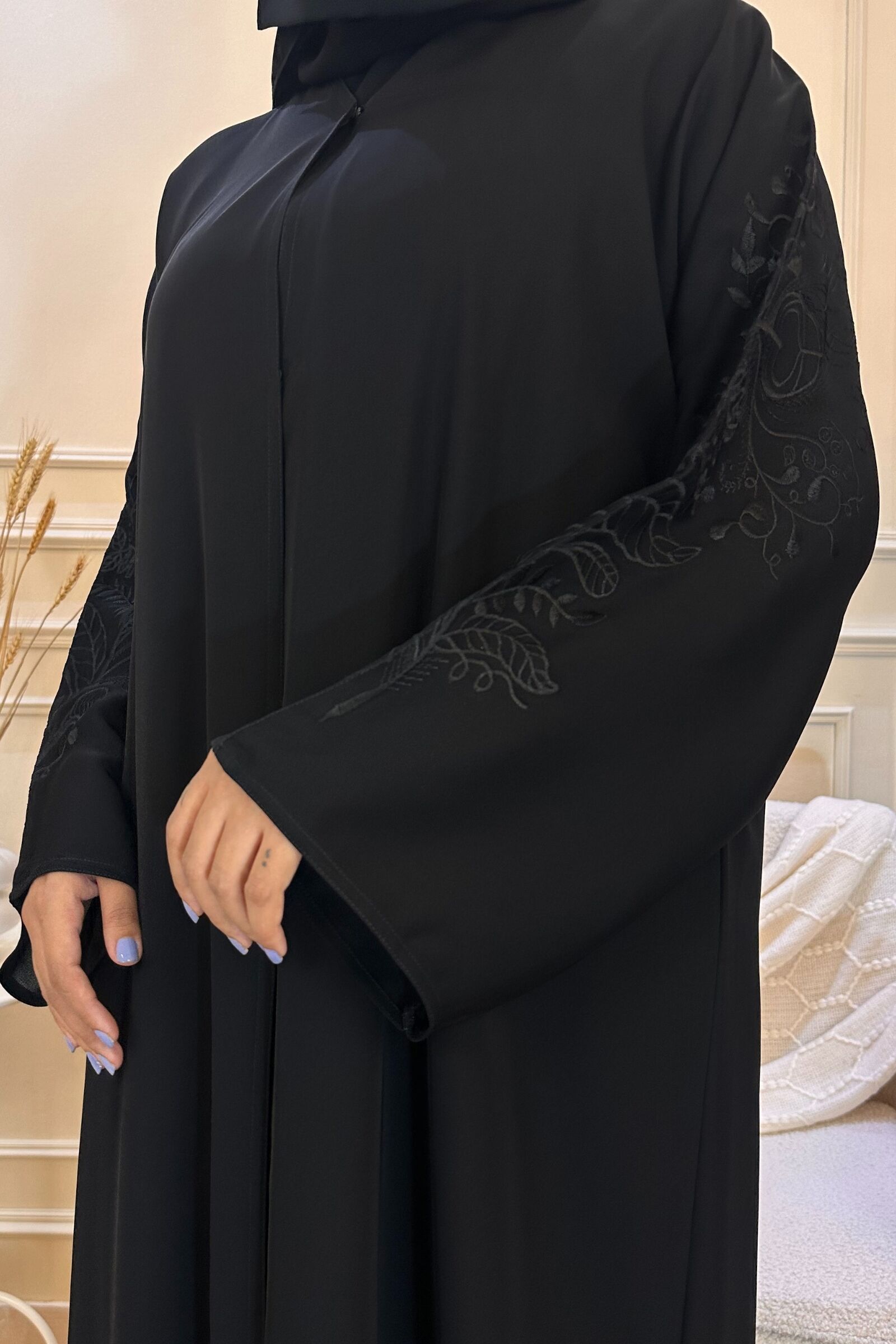 - أكمام مزهرة: تتميز العباية بتطريز متقن على الأكمام، لما يضفي عليها رونقًا خاصا ونفحة من الرقة.