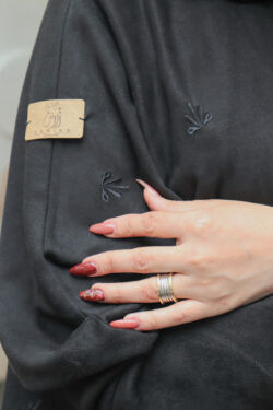 عباية مخمل بياقه كلوش بتطريز شك اسود على اكمام