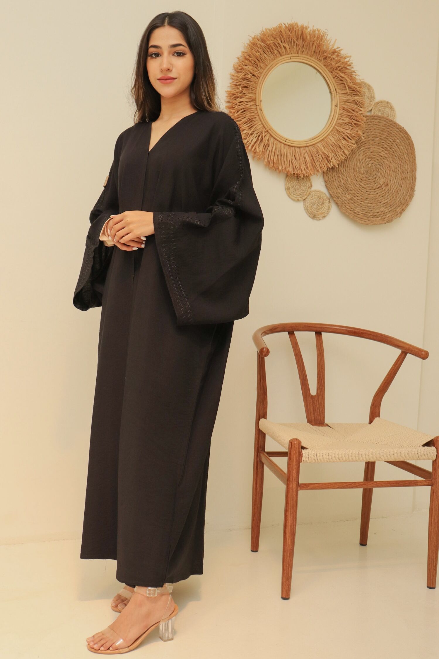عباية كلوش نواعم بشك على الأكمام و الأجناب بشكل مميز