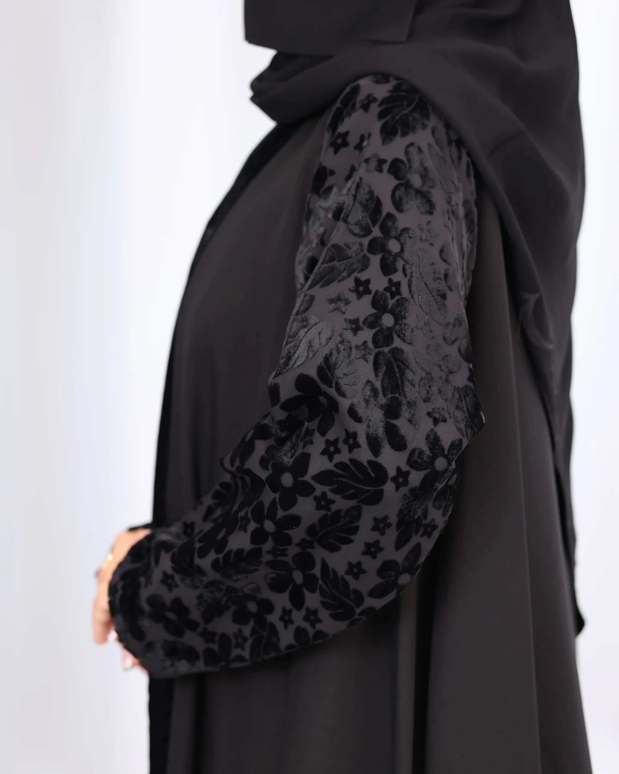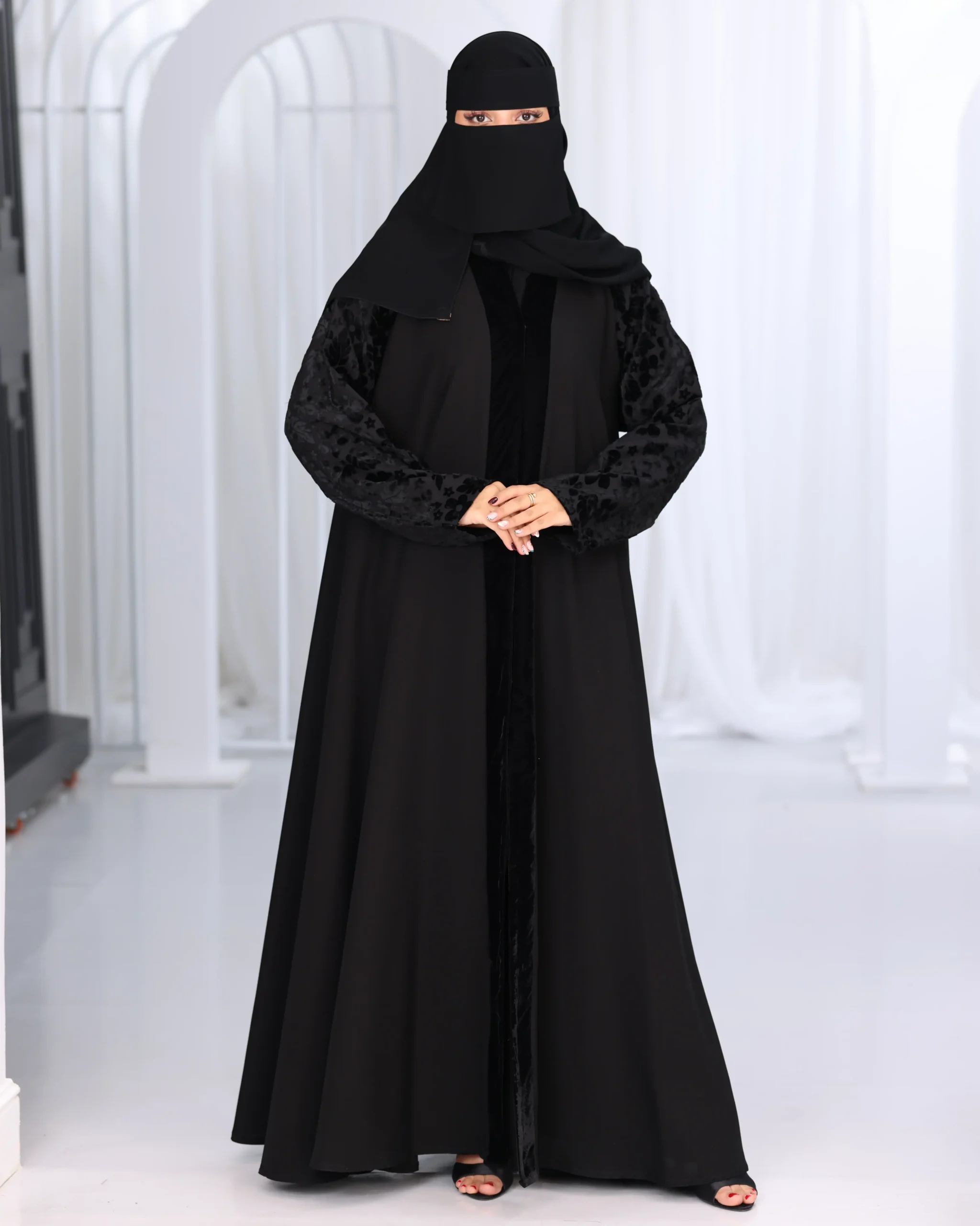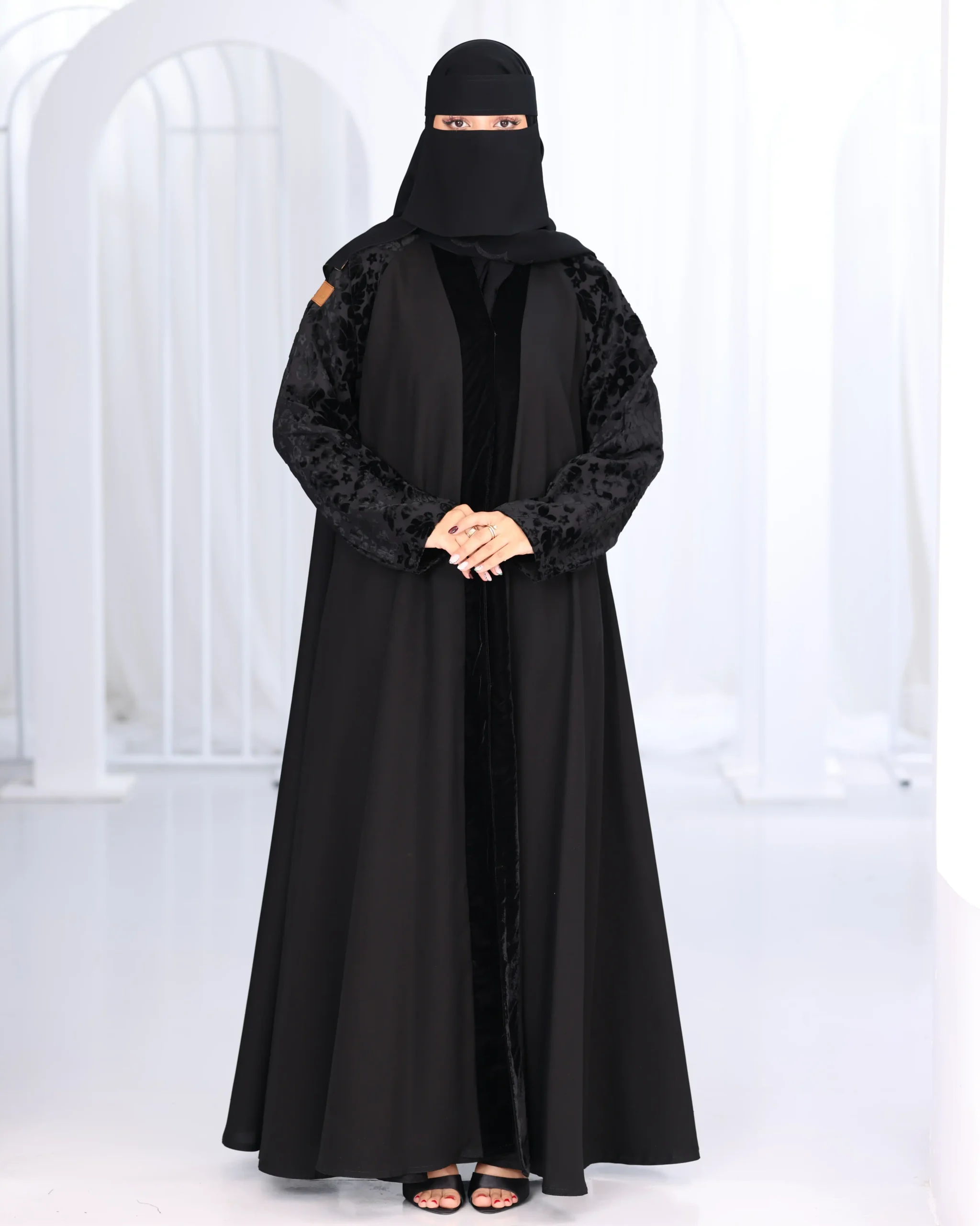 عباية كلوش بكم منفصل و مخمل منقش