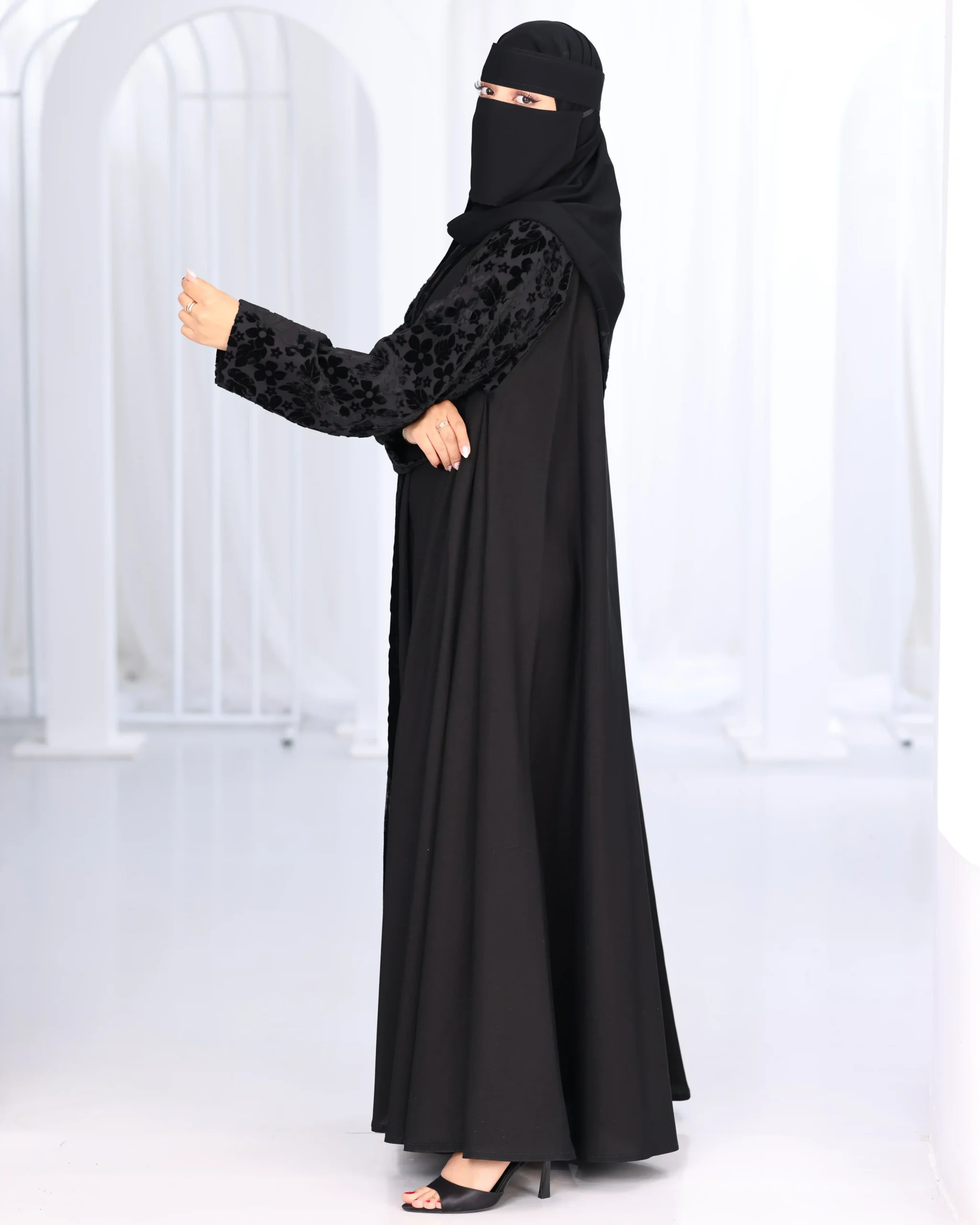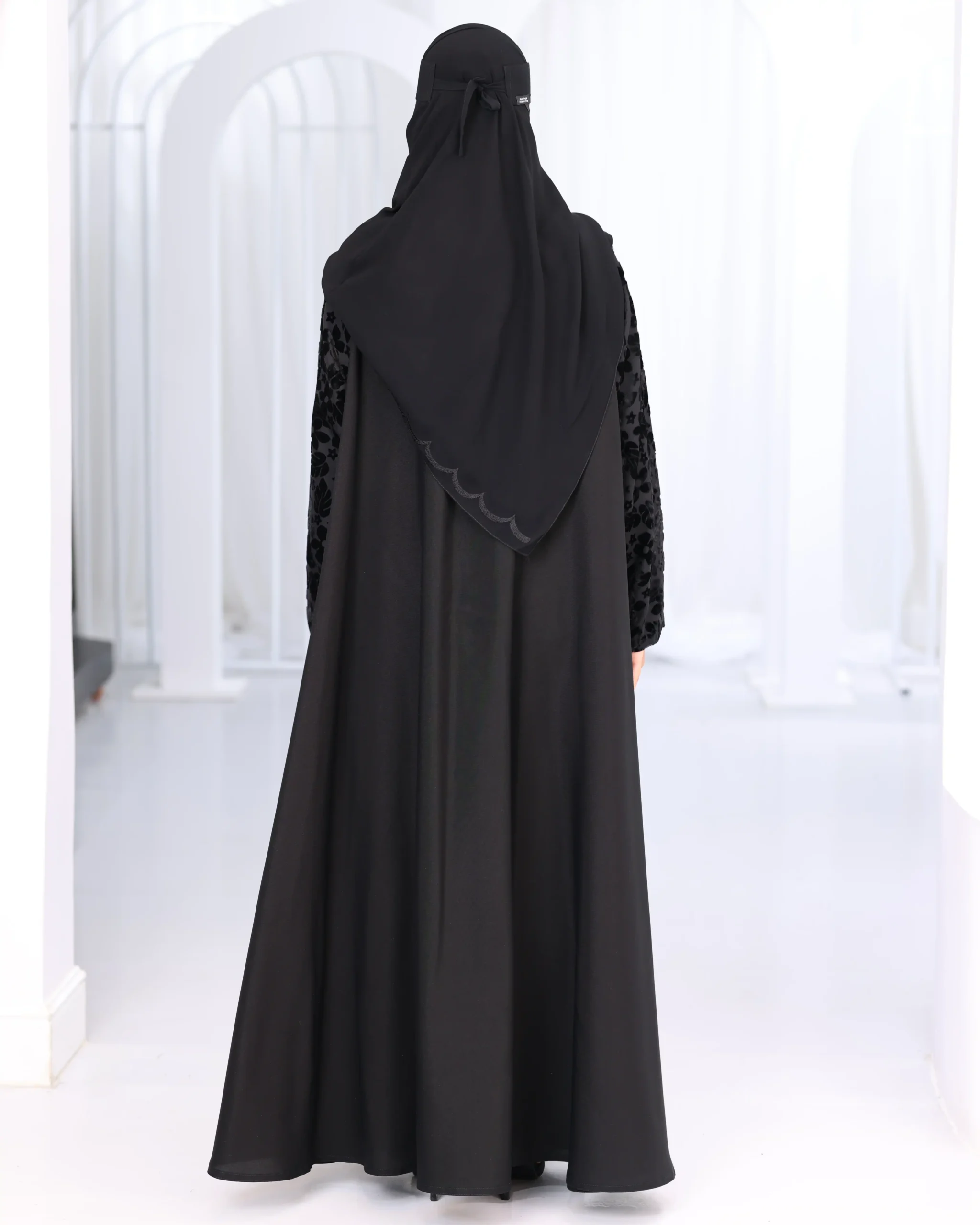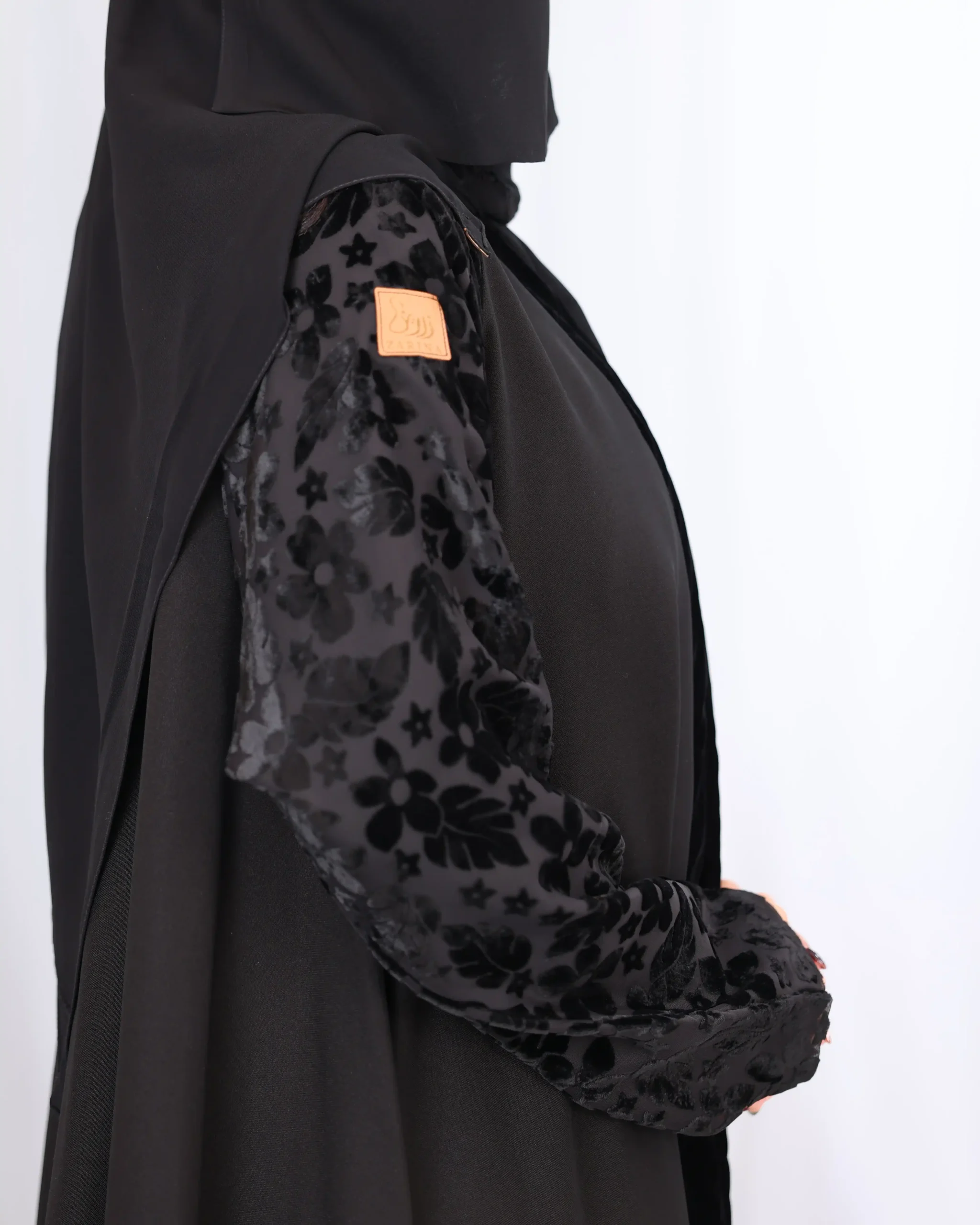 عباية كلوش بكم منفصل و مخمل منقش