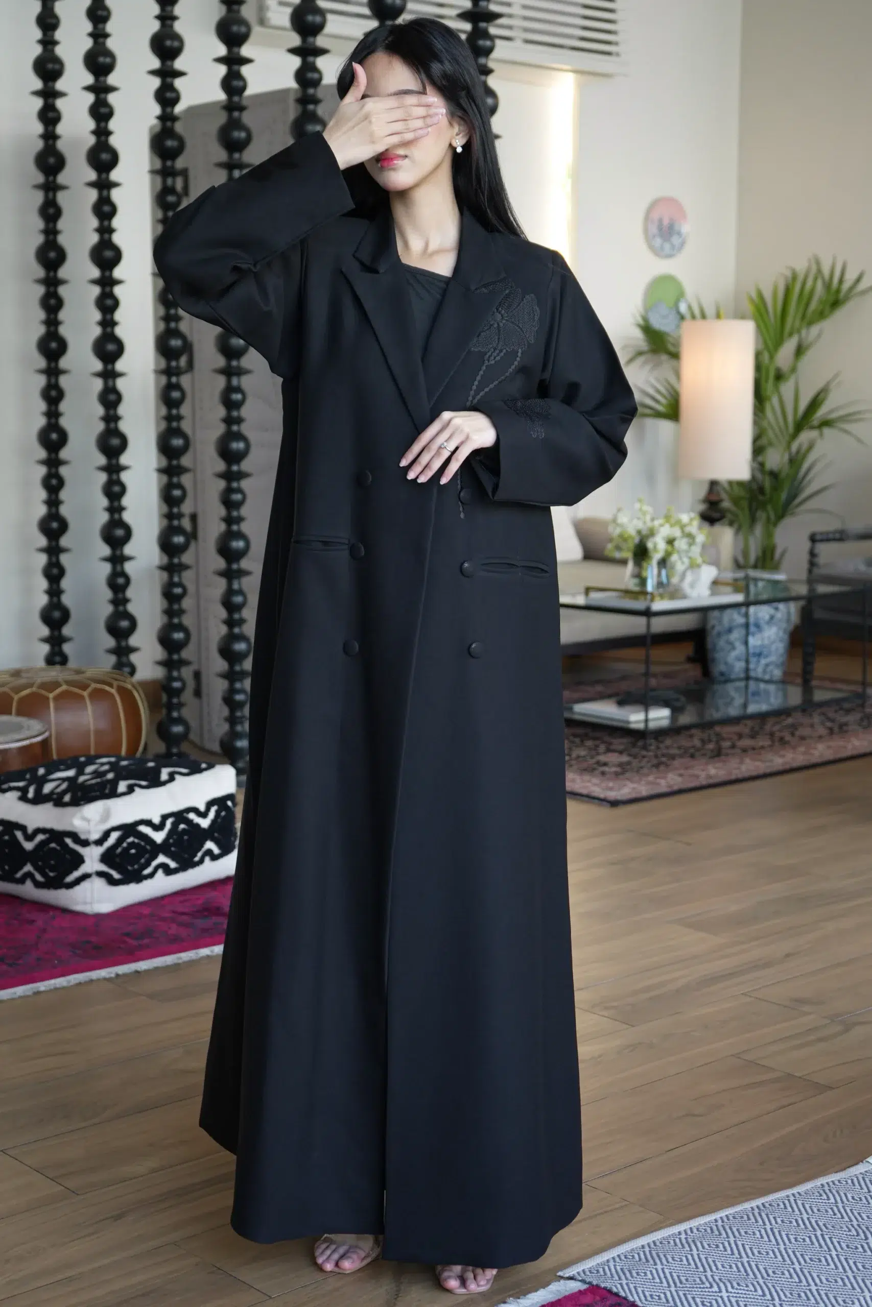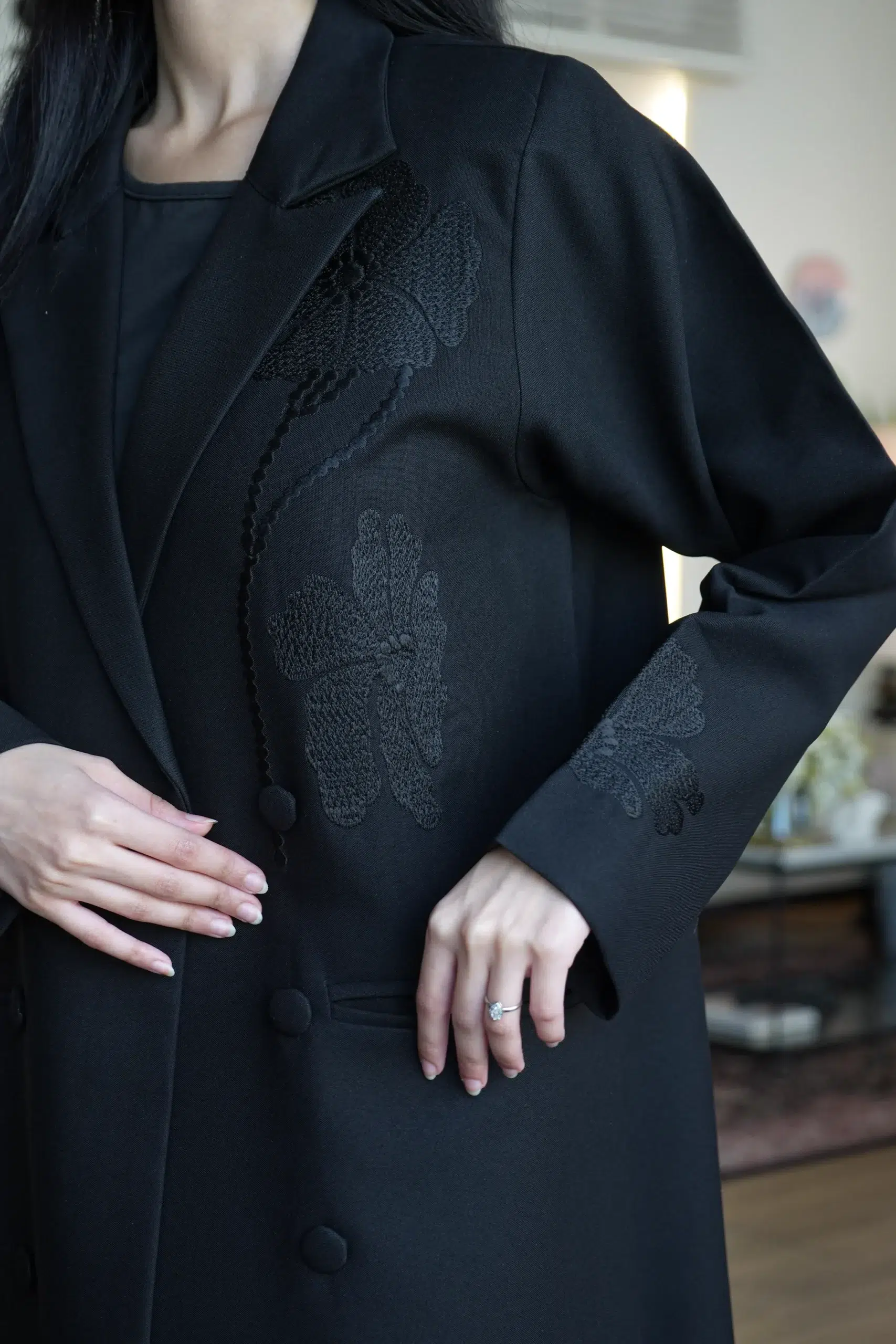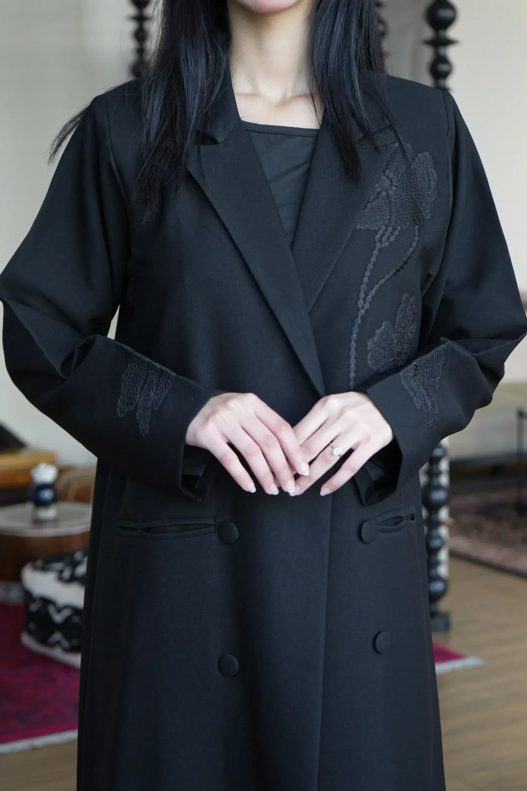 عباية بليزر اسود بتطريز شك اسود من جانب العلوى