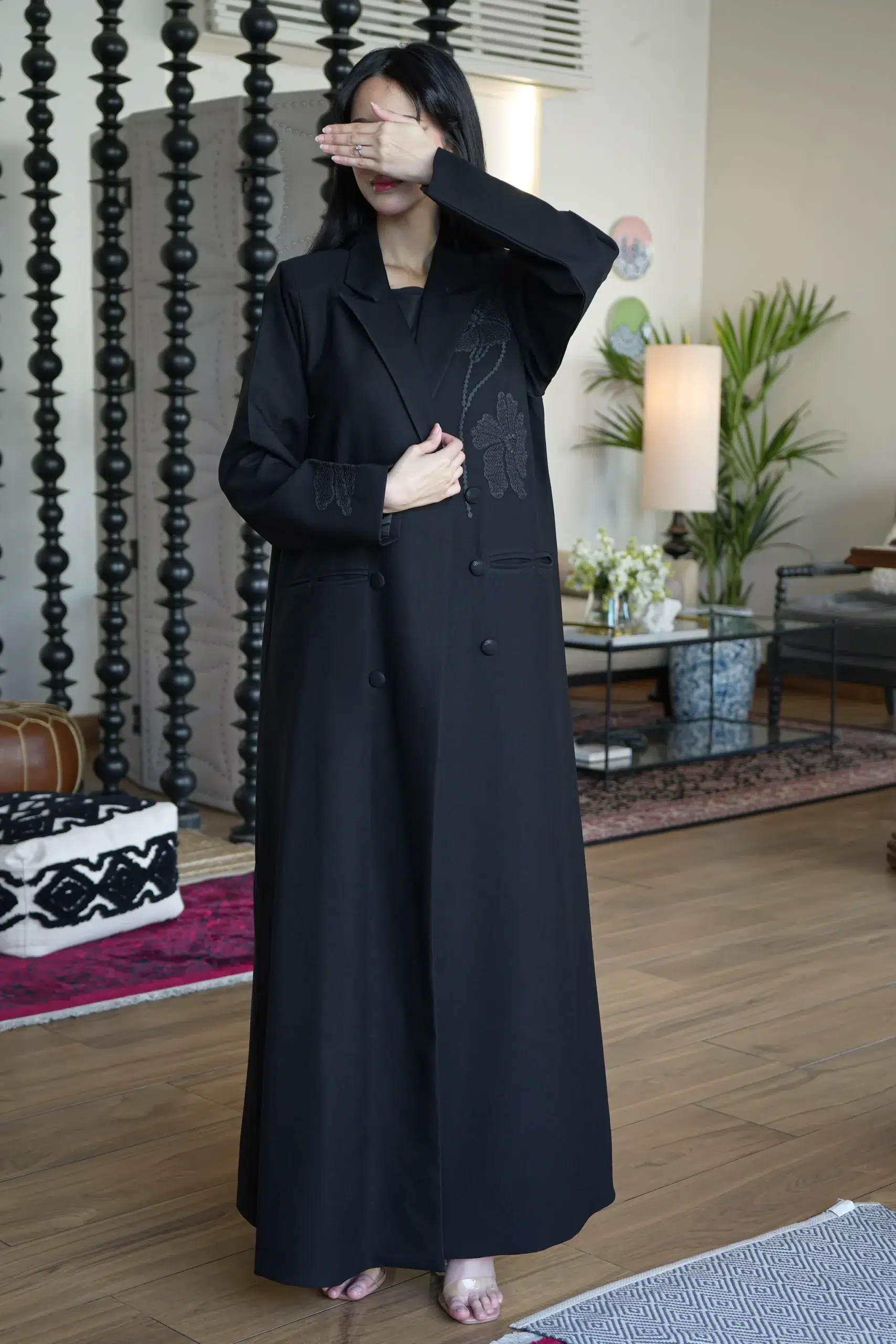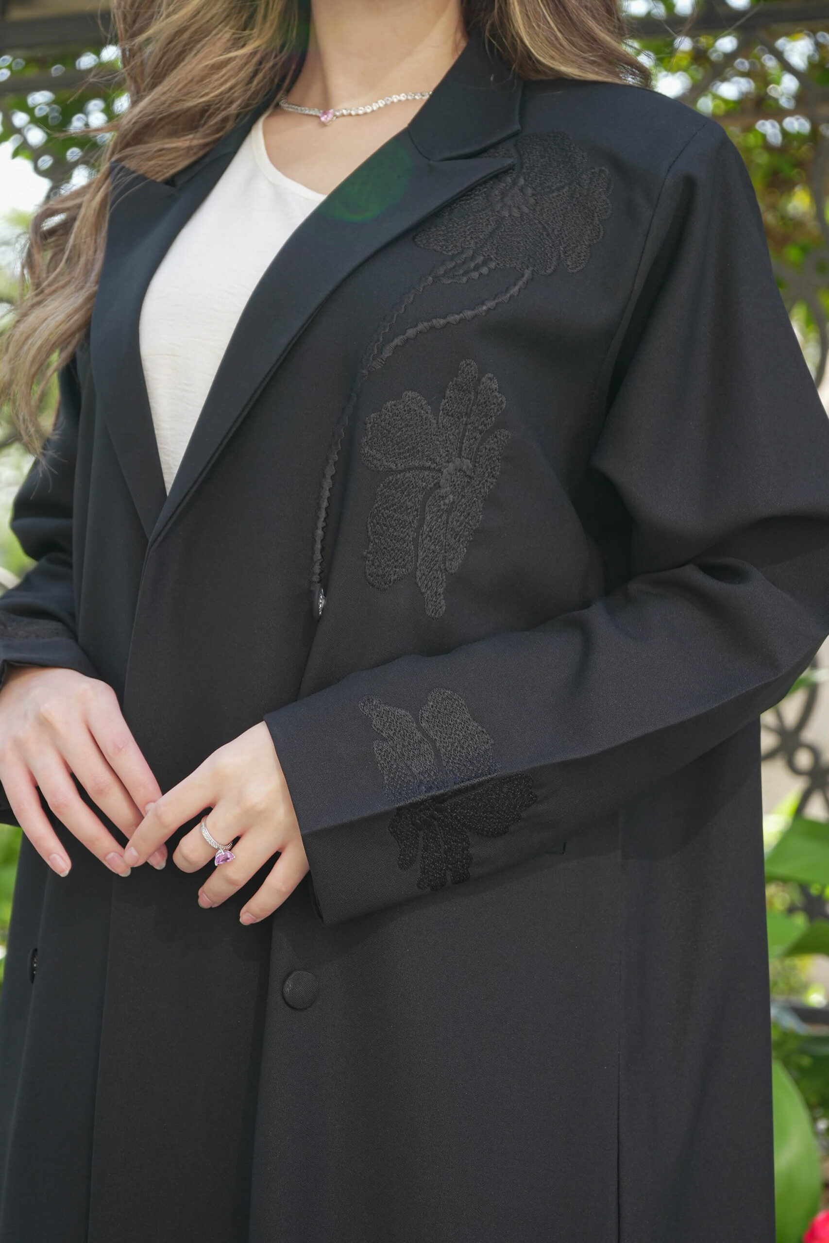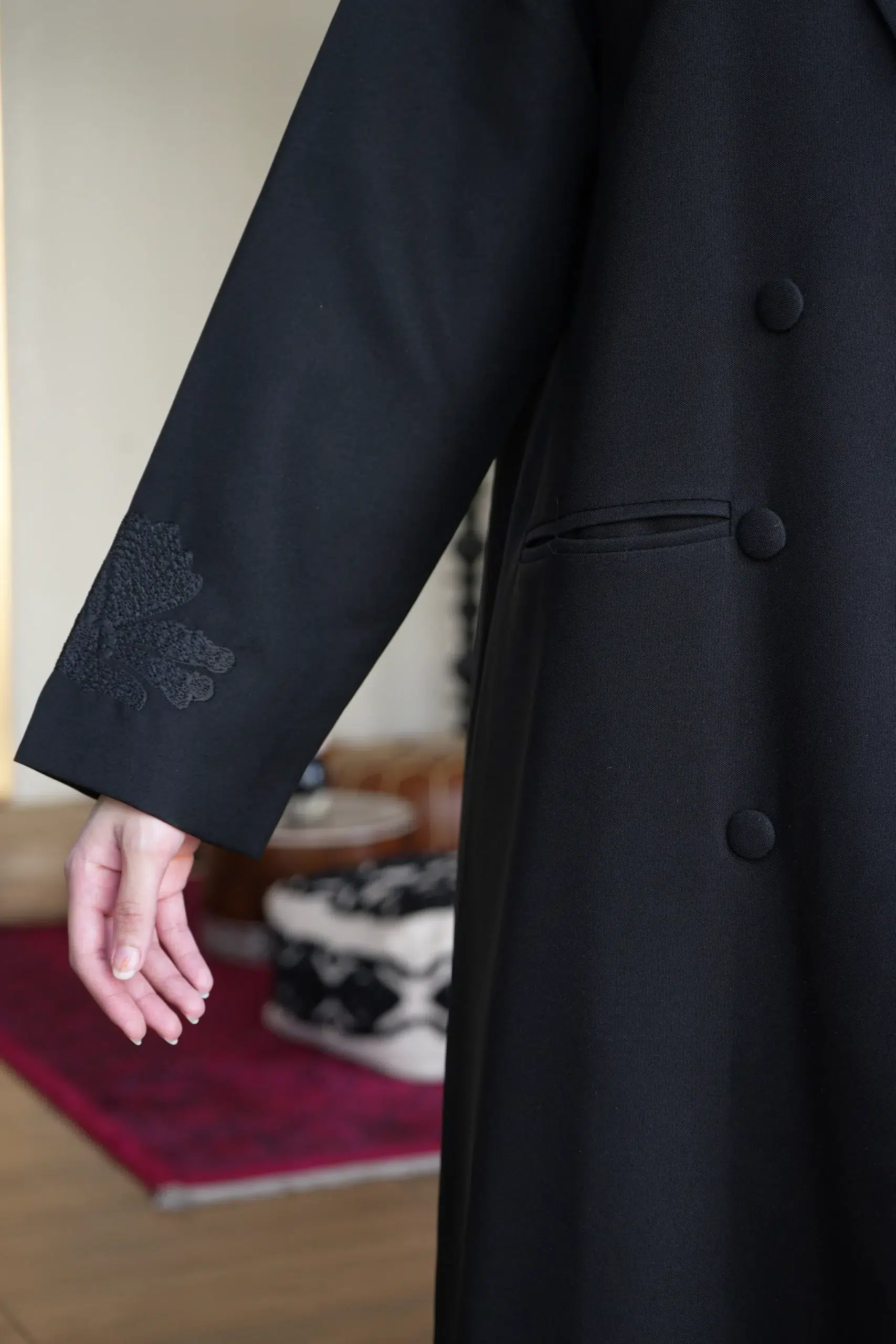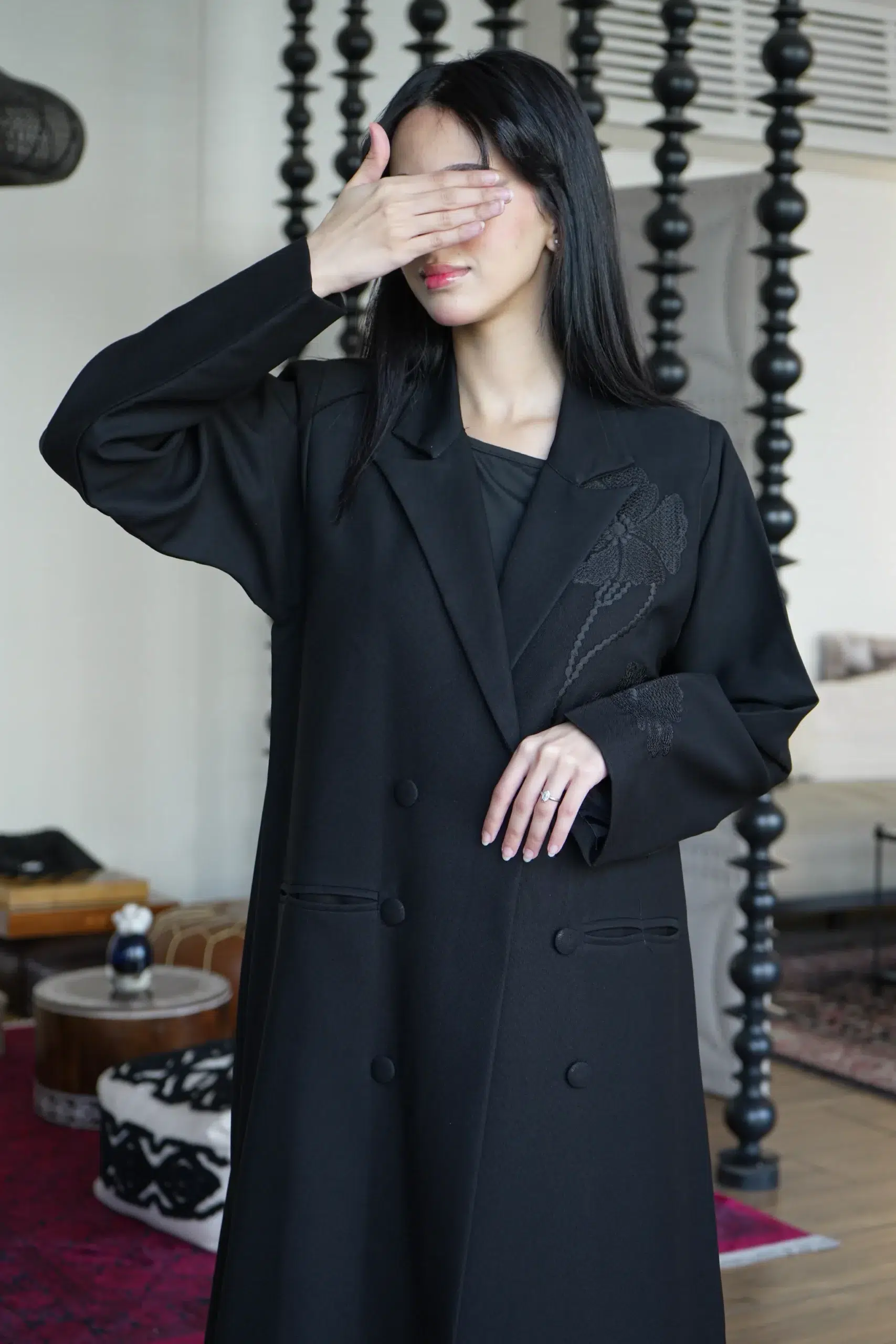 عباية بليزر اسود بتطريز شك اسود من جانب العلوى