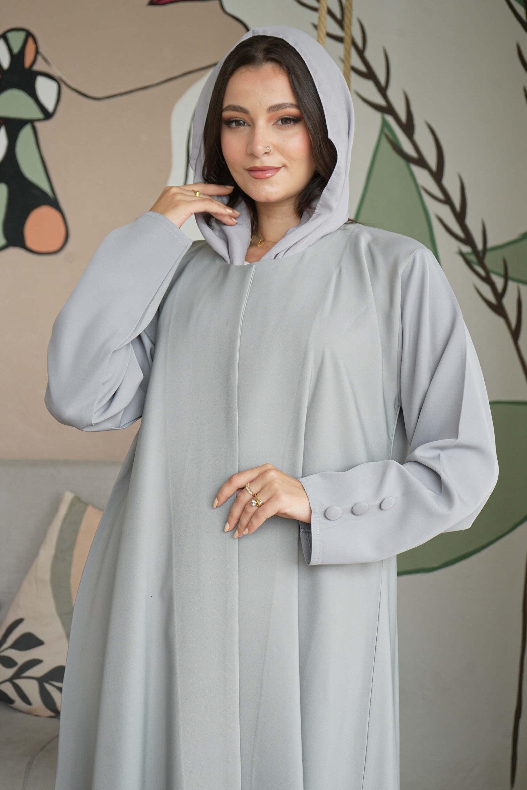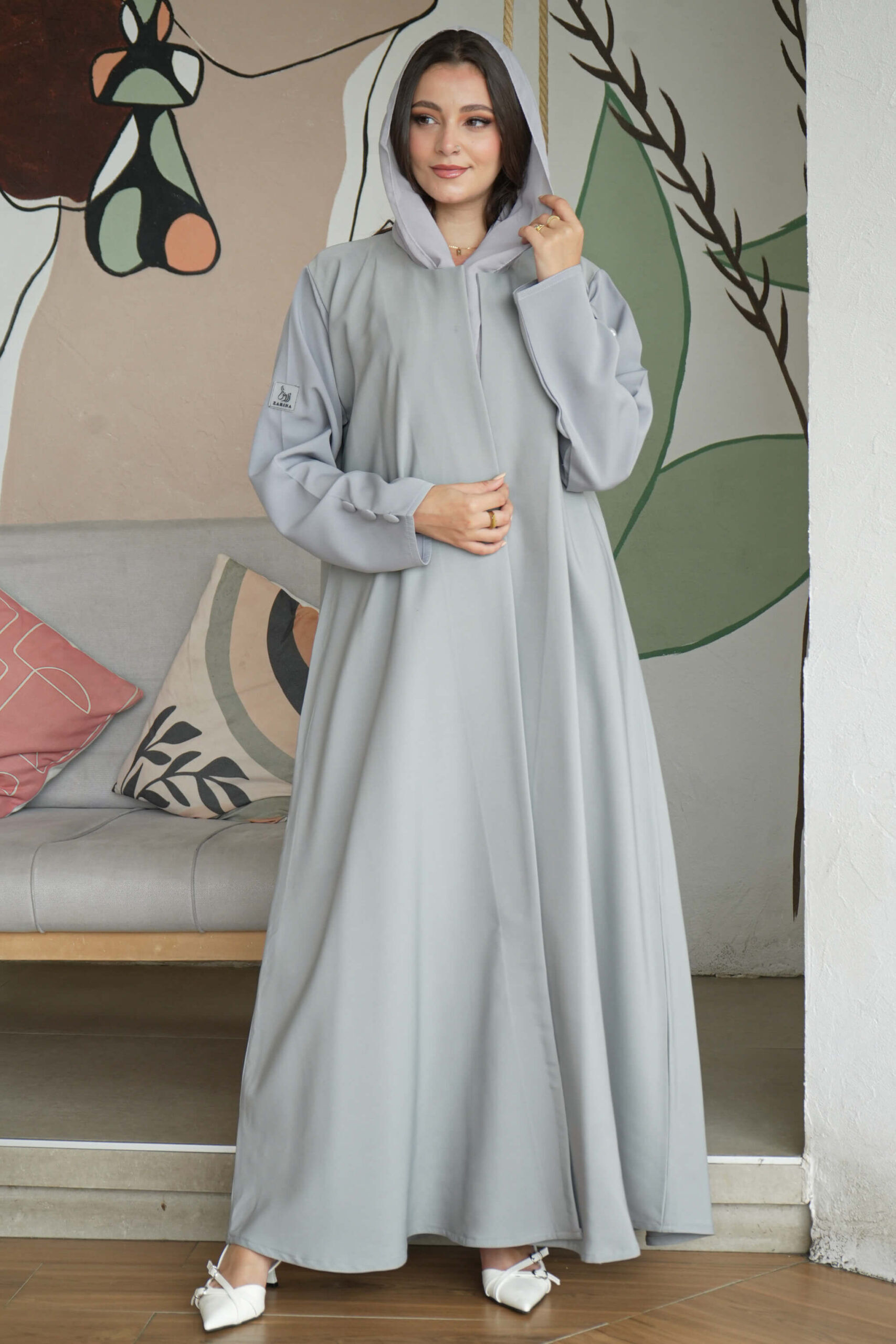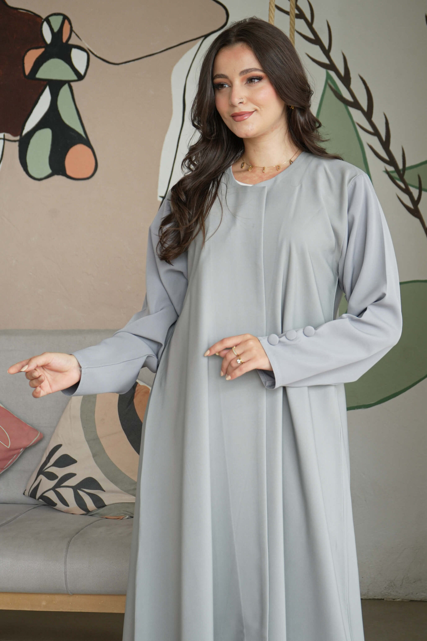 عبايه رصاصي بتصميم كلاسيك