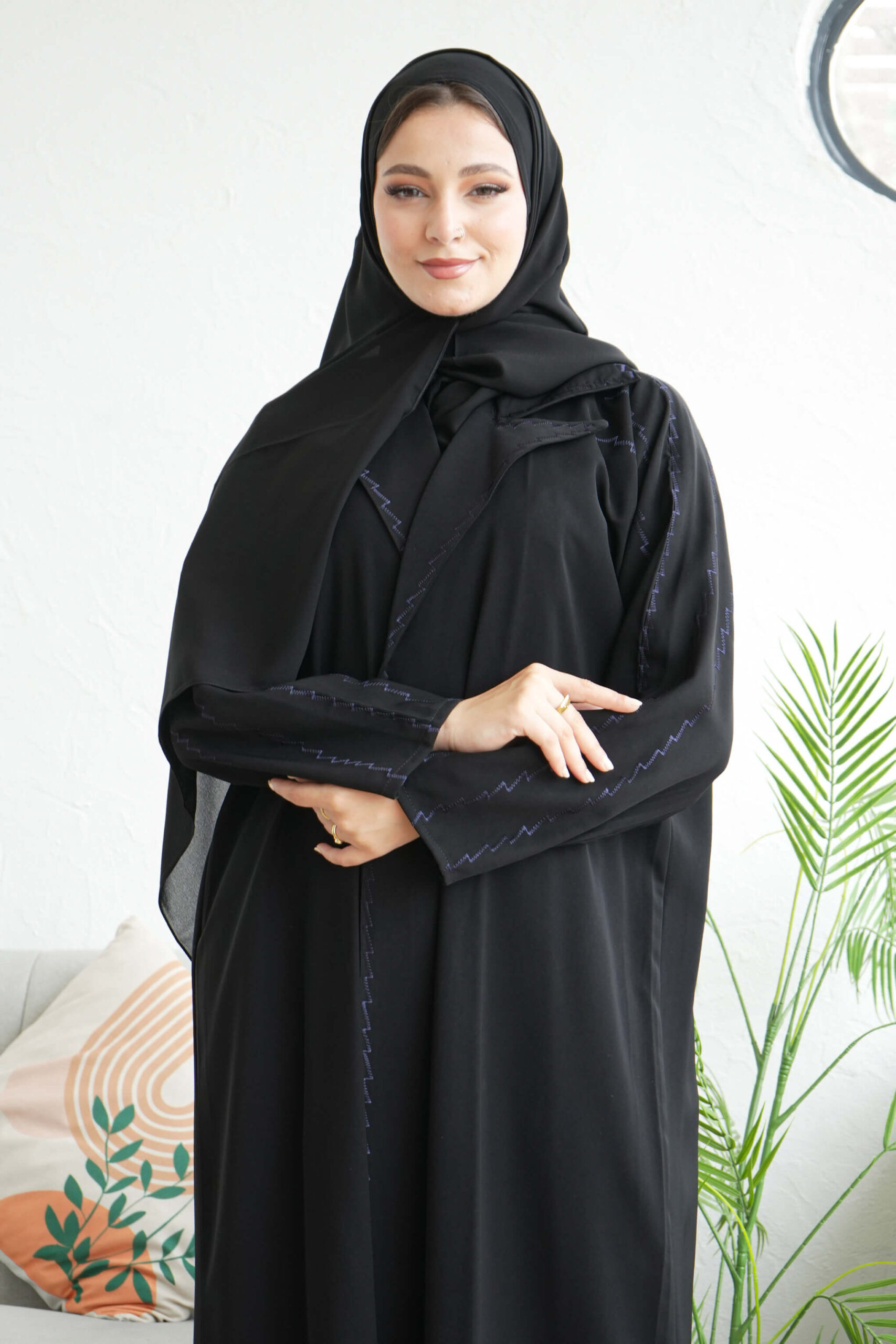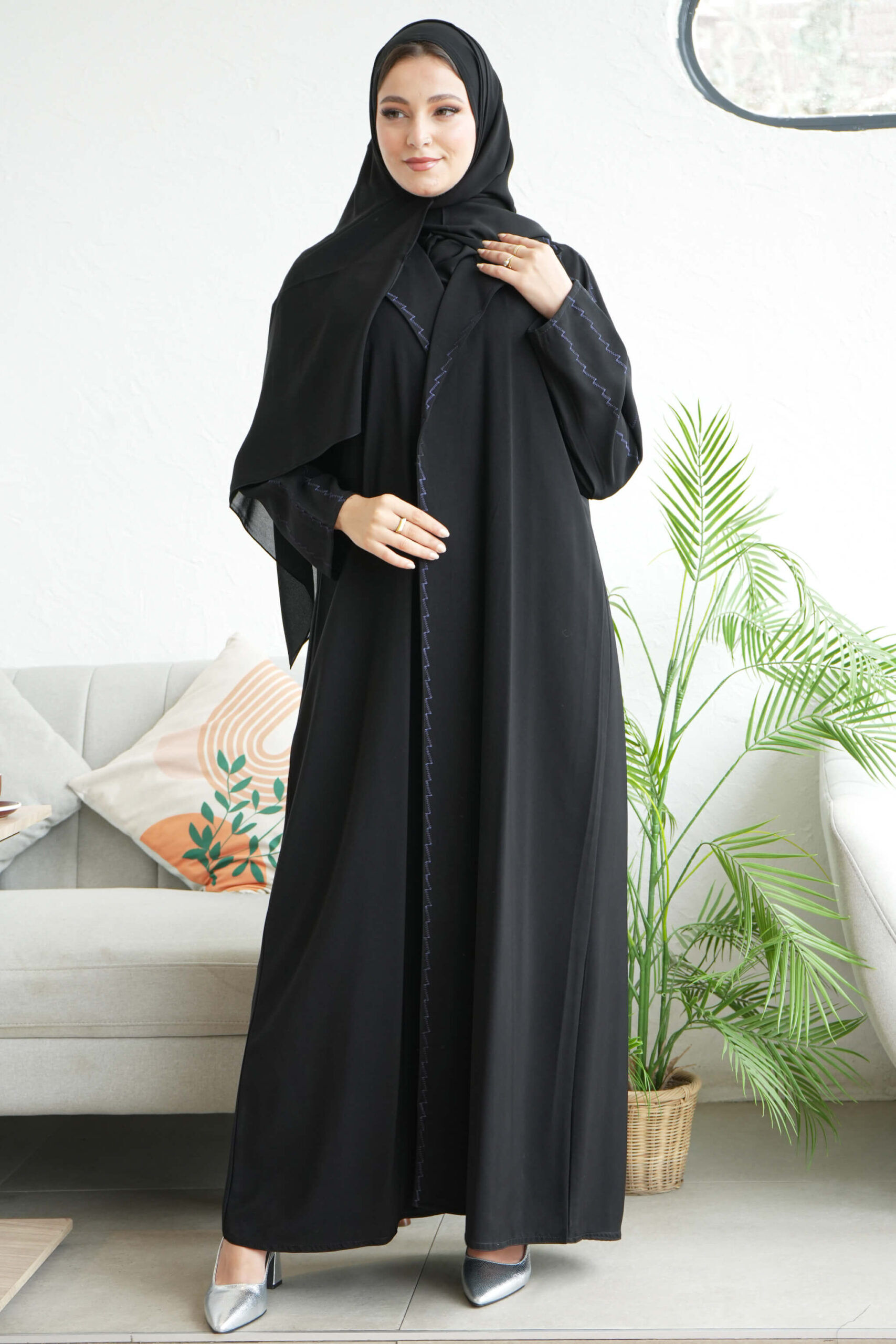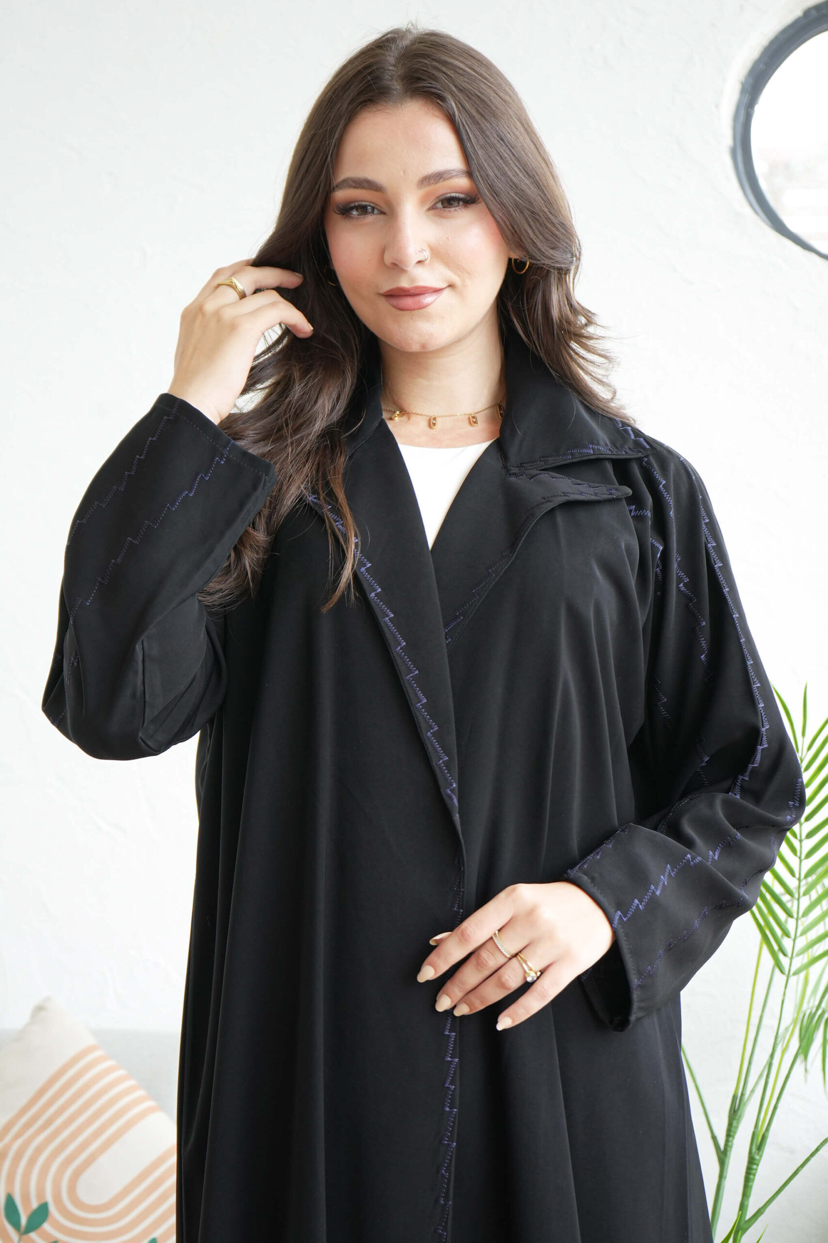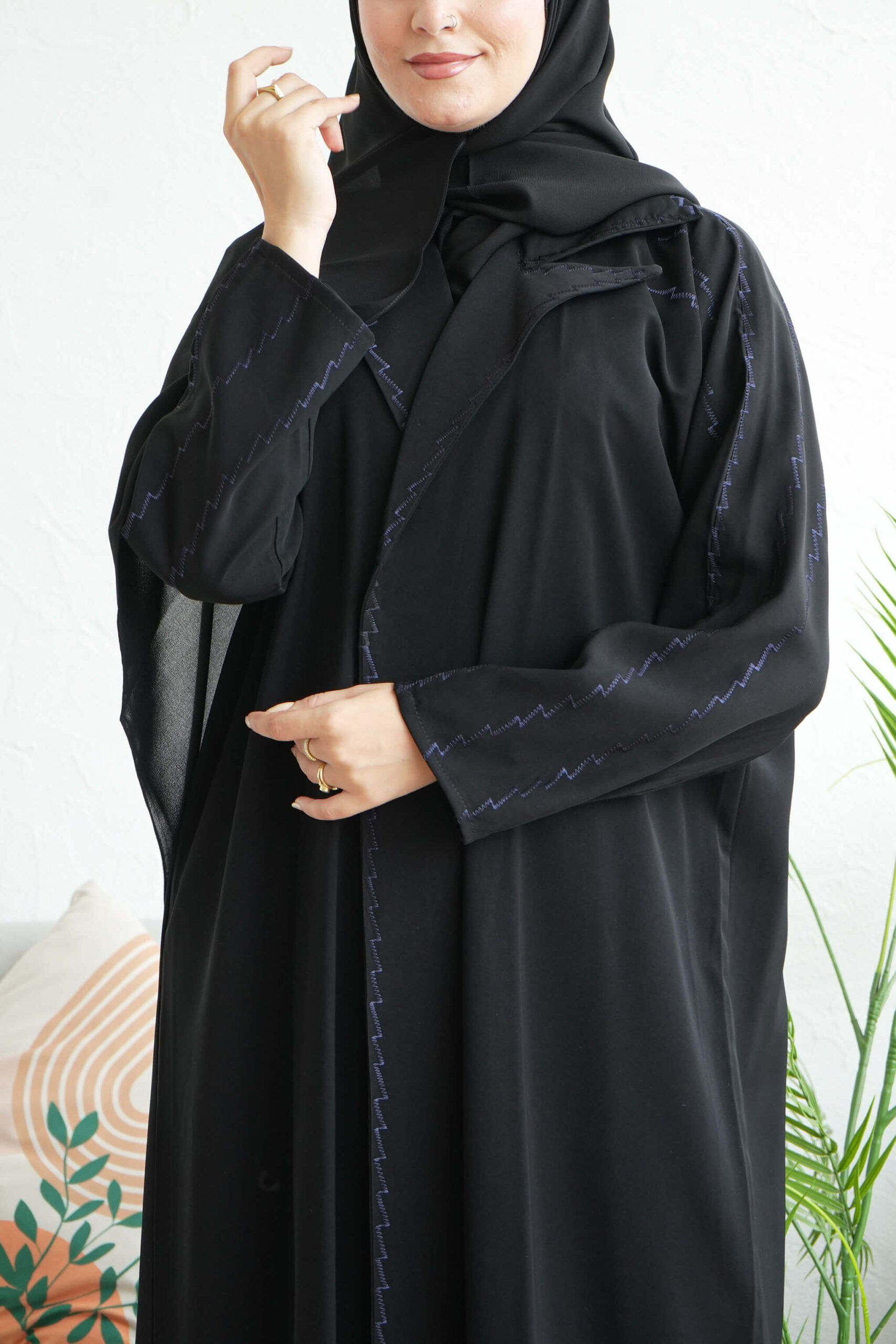 - التطريز الكحلي:يضيف لمسة من الرقي والفخامة، ويكون عادةً في الأطراف أو كعناصر أخرى لتزيين العباية.