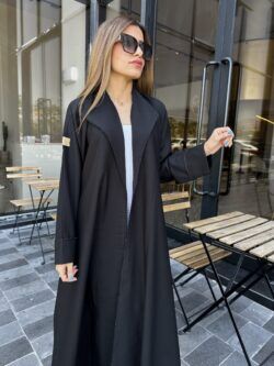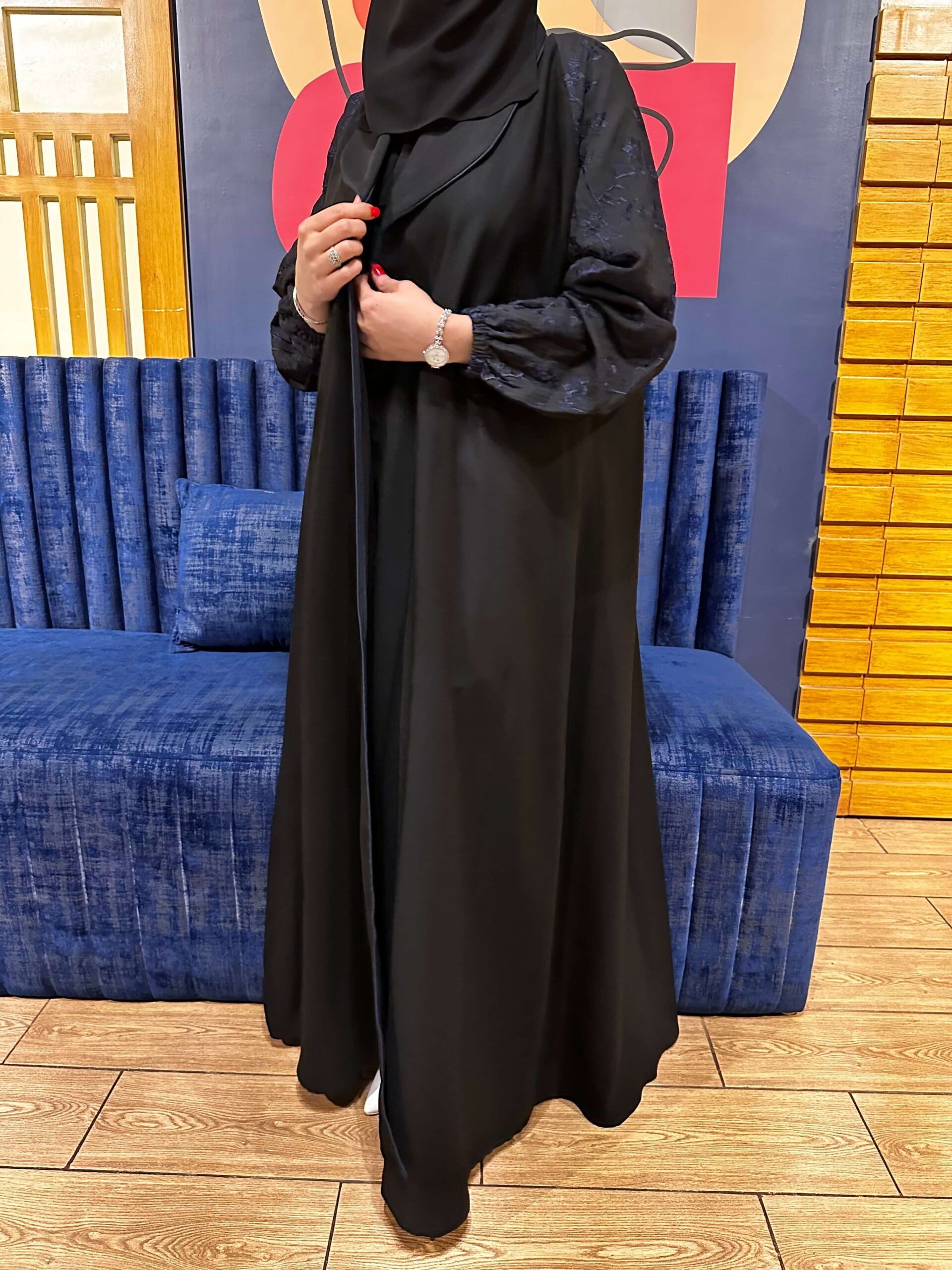 عبايه مريم بليزر مندمجة بقماش كسر من اجناب و تطريز اسود