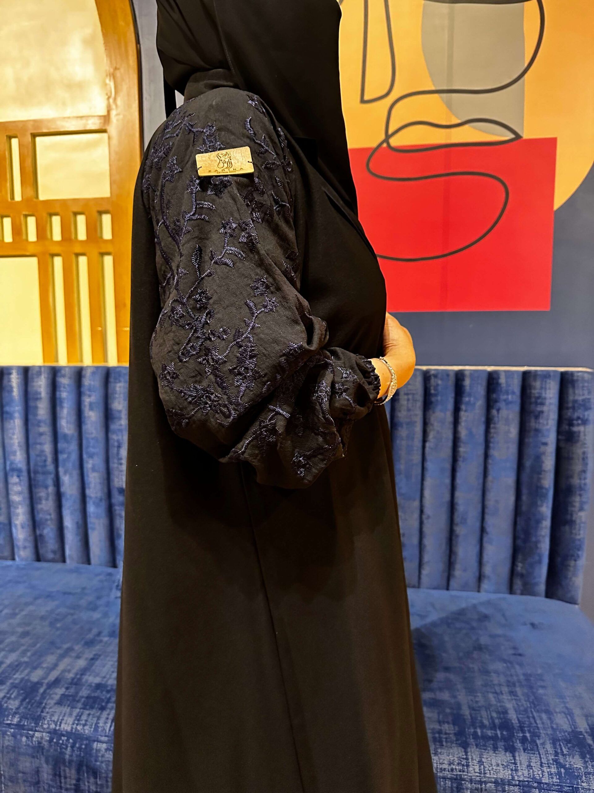 فخامة اللون الأسود لا يضاهيها شيء ، فما بالك بعبايه بتطريز كلاسيك فخمه مطرزة مخفي بلون كحلى ، مصممه بإبداع من قماش.