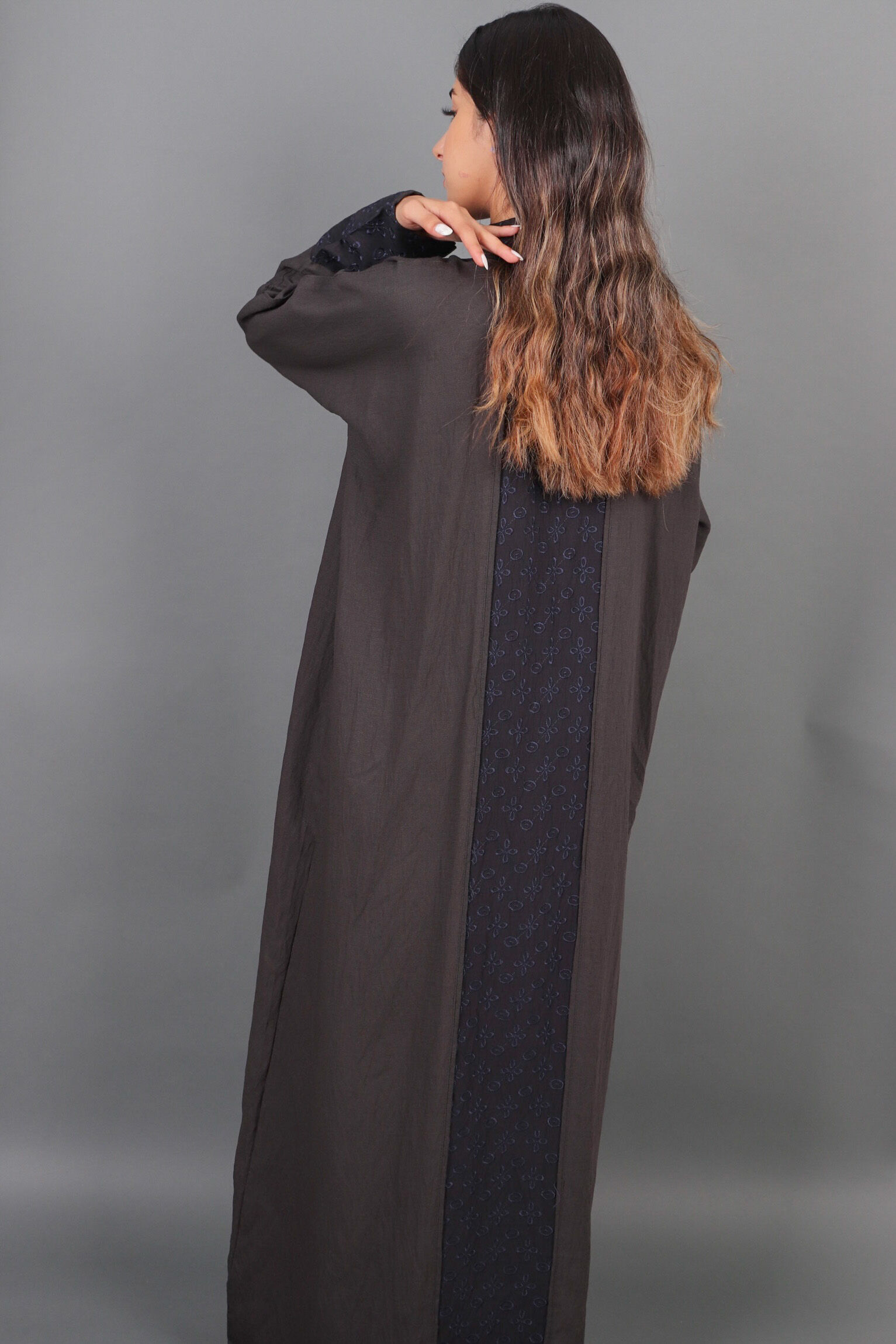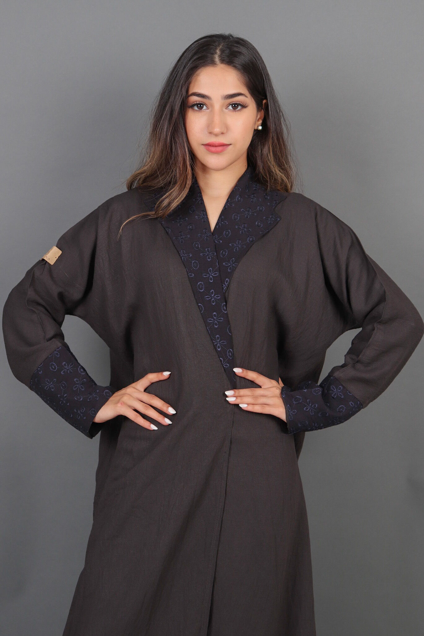 عباية بجيوب جانبية مميزه و أكمام مزينه بفايفين