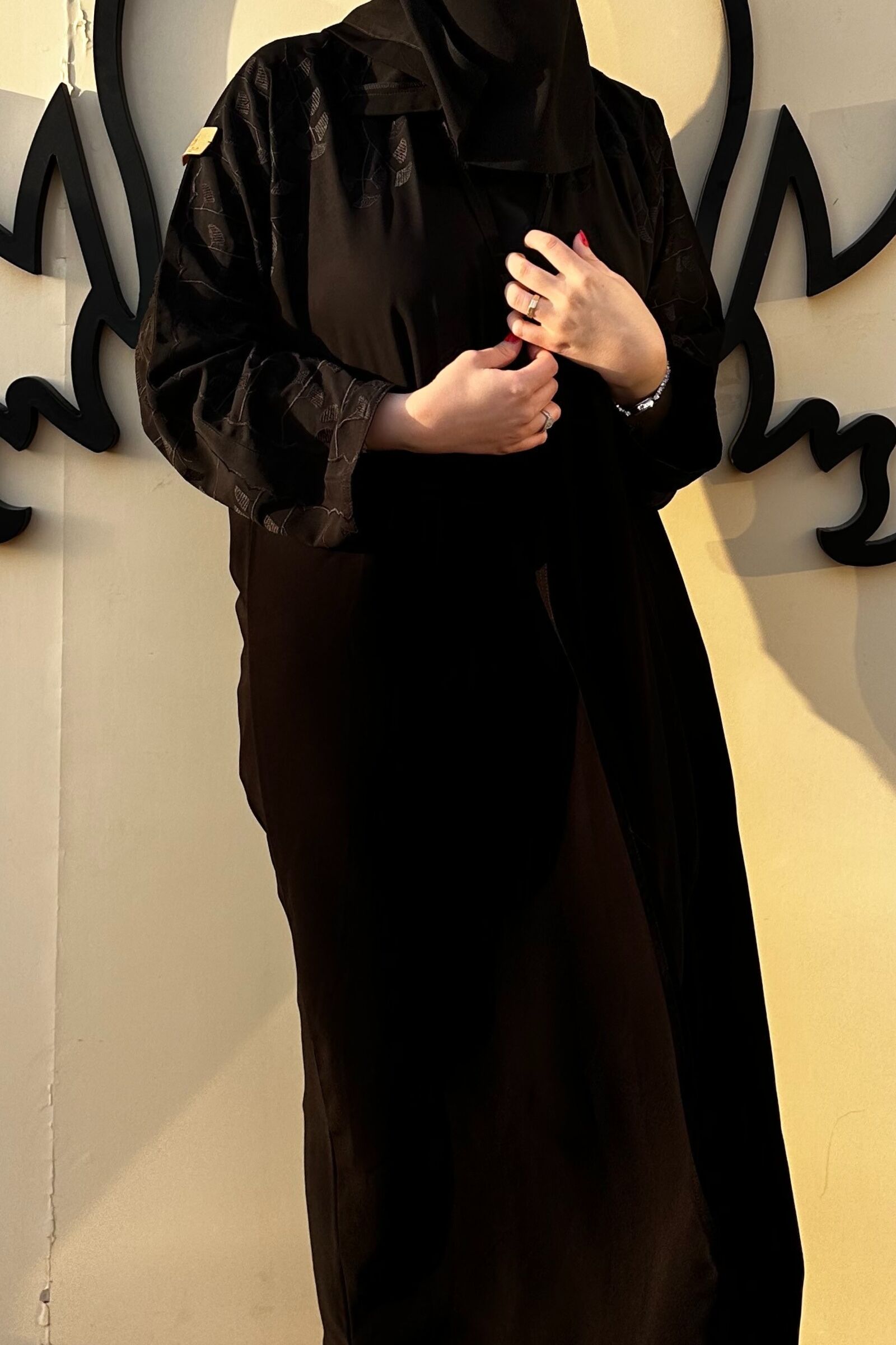 عباية راس مشلح مغلق باكمام تطريز مخفى