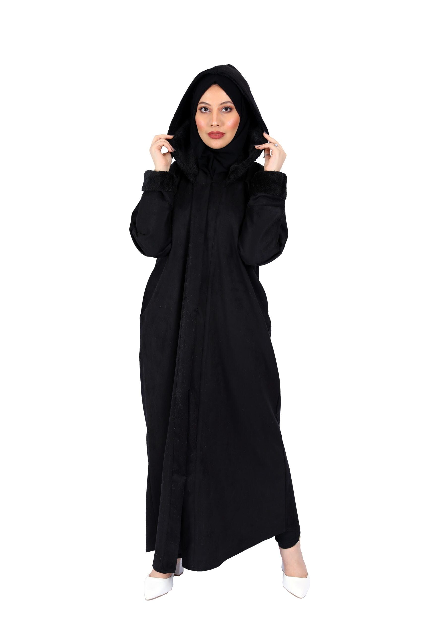 عباية بقصه A شتوية شامواه مع تداخل المخمل ربع كلوش