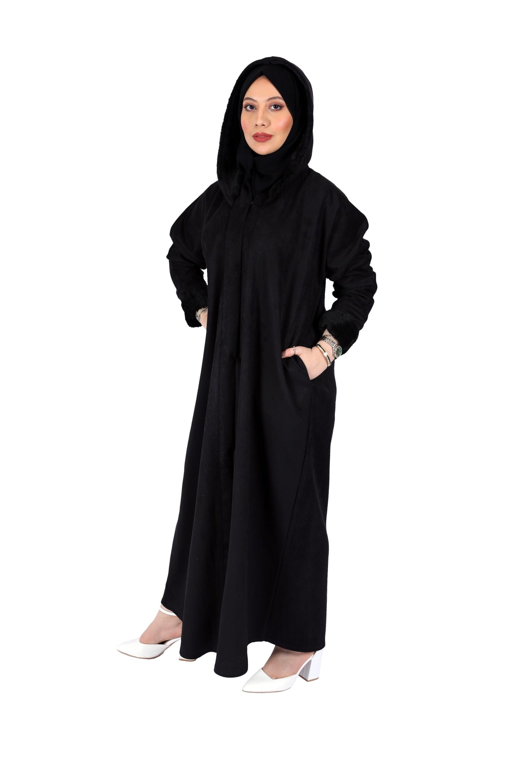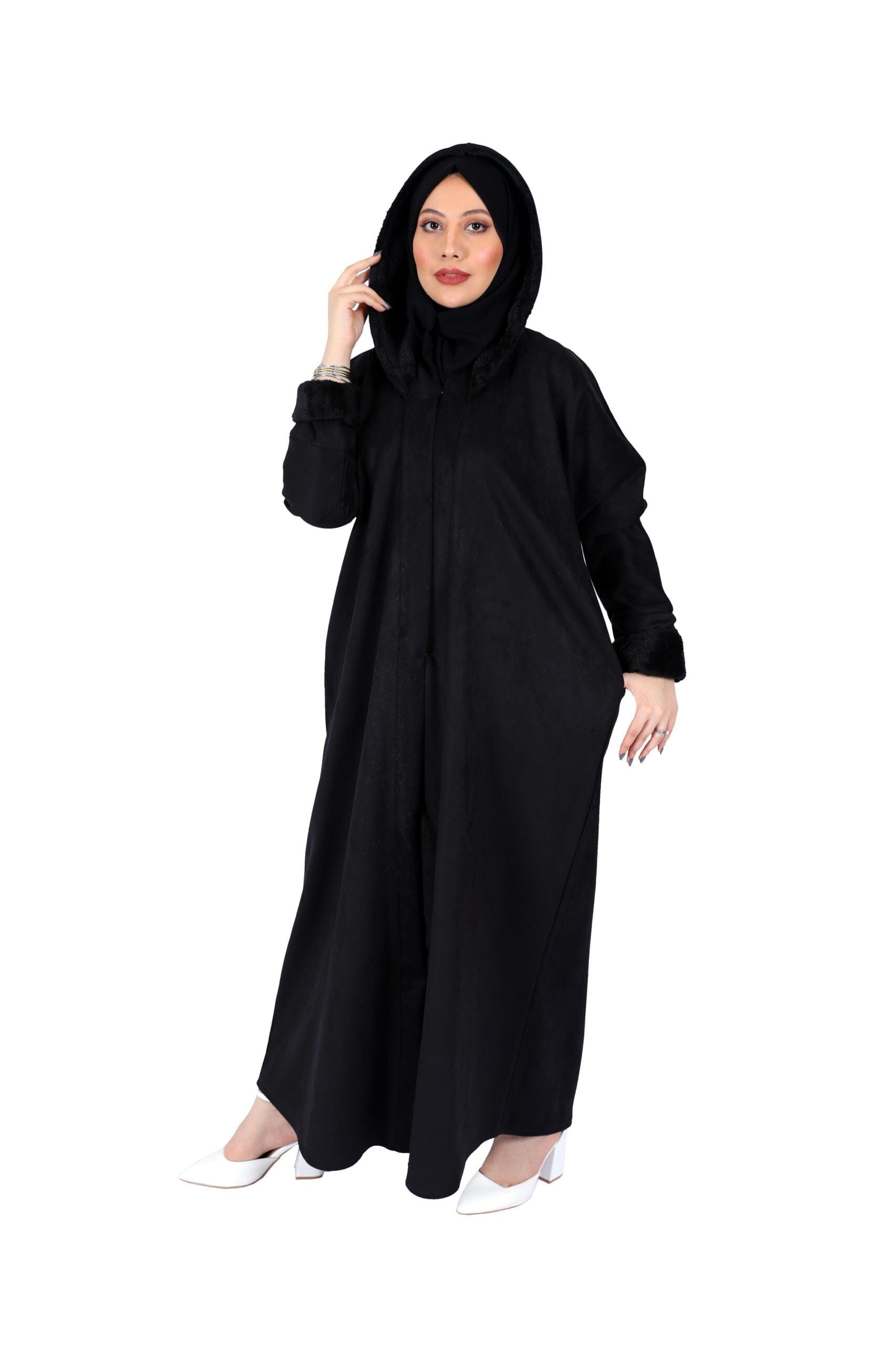 مواصفات عبايه فروة اسود شامواه شتوية :