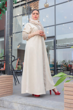 عباية بطبقة داخلية مع ربطة جانبية بكم جلد مفتوحة