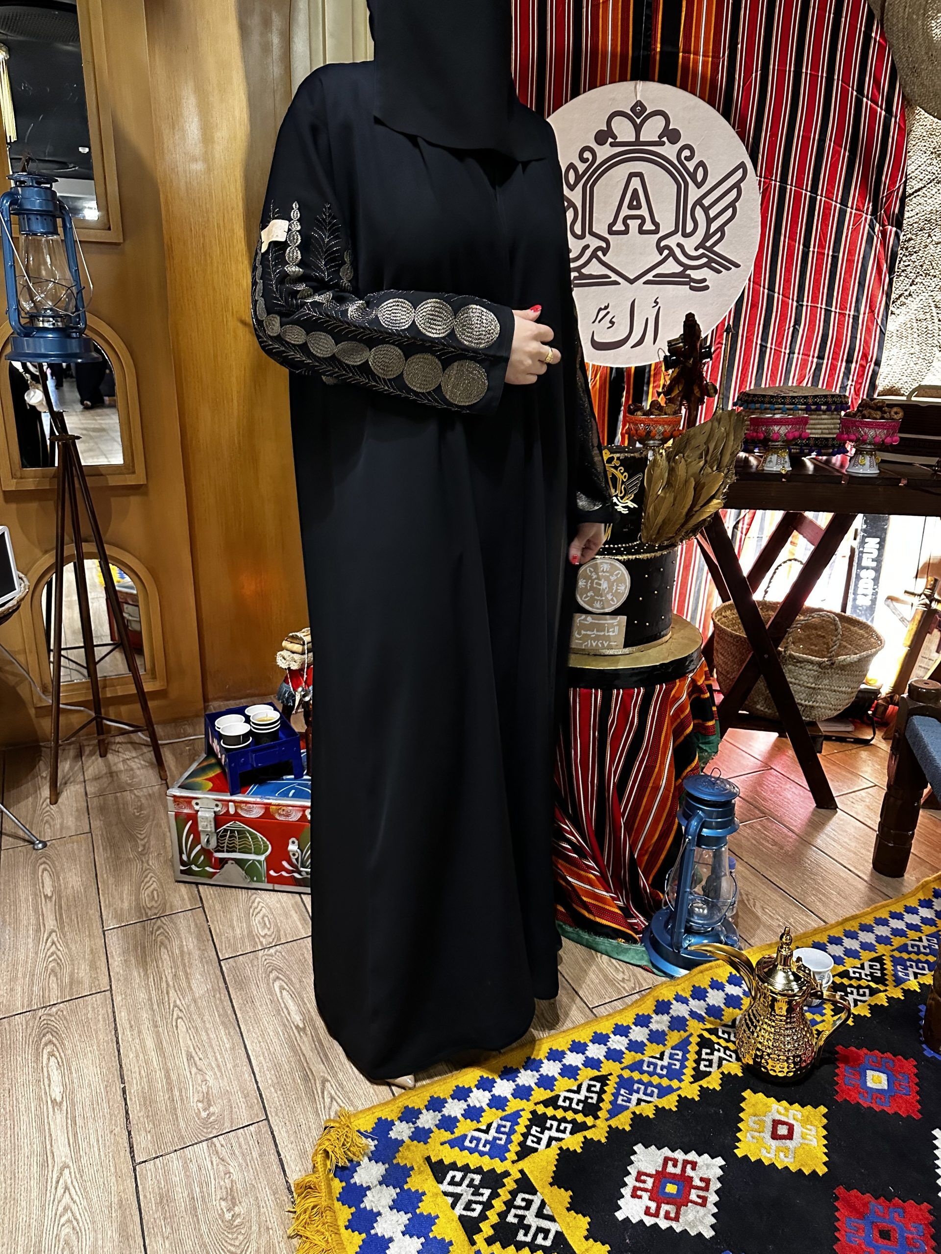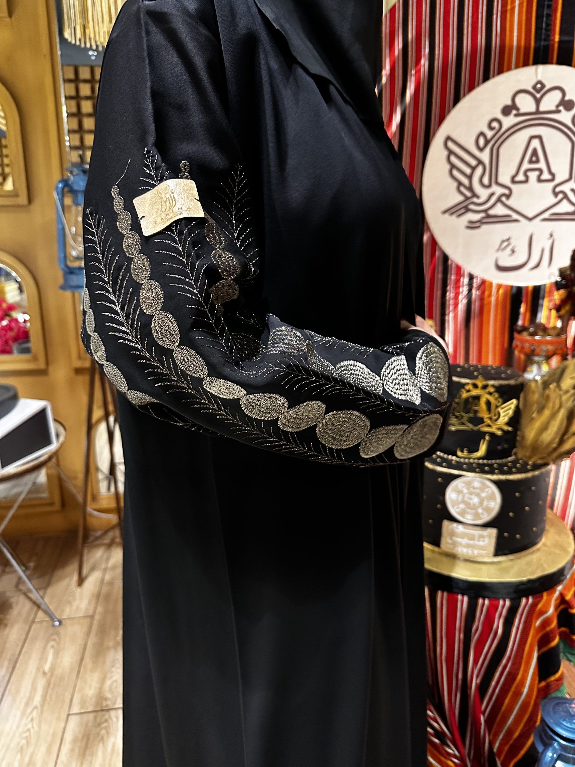 فخامة اللون الأسود لا يضاهيها شيء ، فما بالك بعبايه مطريزه من اكمام كلاسيك فخمه و مطرزة ، مصممه بإبداع من قماشكى ع ملالي الجودة ، و تطريز مبتكر ذي لمعة مميزة على اكمام رقبه بلون اسود نحاسي، ستكون اكثر عباية سوداء شيك في خزانتك ، تناسب مختلف المناسبات و الأوقات .