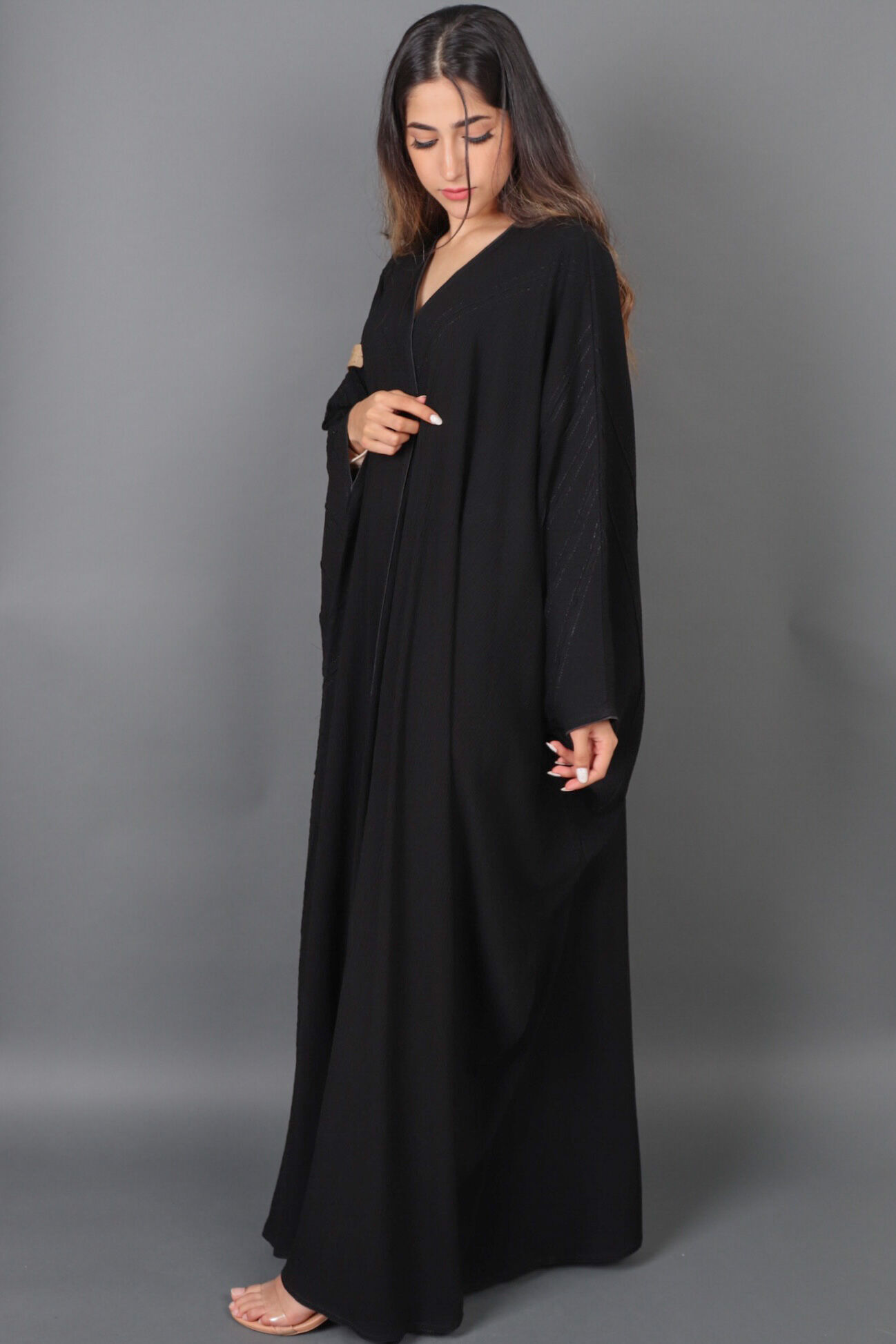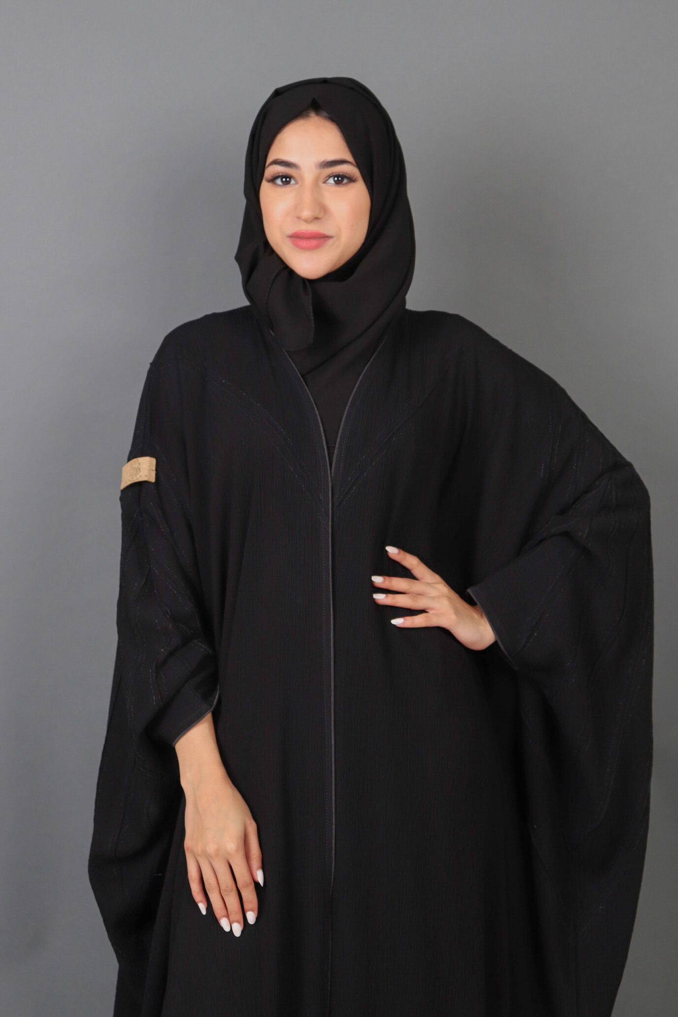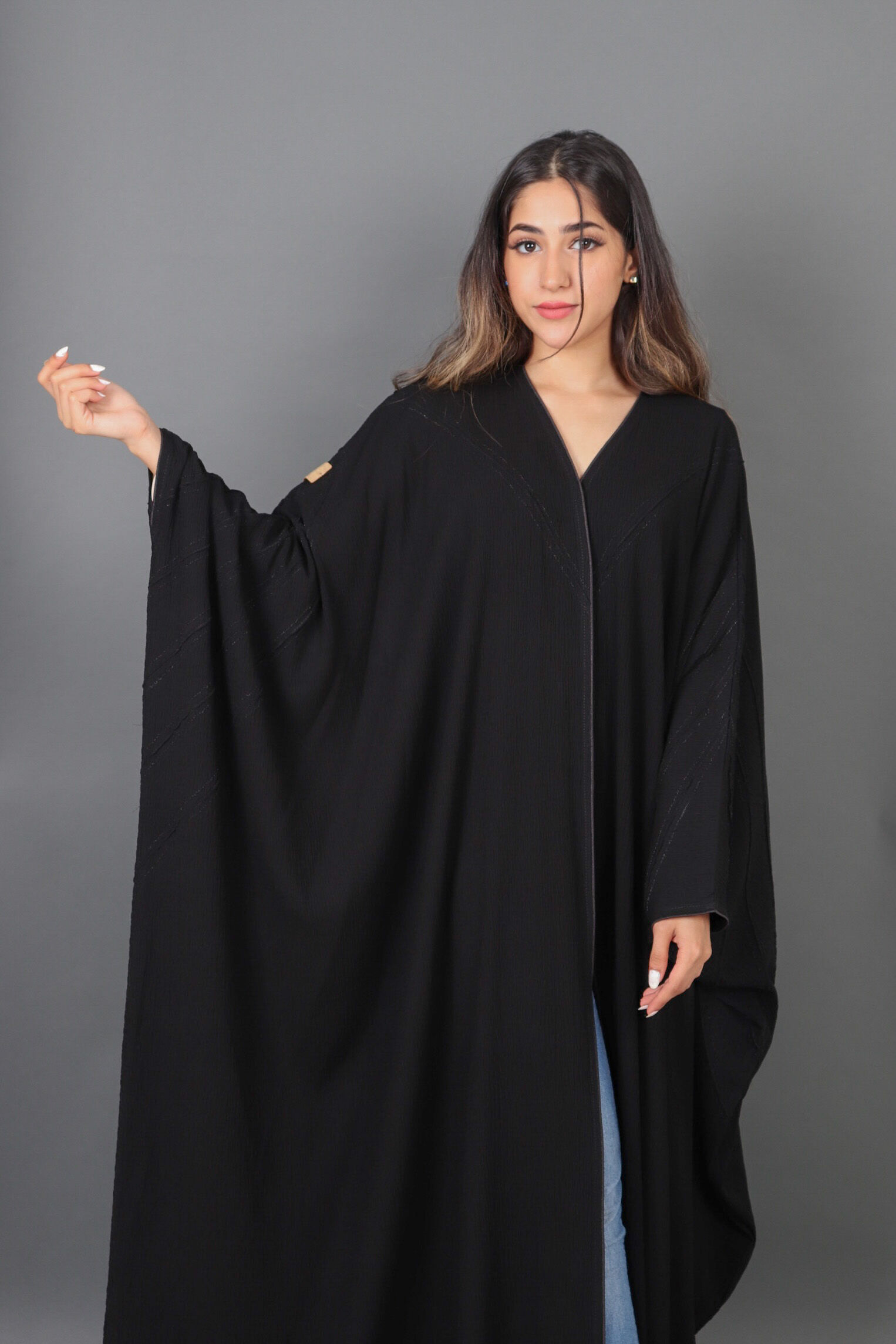 عباية بشت إماراتي لف – أسود فخم بتحديد أنيق