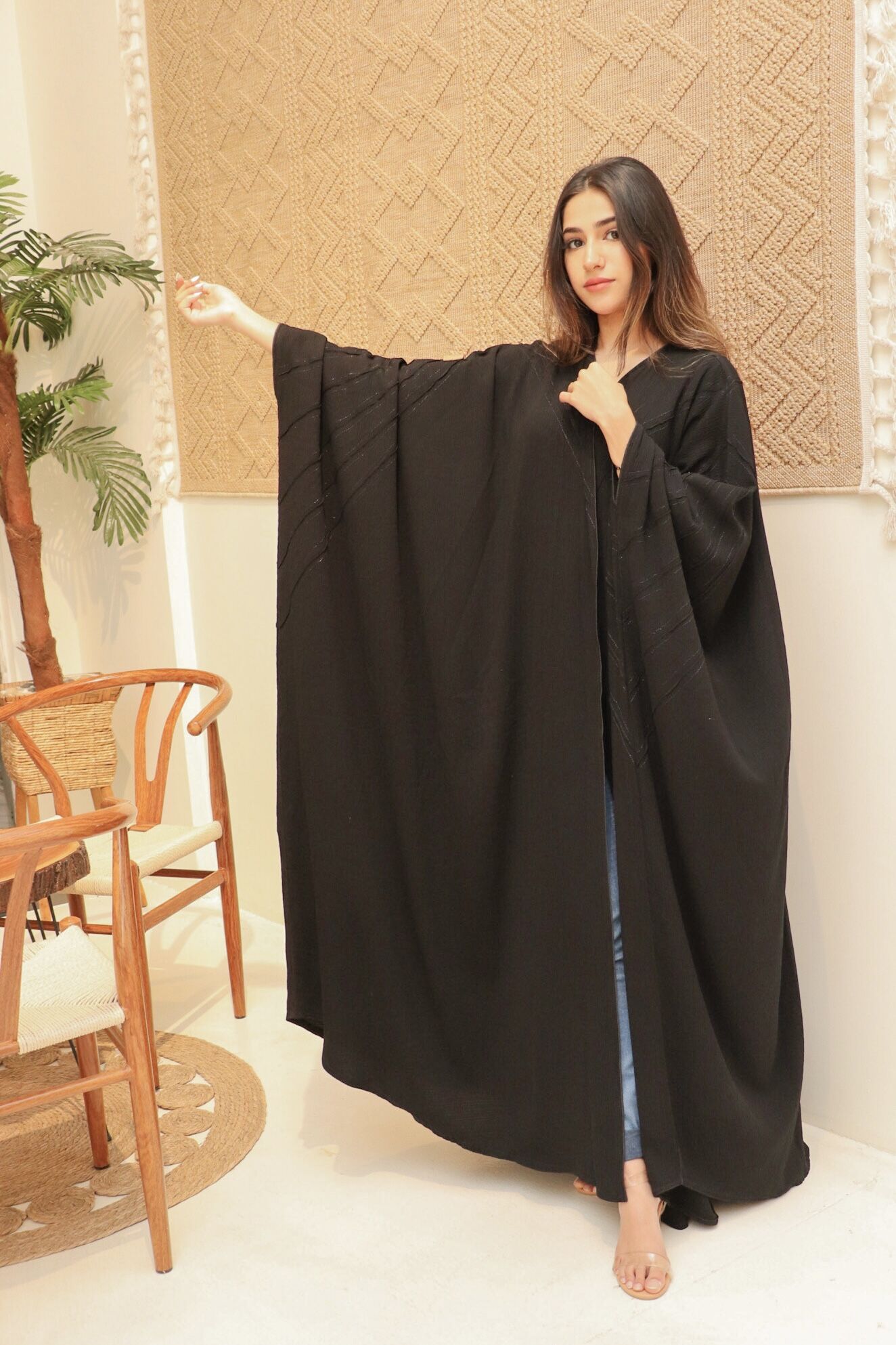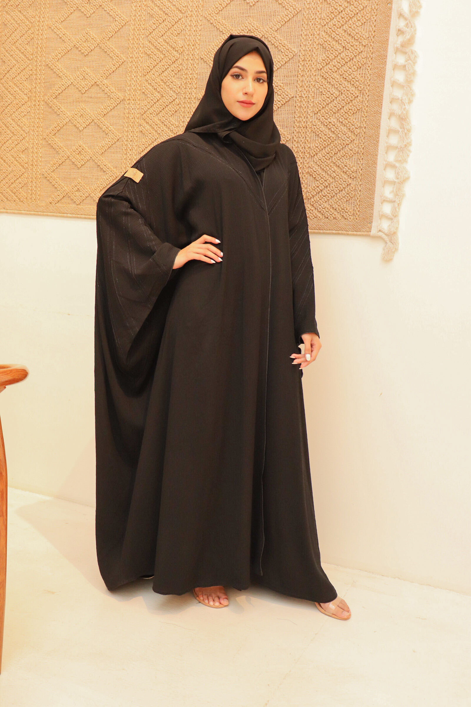 عبايه كتف بكسرات جانبيه اسود بشكل مميز
