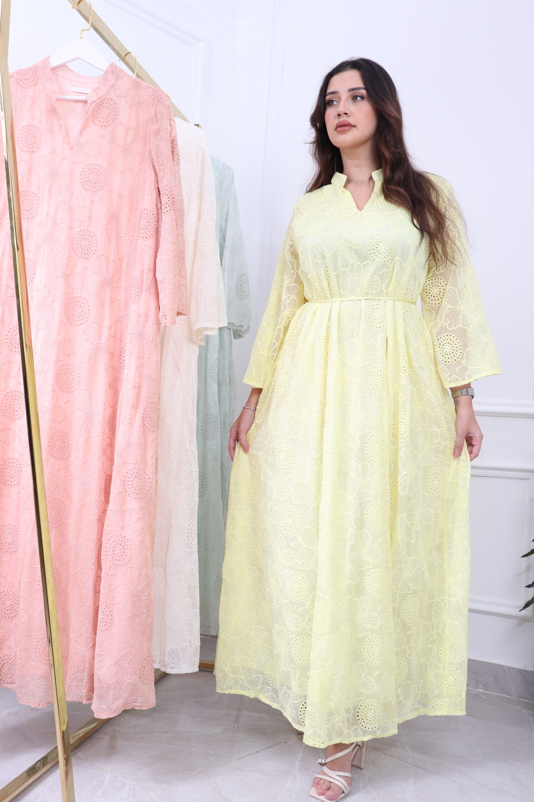 جلابية بياقة تيفاني بترتر وتطريز كامل بورود