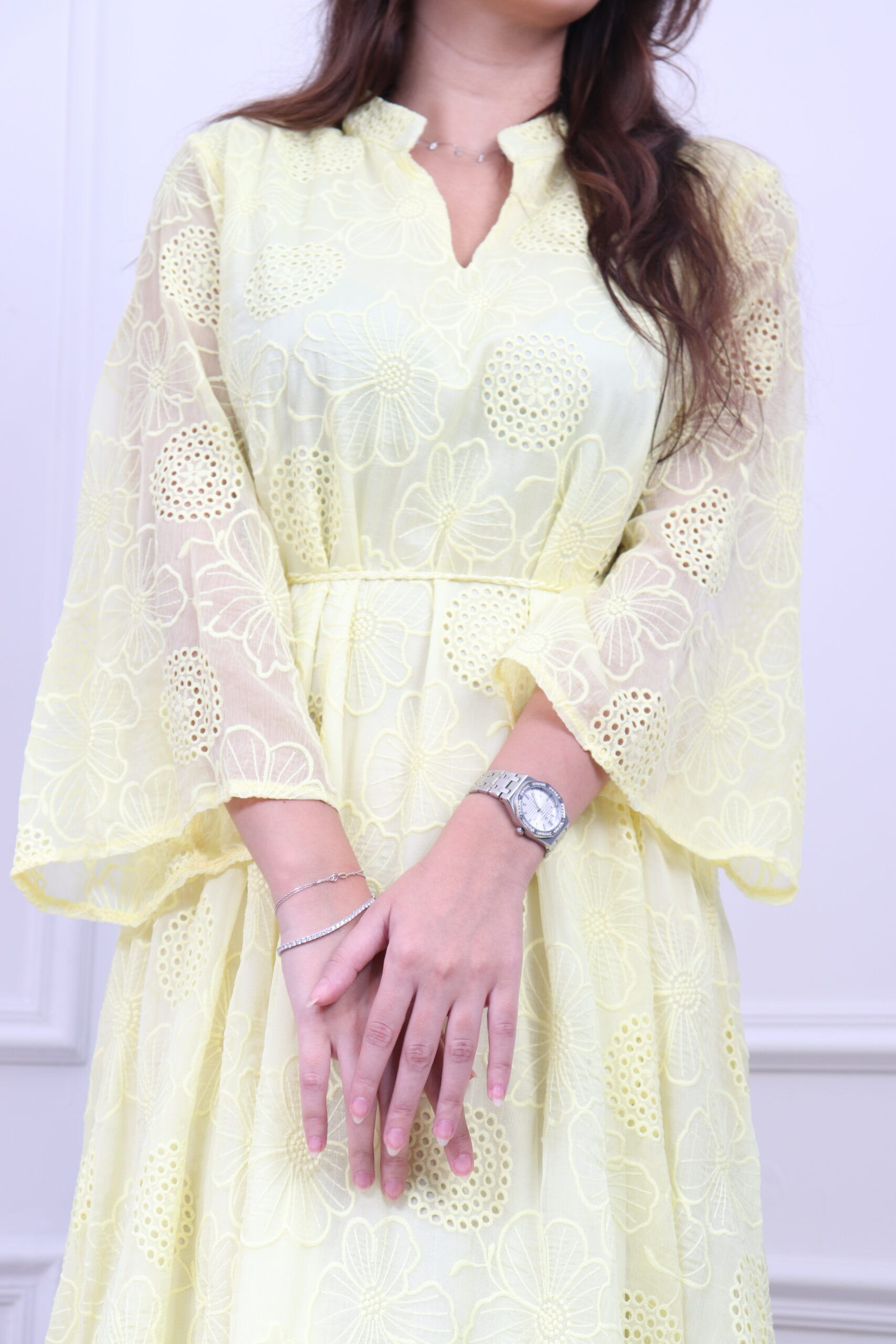 - الموديل: جلابية اصفر فخمة بتصميم مميز وغير تقليدي